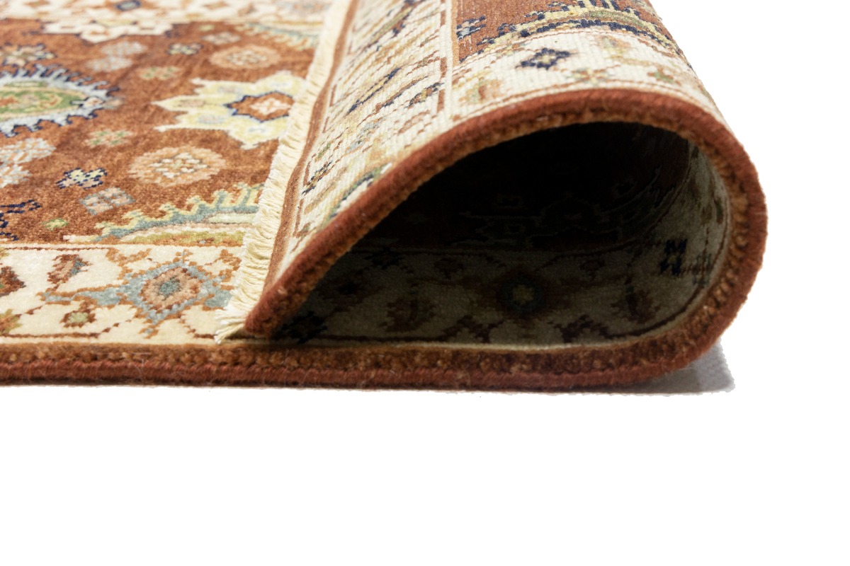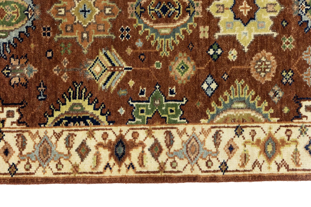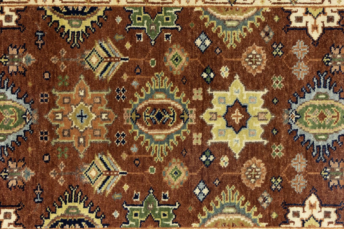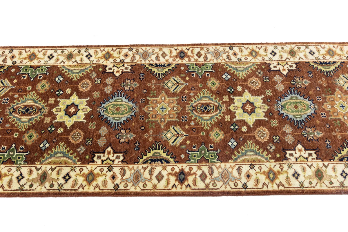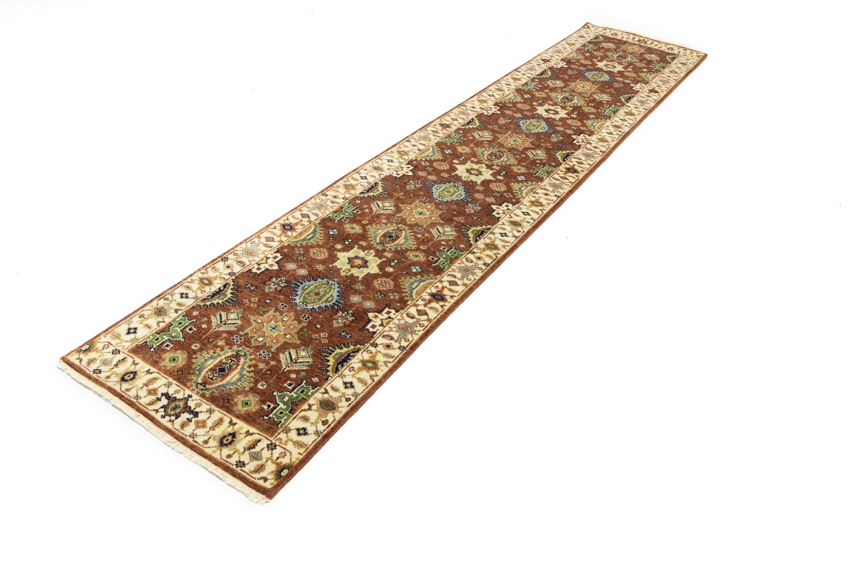 This authentic 3X12 rust new Oriental runner was crafted by the hands of skilled weavers enthused by a variety of lovely artistic designs, to recreate the aged look of the unique piece with a richness of color and beautifully elaborated background field. What set this vintage style Oriental area runner from the others are the material and dye used (wool pile and cotton foundation), knot count, ancient designs, fantastic grades, and its regional historical connection: it has deep roots, from the story of the people who produced it to the meaning of the symbols and colors displayed across its canvas that have been praised for centuries. This Indian home décor carpet will be completely cozy and inviting that never will go out of style! Also, this Oriental rug would be among your most valuable treasures, it is a great investment that increase in value over time, and it will last for generations because was woven with high-quality, all-natural wool. Environmentally friendly, opulent yet affordable; this runner will give you a thorough amount of character to help define your living space with sophistication and warmth that will capture the eyes and attention of your audience (homeowners, designers, decorators, family and friends). OT-8278