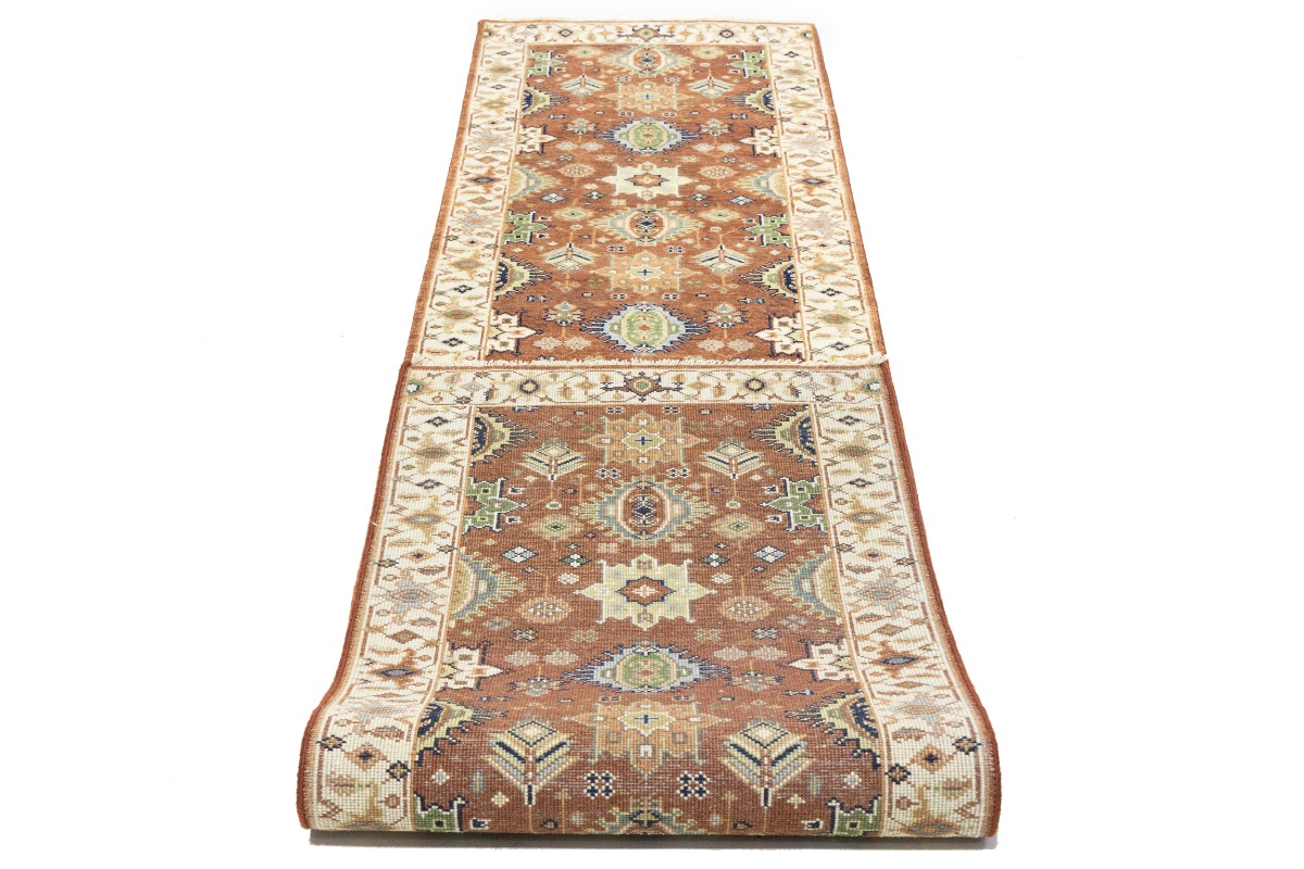 Rust & Cream Tribal Geometric 3X12 Indo-Karajeh Oriental Runner Rug