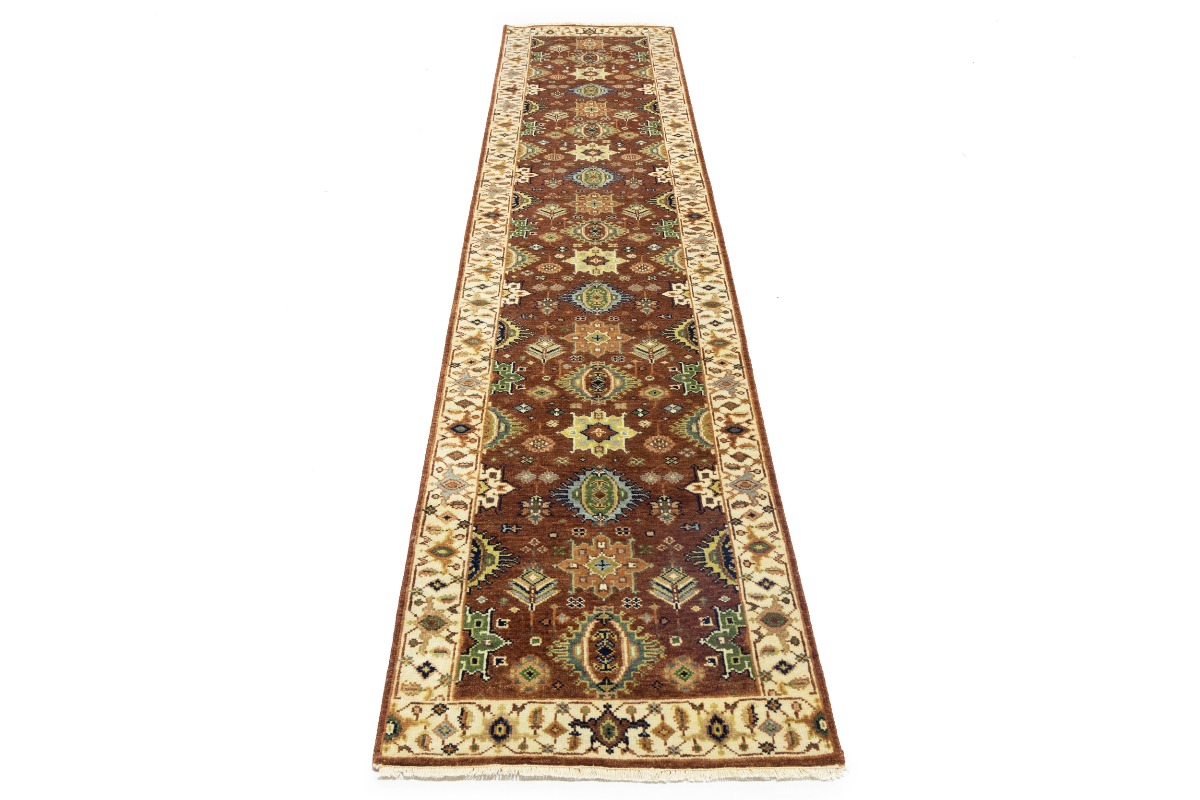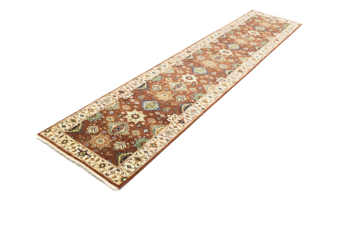 Hand Knotted 3X12 rust oriental runner made with vegetable dyes (fine wool pile and cotton foundation), superior knot count, and alluring ancient designs. This Oriental runner never will go out of style and would be among your most valuable treasures.