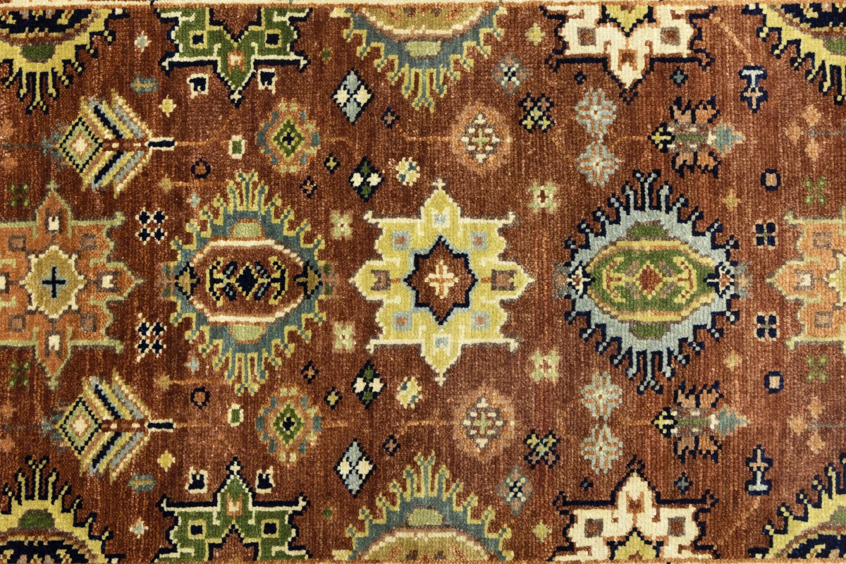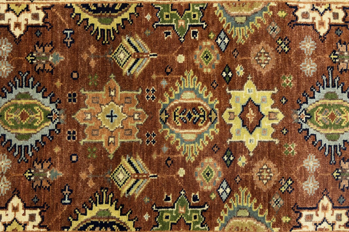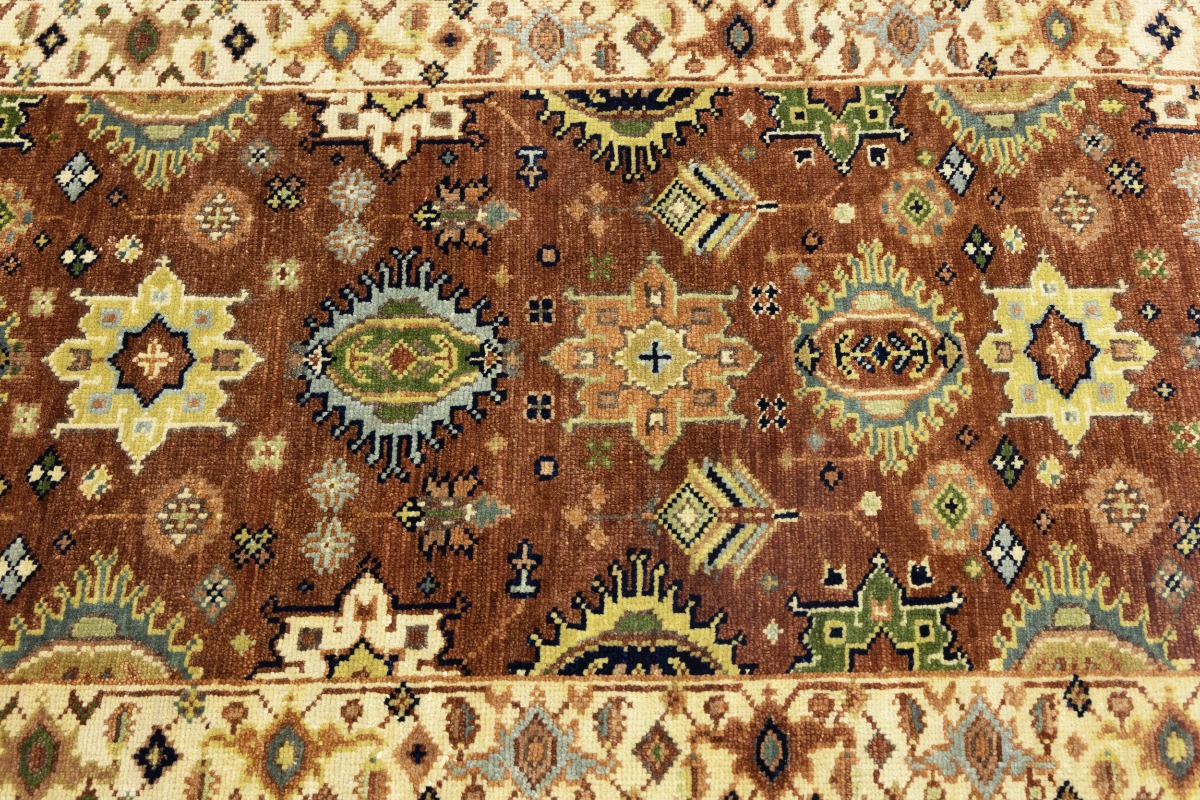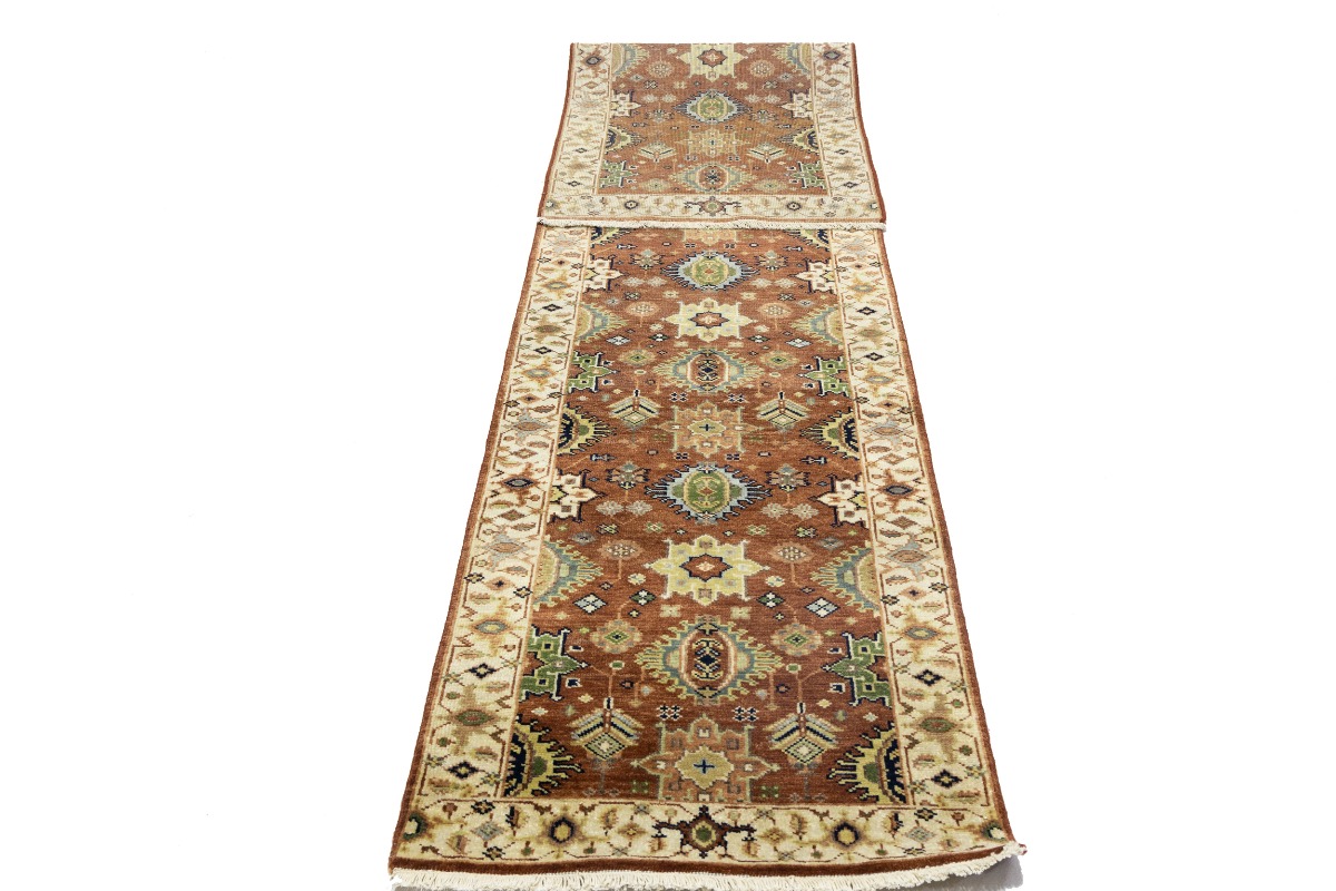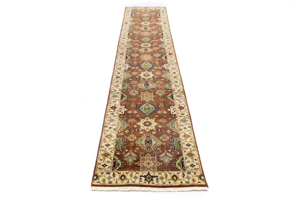 Rust & Cream Tribal Geometric 3X12 Indo-Karajeh Oriental Runner Rug