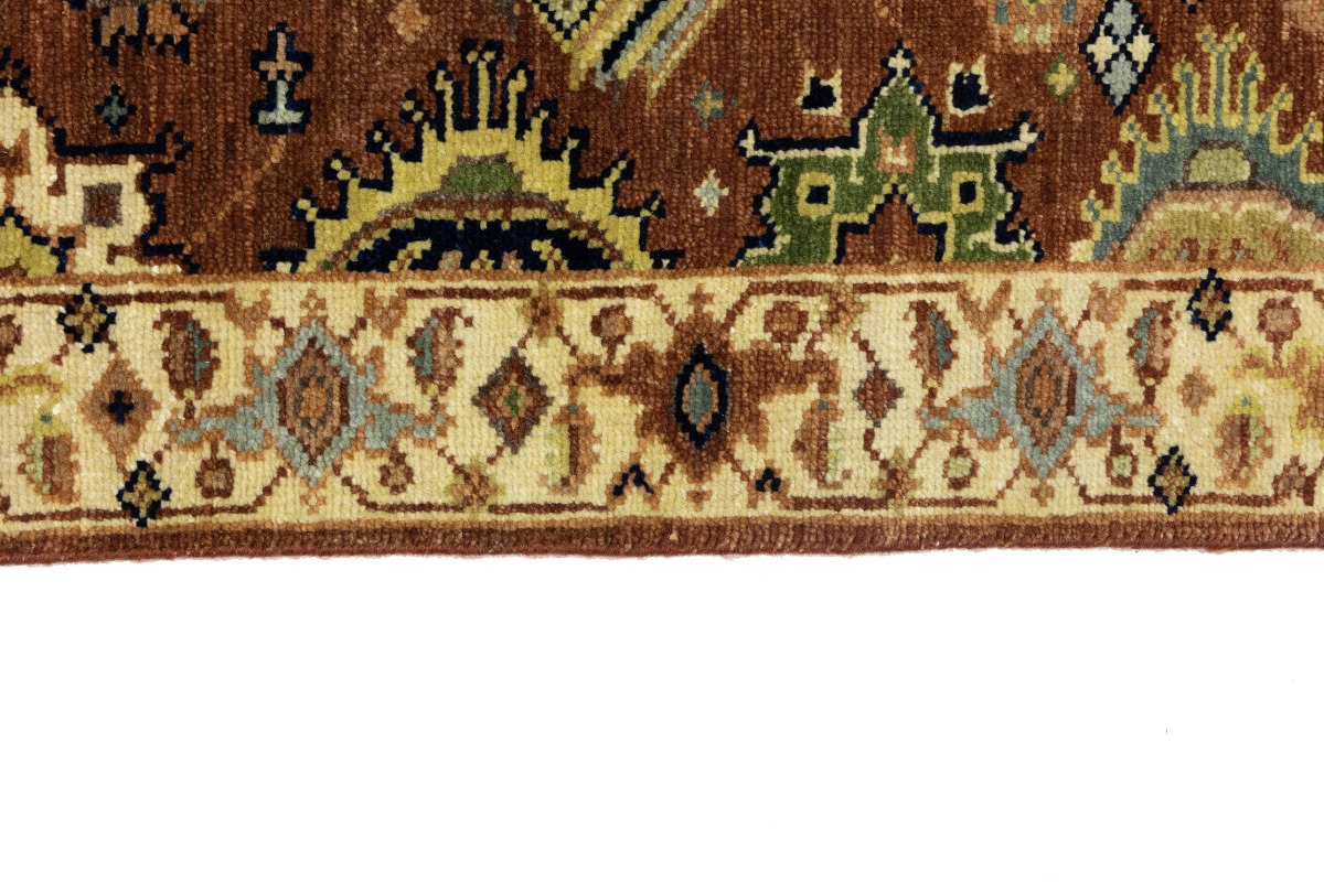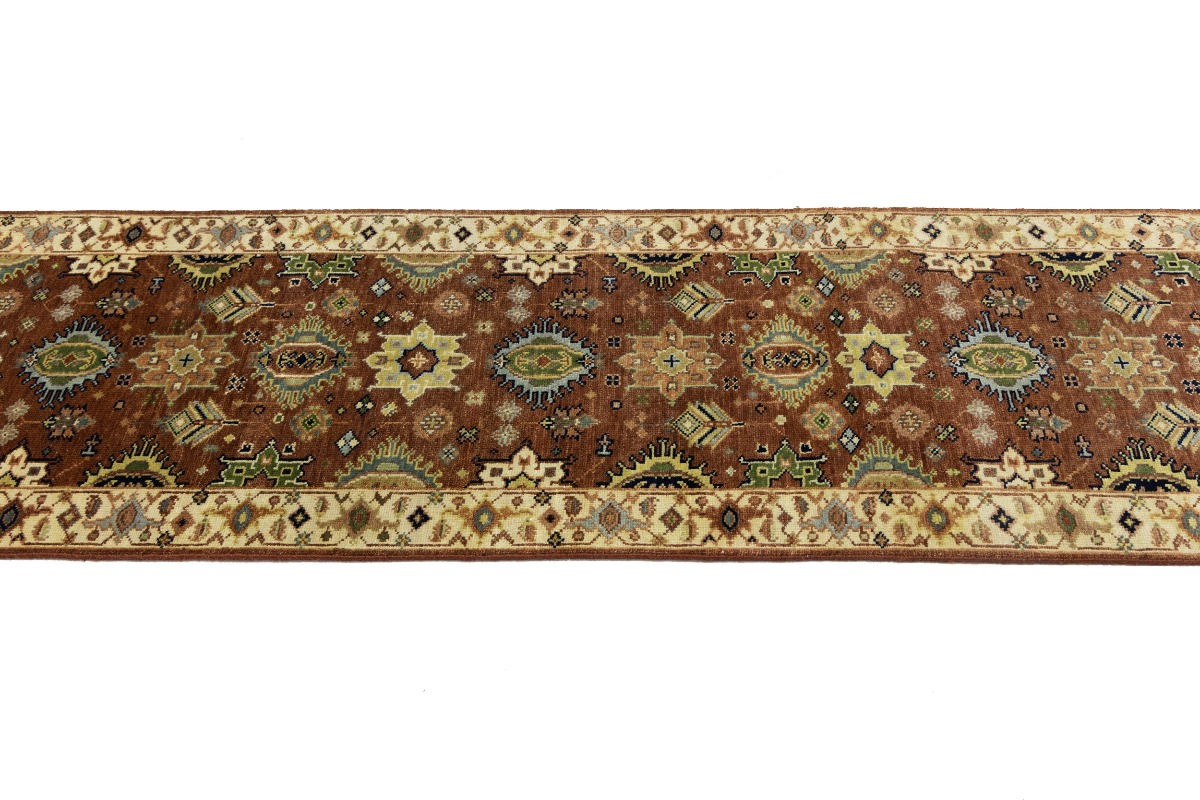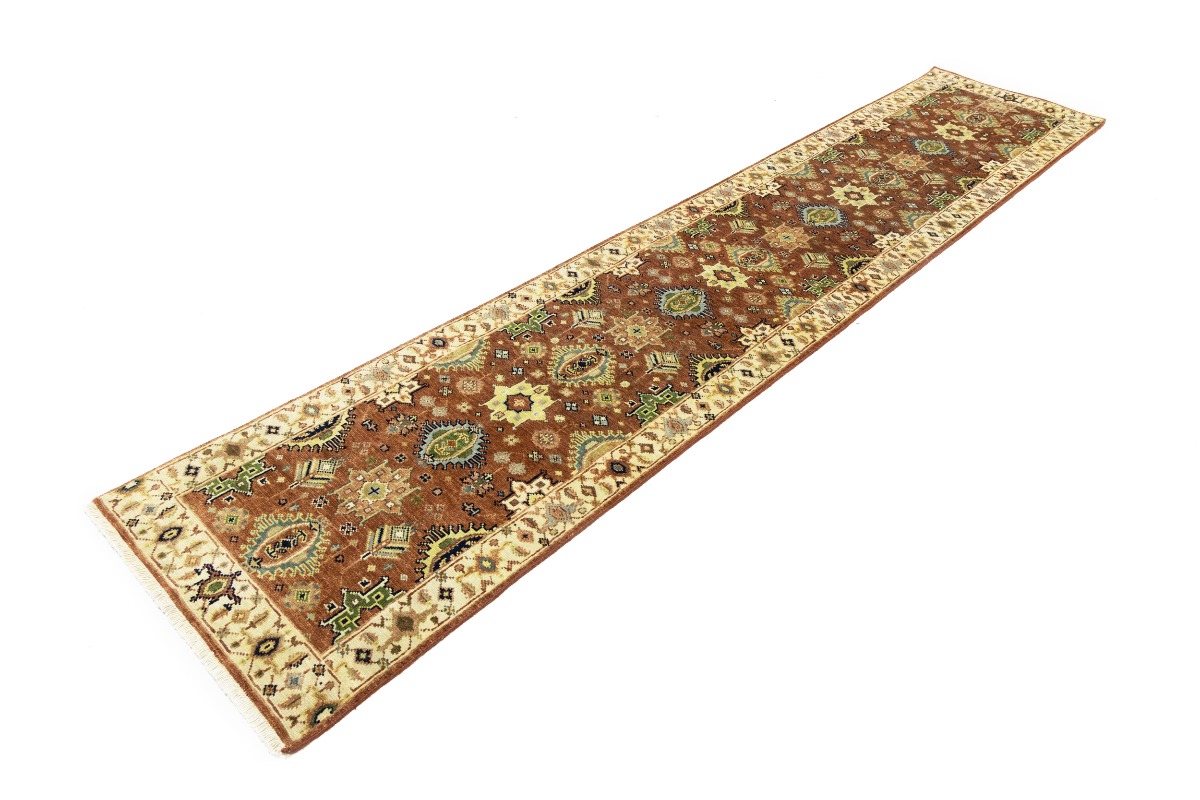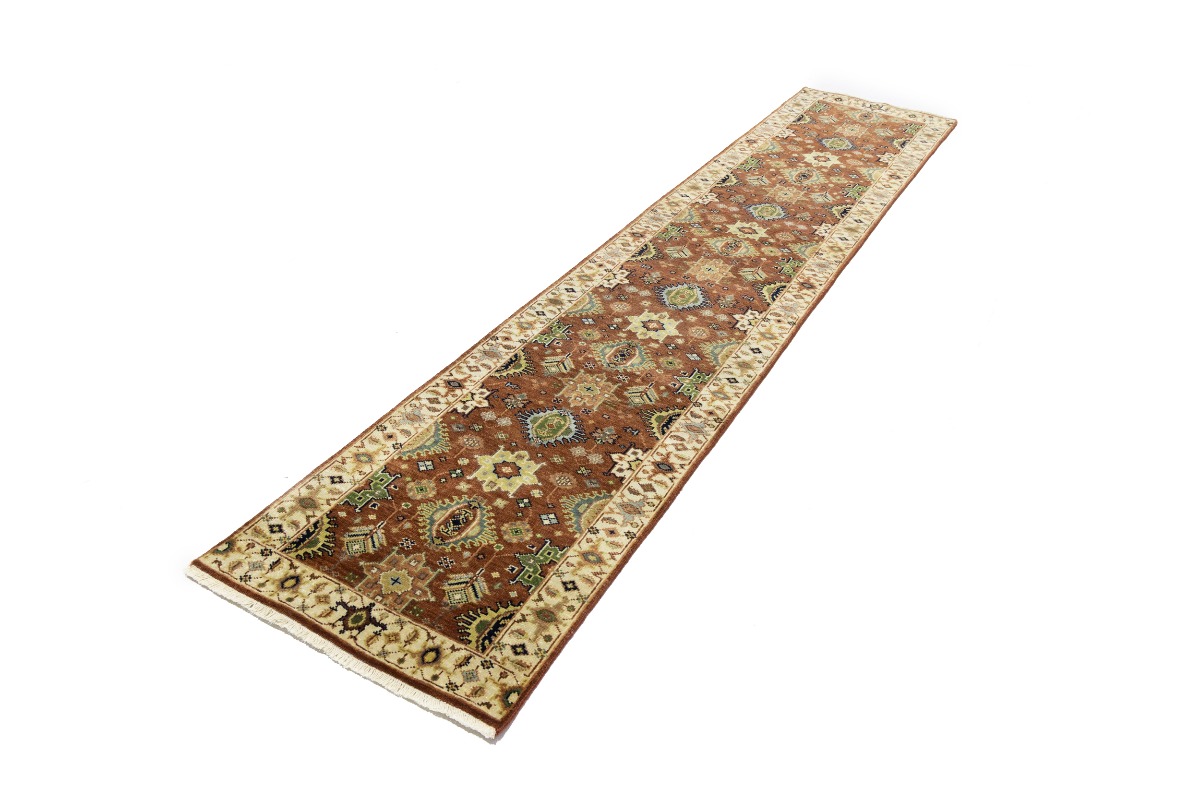This genuine 3X12 orange new Oriental runner was made by the hands of gifted weavers inspired by a variety of spectacular artistic designs, to recreate the aged look of the original piece with a richness of color and ornately patterned background field. What set this vintage style Oriental area runner from the others are the material and dye used (wool pile and cotton foundation), knot count, ancient designs, fantastic grades, and its regional historical connection: it has deep roots, from the story of the people who produced it to the meaning of the symbols and colors displayed across its canvas that have been praised for centuries. This Indian home décor carpet will be completely cozy and inviting that never will go out of style! Also, this Oriental rug would be among your most valuable treasures, it is a great investment that accrues value over time, and it will last for generations because was woven with high-quality, all-natural wool. Environmentally friendly, opulent yet affordable; this runner will give you a thorough amount of character to help define your living space with elegance and warmth that will capture the eyes and attention of your audience (homeowners, designers, decorators, family and friends). OT-8279