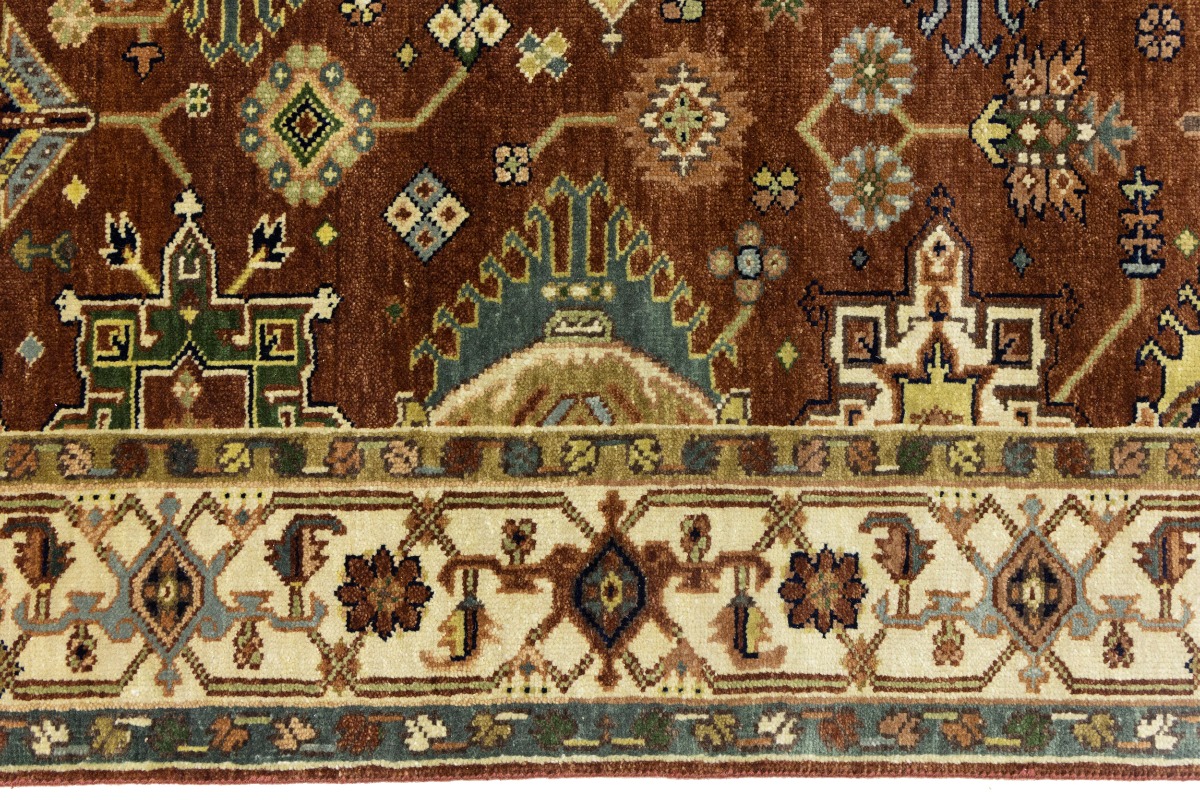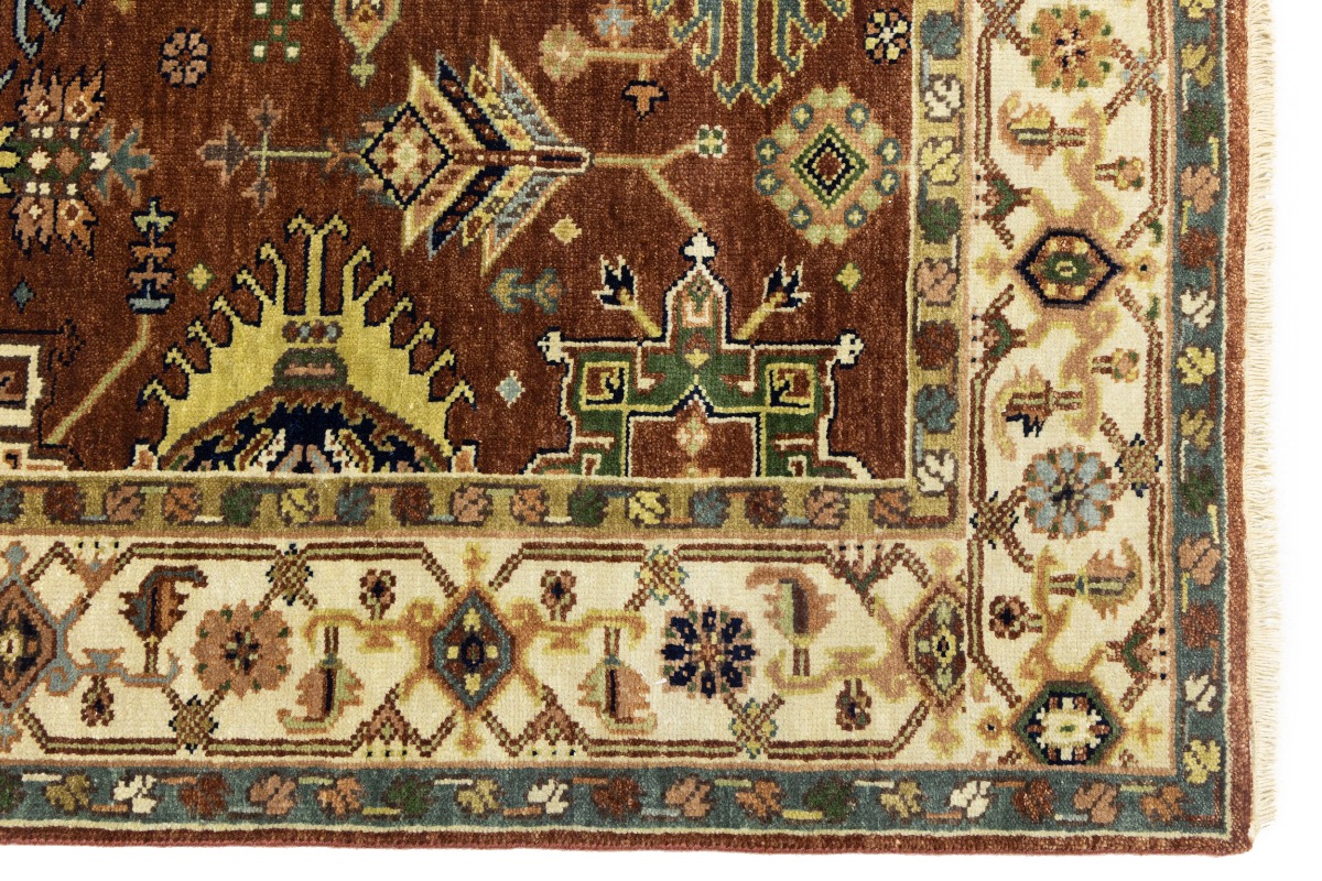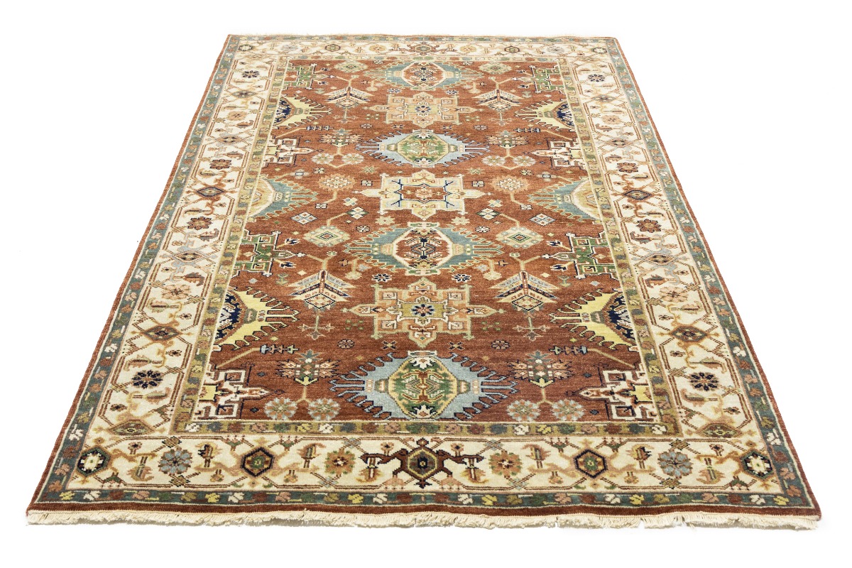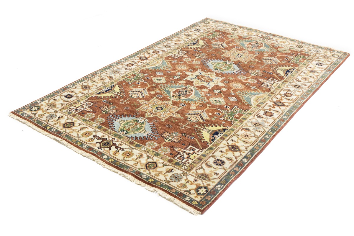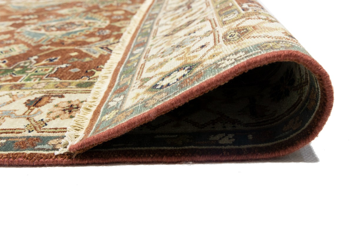 This authentic 5X8 rust new Oriental rug was crafted by the hands of skilled weavers enthused by a variety of lovely artistic designs, to recreate the aged look of the unique piece with a richness of color and beautifully elaborated background field. What set this vintage style Oriental area rug from the others are the material and dye used (wool pile and cotton foundation), knot count, ancient designs, fantastic grades, and its regional historical connection: it has deep roots, from the story of the people who produced it to the meaning of the symbols and colors displayed across its canvas that have been praised for centuries. This Indian home décor carpet will be completely cozy and inviting that never will go out of style! Also, this Oriental rug would be among your most valuable treasures, it is a great investment that increase in value over time, and it will last for generations because was woven with high-quality, all-natural wool. Environmentally friendly, opulent yet affordable; this rug will give you a thorough amount of character to help define your living space with sophistication and warmth that will capture the eyes and attention of your audience (homeowners, designers, decorators, family and friends). OT-8270