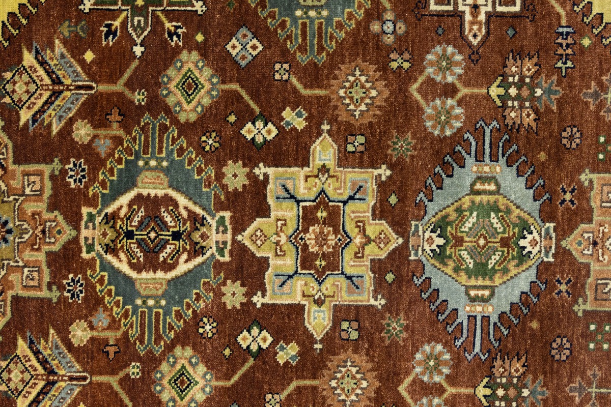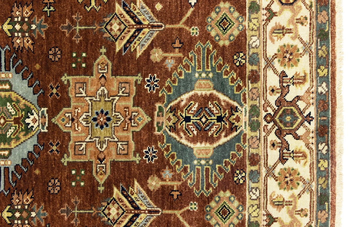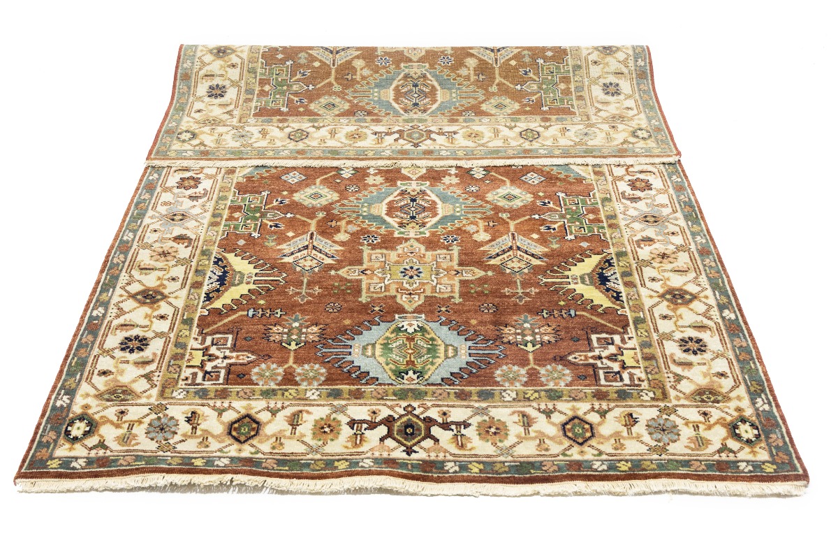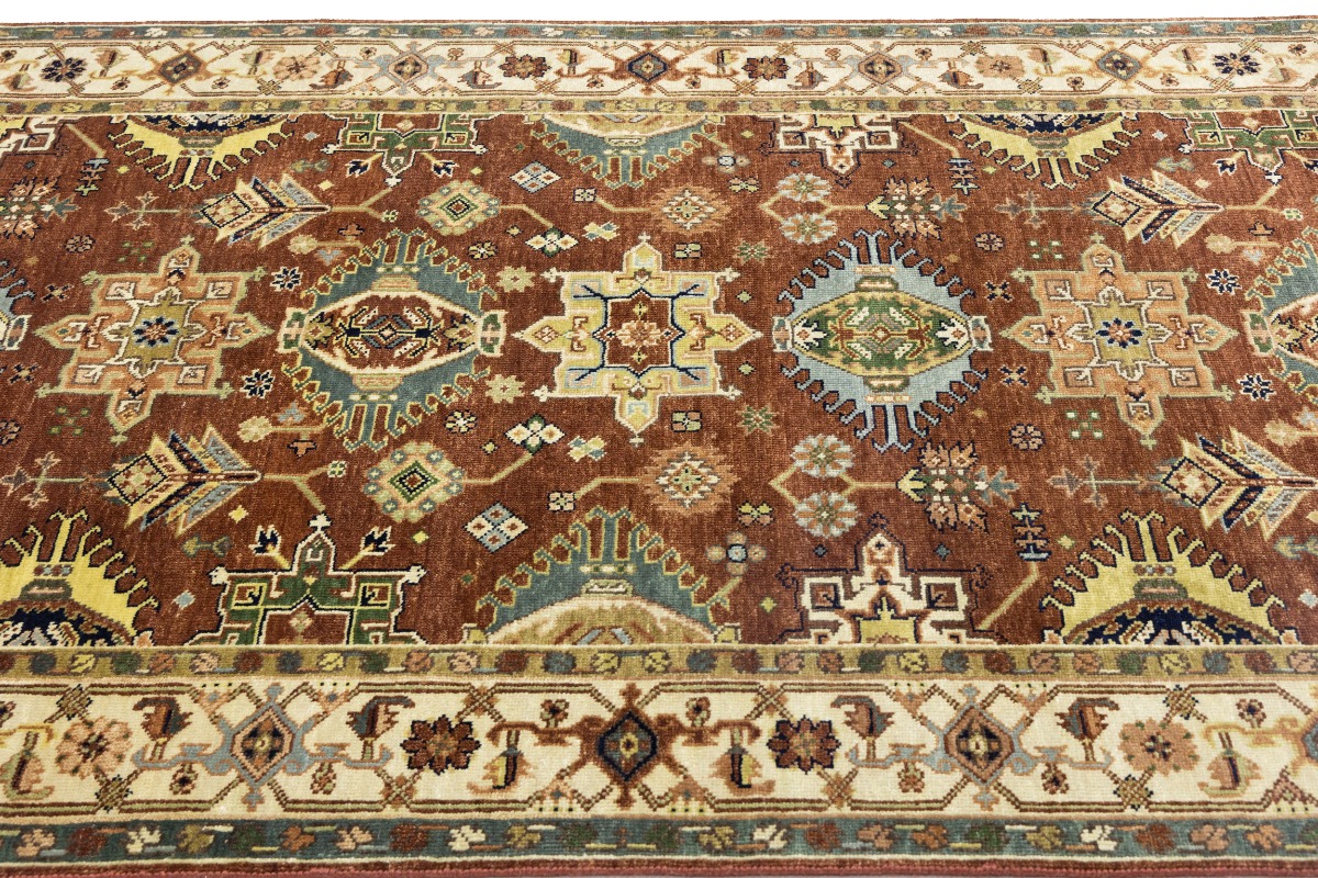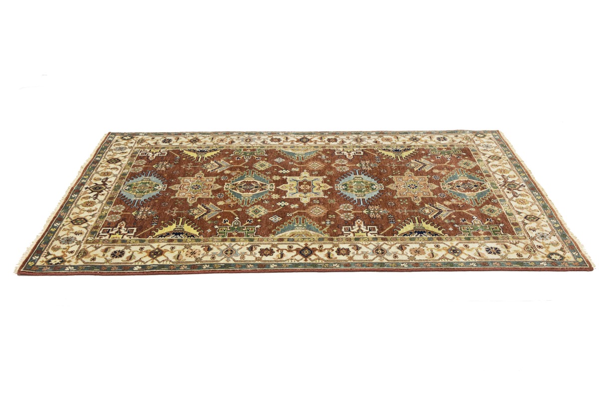 Handmade 5X8 rust oriental rug made with natural dyes (fine wool pile and cotton foundation), superior knot count, and appealing ancient designs. This Oriental rug never will go out of style and would be among your most valuable treasures.