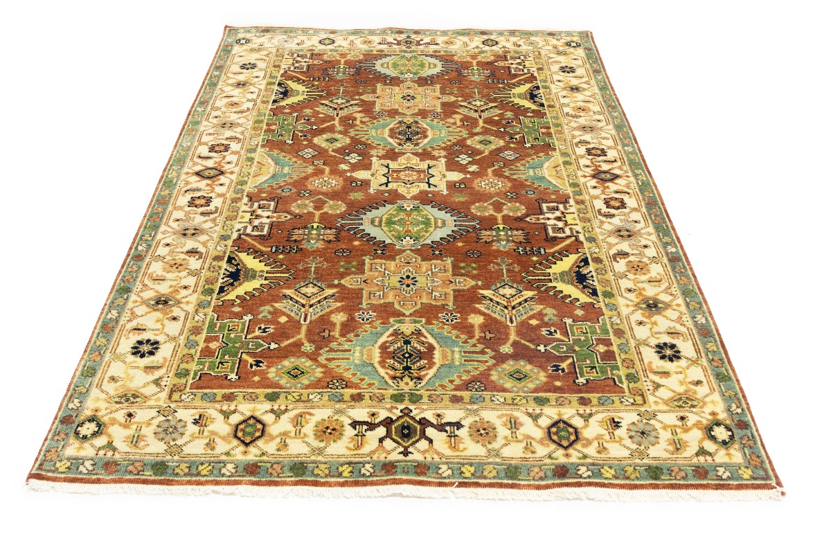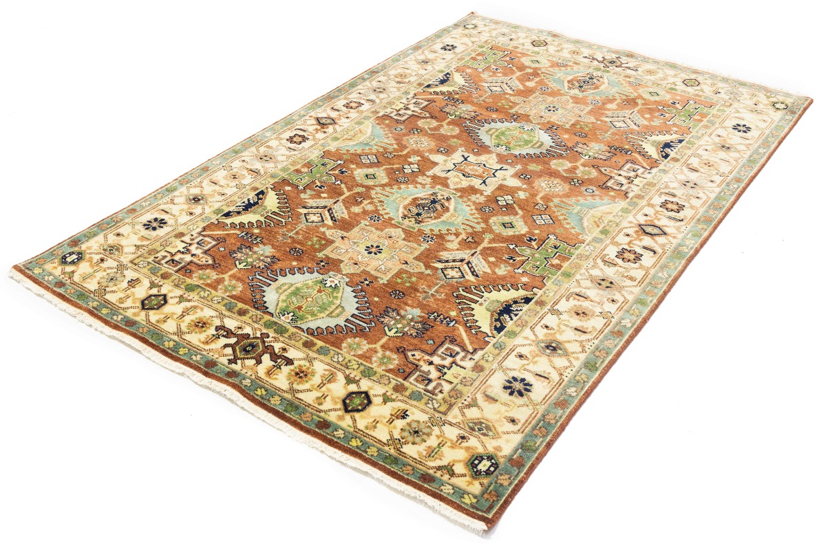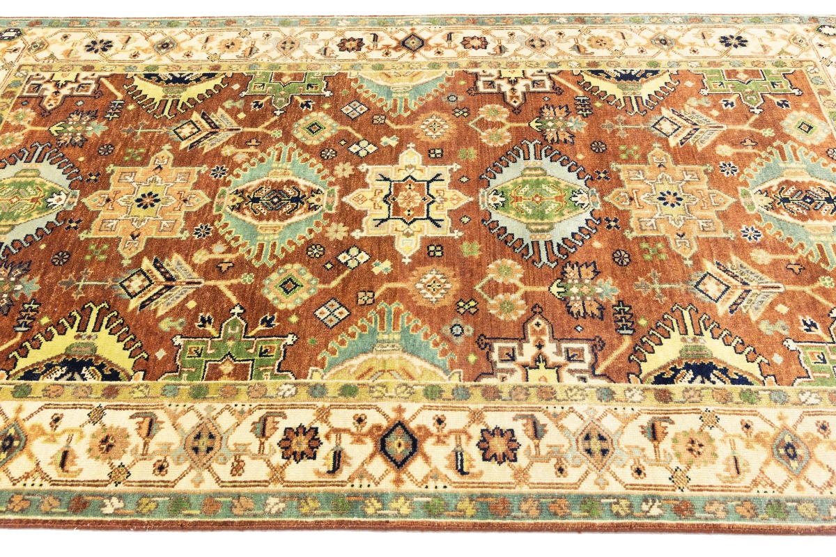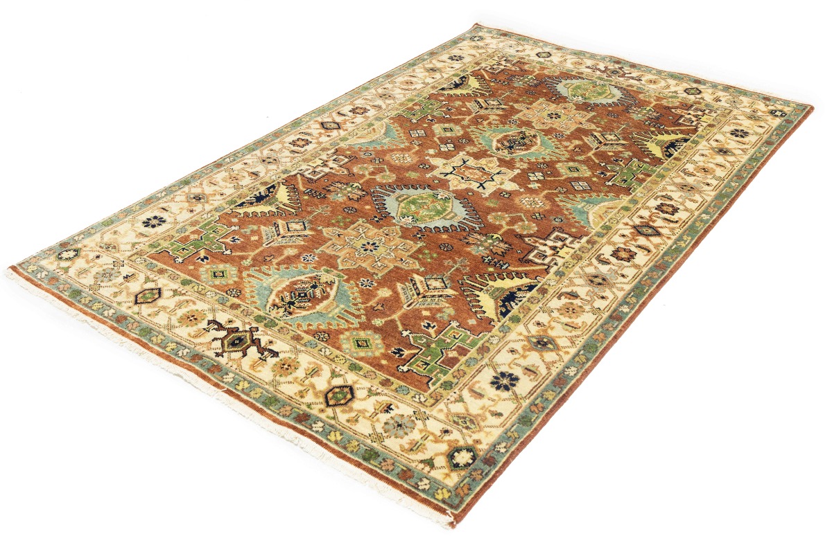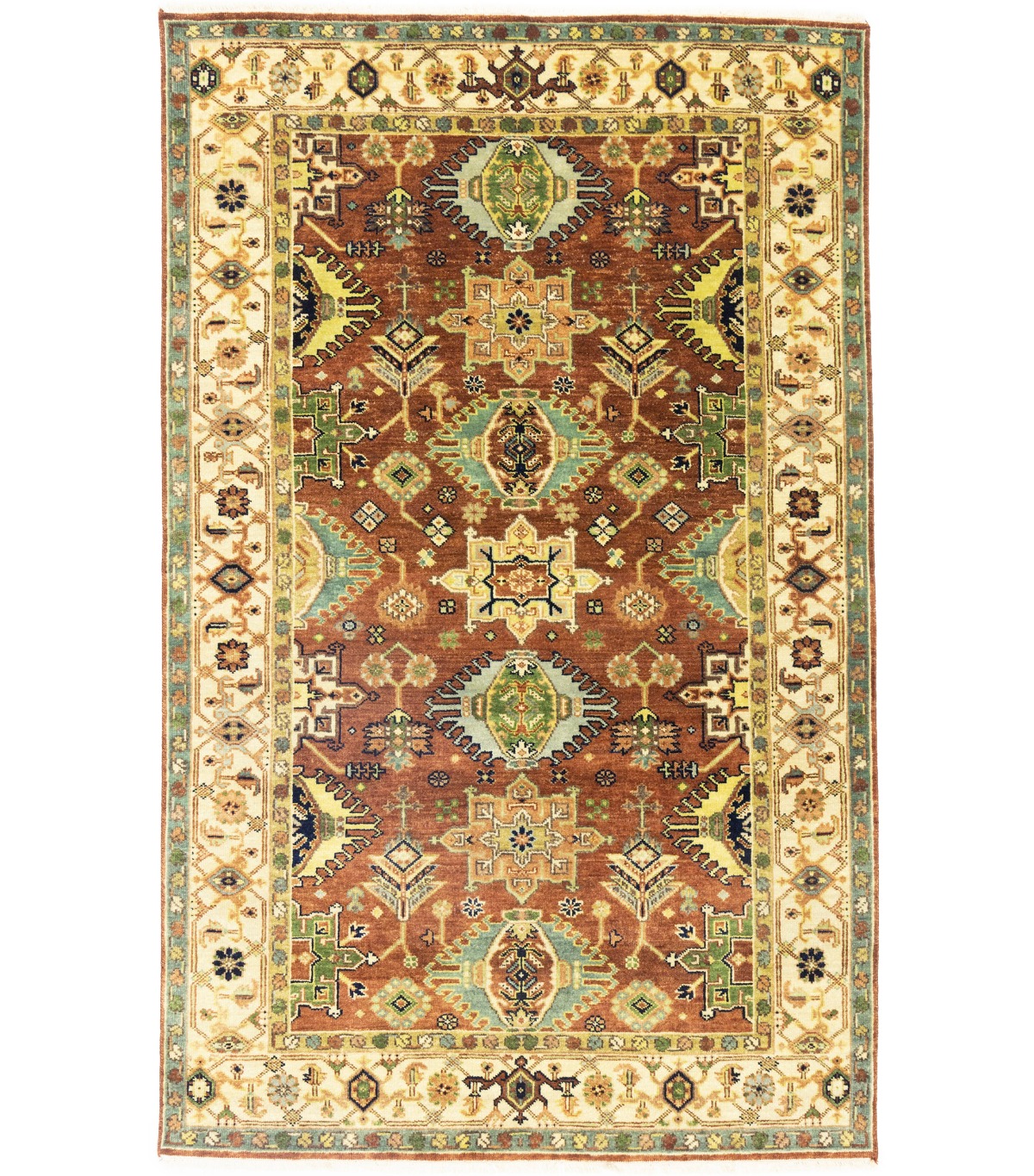 Rust & Cream Tribal Geometric 5X8 Indo-Karajeh Oriental Rug