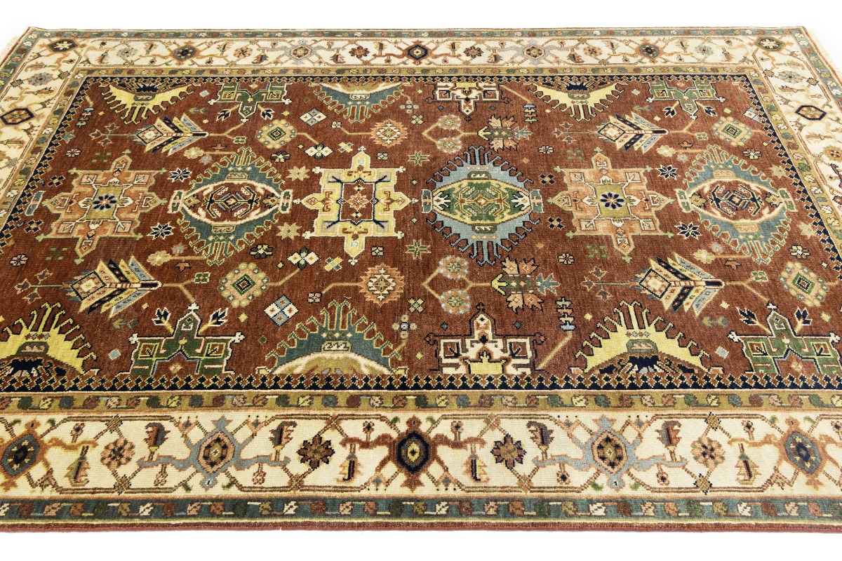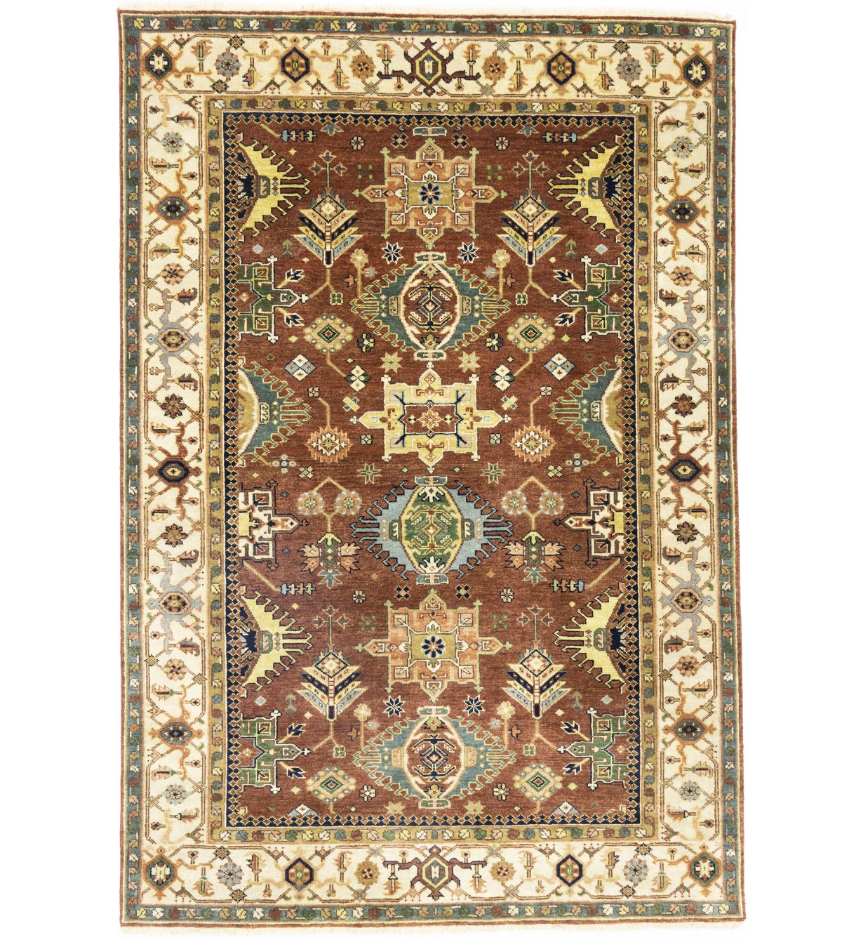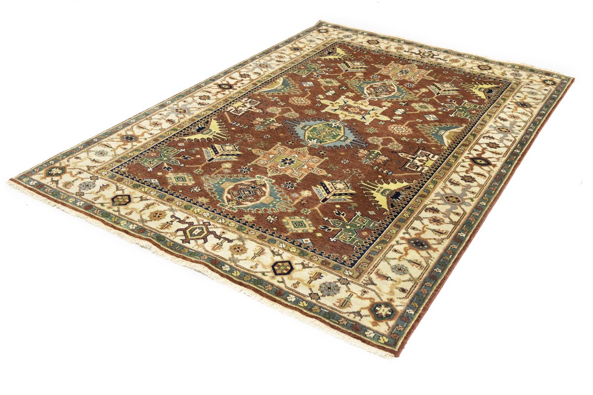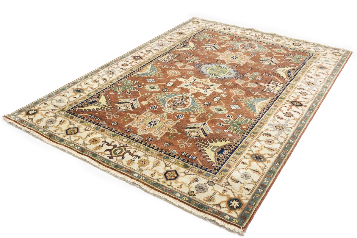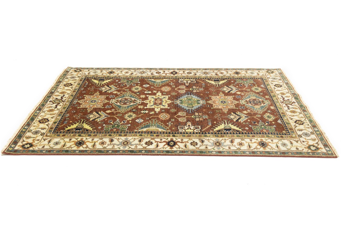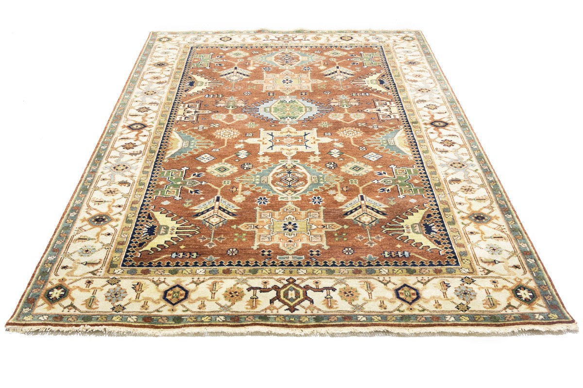 Rust & Cream Tribal Geometric 6X9 Indo-Karajeh Oriental Rug