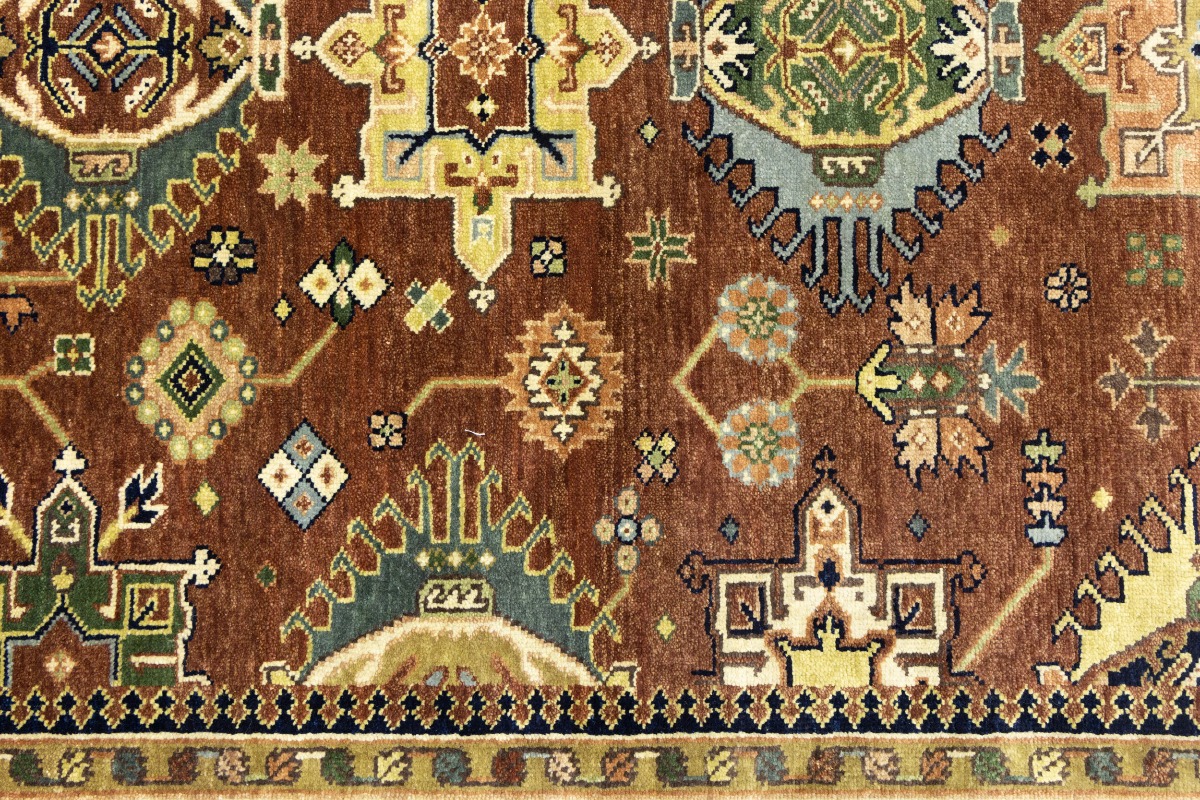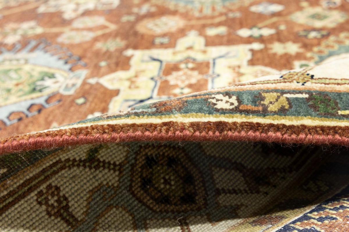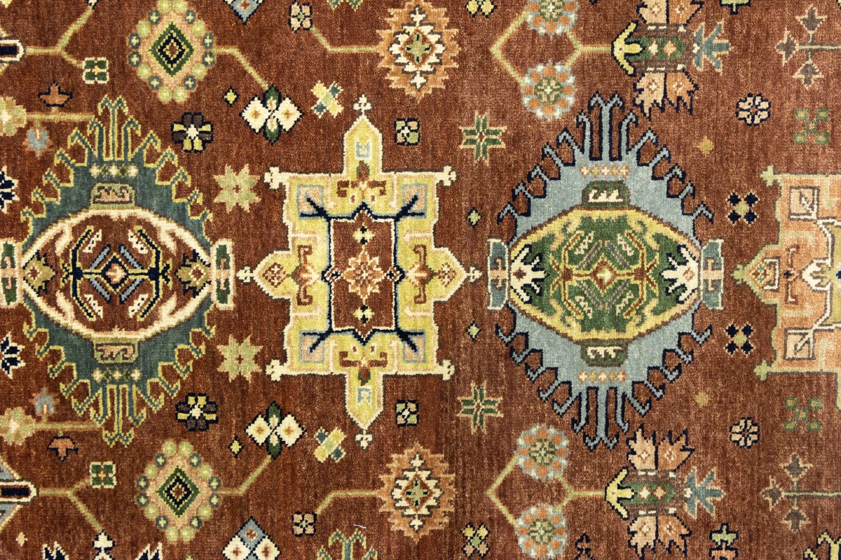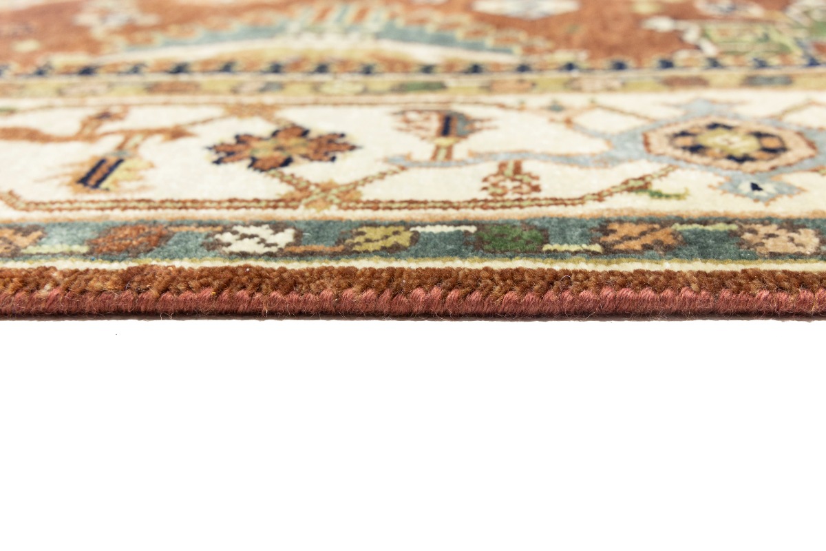 This authentic 6X9 orange new Oriental rug was crafted by the hands of skilled weavers enthused by a variety of lovely artistic designs, to recreate the aged look of the unique piece with a richness of color and beautifully elaborated background field. What set this vintage style Oriental area rug from the others are the material and dye used (wool pile and cotton foundation), knot count, ancient designs, fantastic grades, and its regional historical connection: it has deep roots, from the story of the people who produced it to the meaning of the symbols and colors displayed across its canvas that have been praised for centuries. This Indian home décor carpet will be completely cozy and inviting that never will go out of style! Also, this Oriental rug would be among your most valuable treasures, it is a great investment that increase in value over time, and it will last for generations because was woven with high-quality, all-natural wool. Environmentally friendly, opulent yet affordable; this rug will give you a thorough amount of character to help define your living space with sophistication and warmth that will capture the eyes and attention of your audience (homeowners, designers, decorators, family and friends). OT-8272