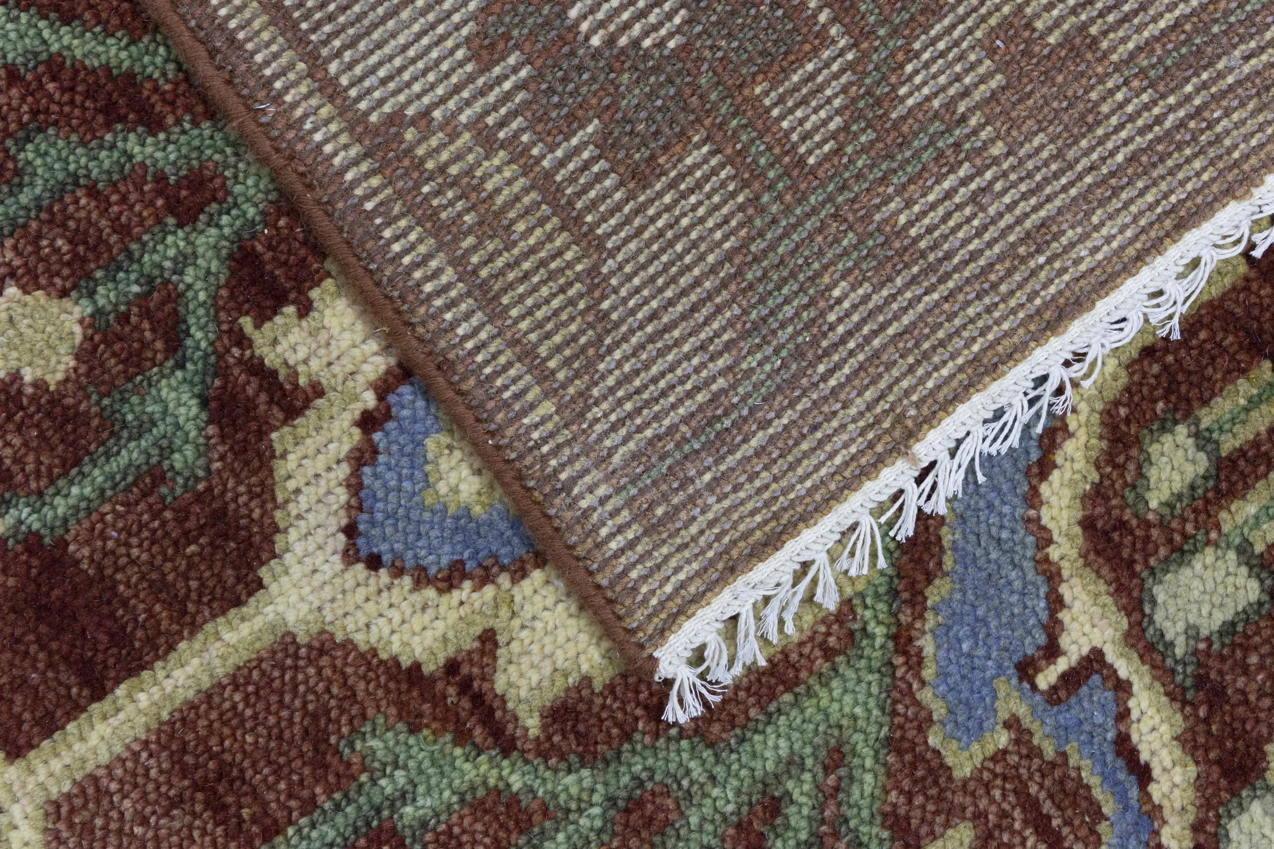 This genuine 9X12 rust new Oriental rug was made by the hands of gifted weavers inspired by a variety of spectacular artistic designs, to recreate the aged look of the original piece with a richness of color and ornately patterned background field. What set this vintage style Oriental area rug from the others are the material and dye used (wool pile and cotton foundation), knot count, ancient designs, fantastic grades, and its regional historical connection: it has deep roots, from the story of the people who produced it to the meaning of the symbols and colors displayed across its canvas that have been praised for centuries. This Indian home décor carpet will be completely cozy and inviting that never will go out of style! Also, this Oriental rug would be among your most valuable treasures, it is a great investment that accrues value over time, and it will last for generations because was woven with high-quality, all-natural wool. Environmentally friendly, opulent yet affordable; this rug will give you a thorough amount of character to help define your living space with elegance and warmth that will capture the eyes and attention of your audience (homeowners, designers, decorators, family and friends). OT-7505