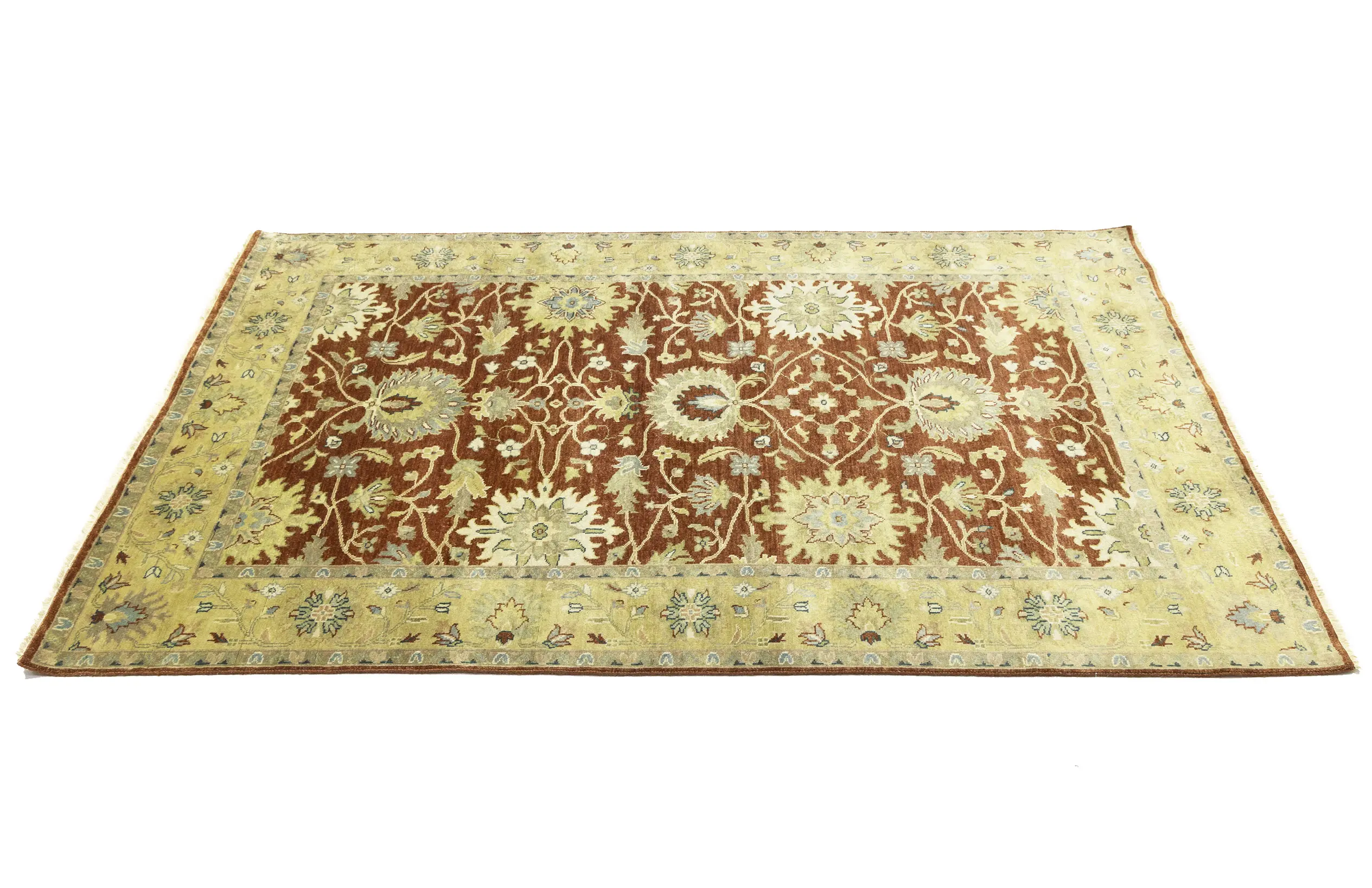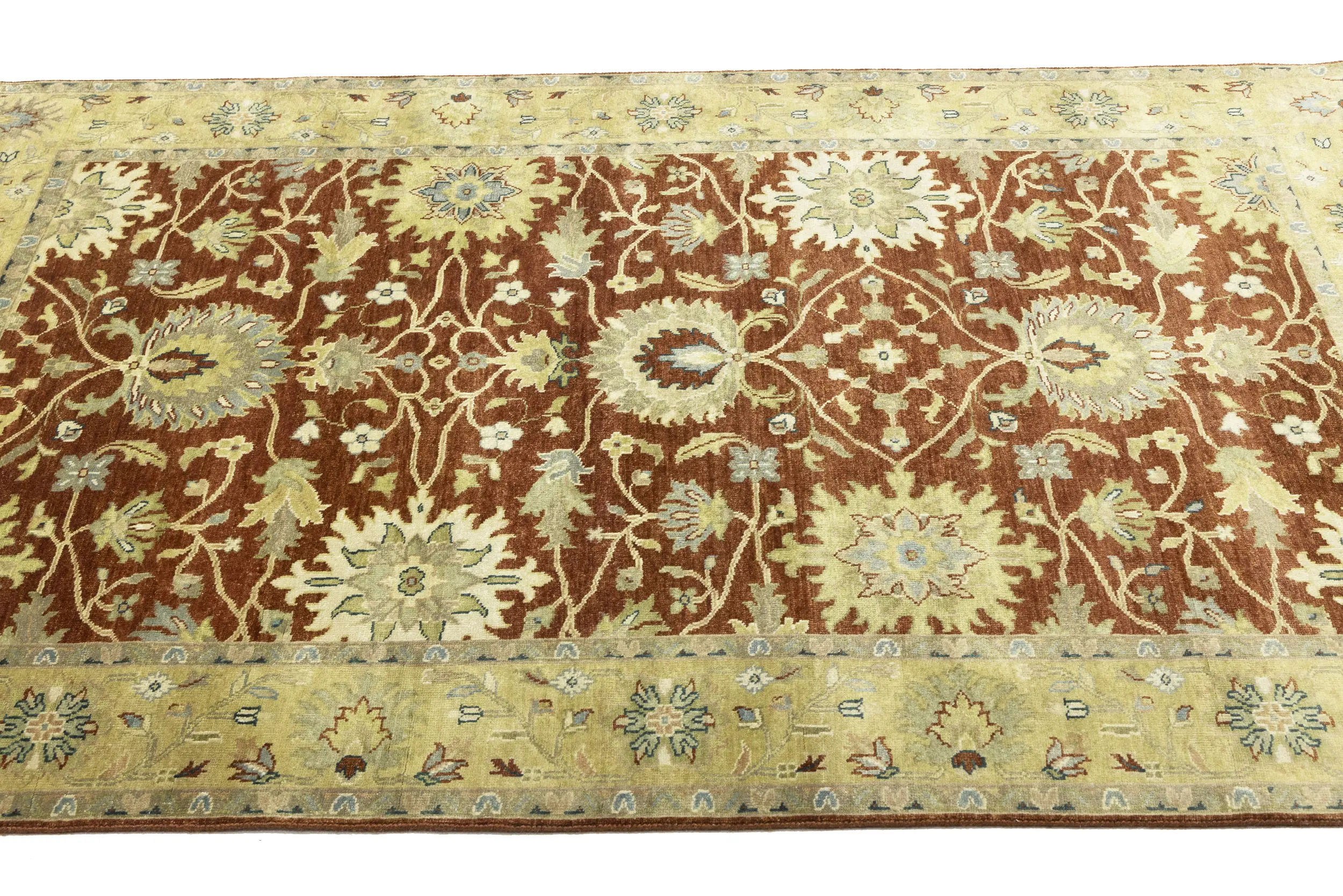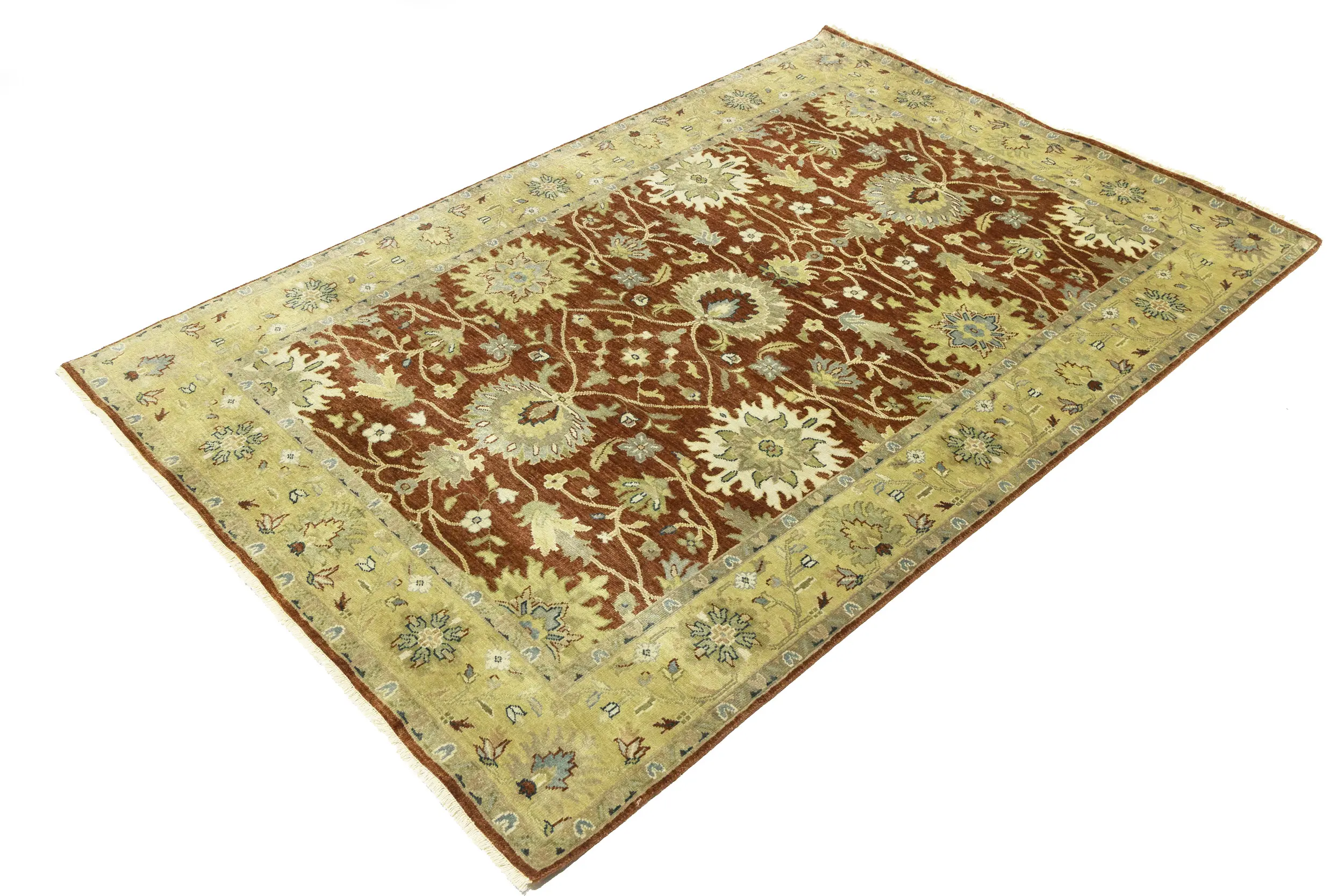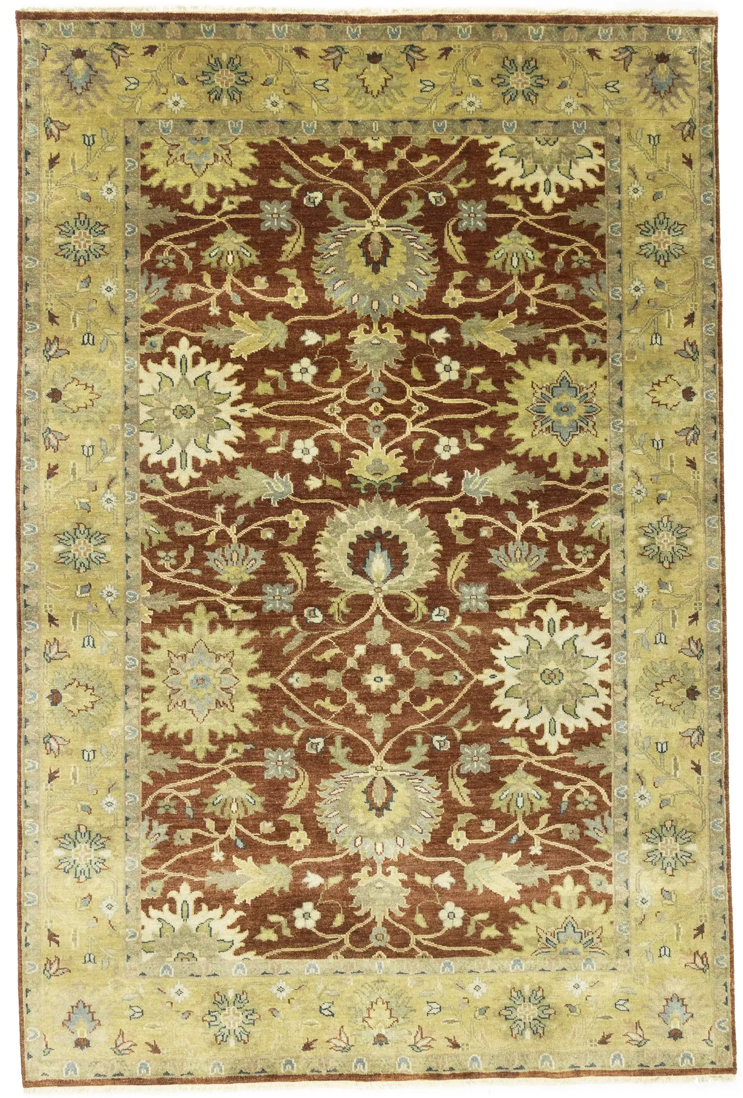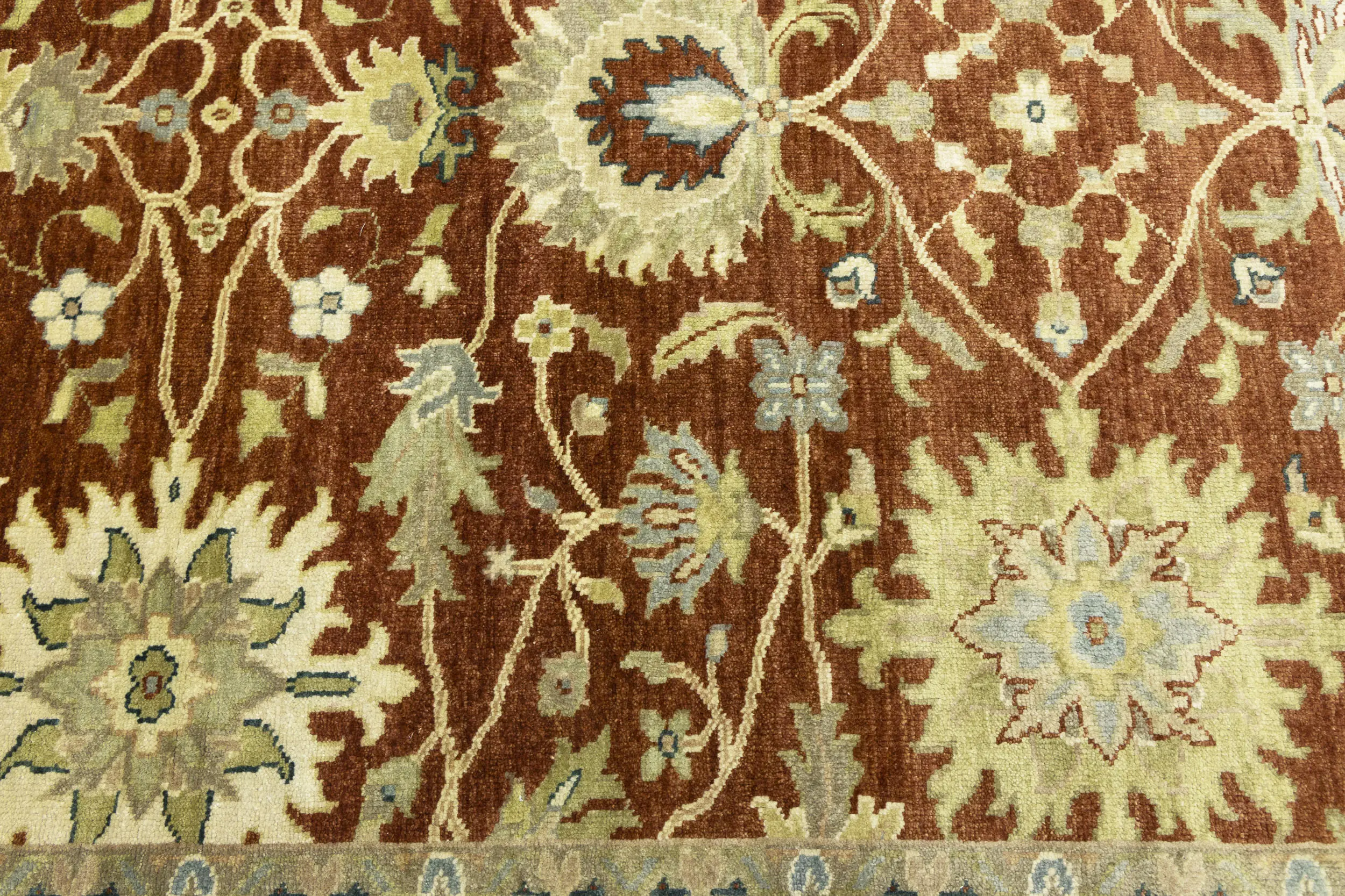 This authentic 6X9 rust new Oriental rug was masterly knotted by the hands of weavers inspired by a variety of wonderful artistic designs, to recreate the aged look of the original piece with a richness of color and intricate patterned background field. What set this vintage style Oriental area rug from the others are the material and dye used (wool pile and cotton foundation), knot count, antique designs, fantastic grades, and its regional historical connection: it has deep roots, from the story of the people who produced it to the meaning of the symbols and colors displayed across its canvas that have been praised for centuries. This Indian home décor carpet will be completely cozy and inviting that never will go out of style! Also, this Oriental rug would be among your most valuable treasures, it is a great investment that accrues value over time, and it will last for generations because was woven with high-quality, all-natural wool. Environmentally friendly, opulent yet affordable; this rug will give you a thorough amount of character to help define your living space with luxury and warmth that will capture the eyes and attention of your audience (homeowners, designers, decorators, family and friends).