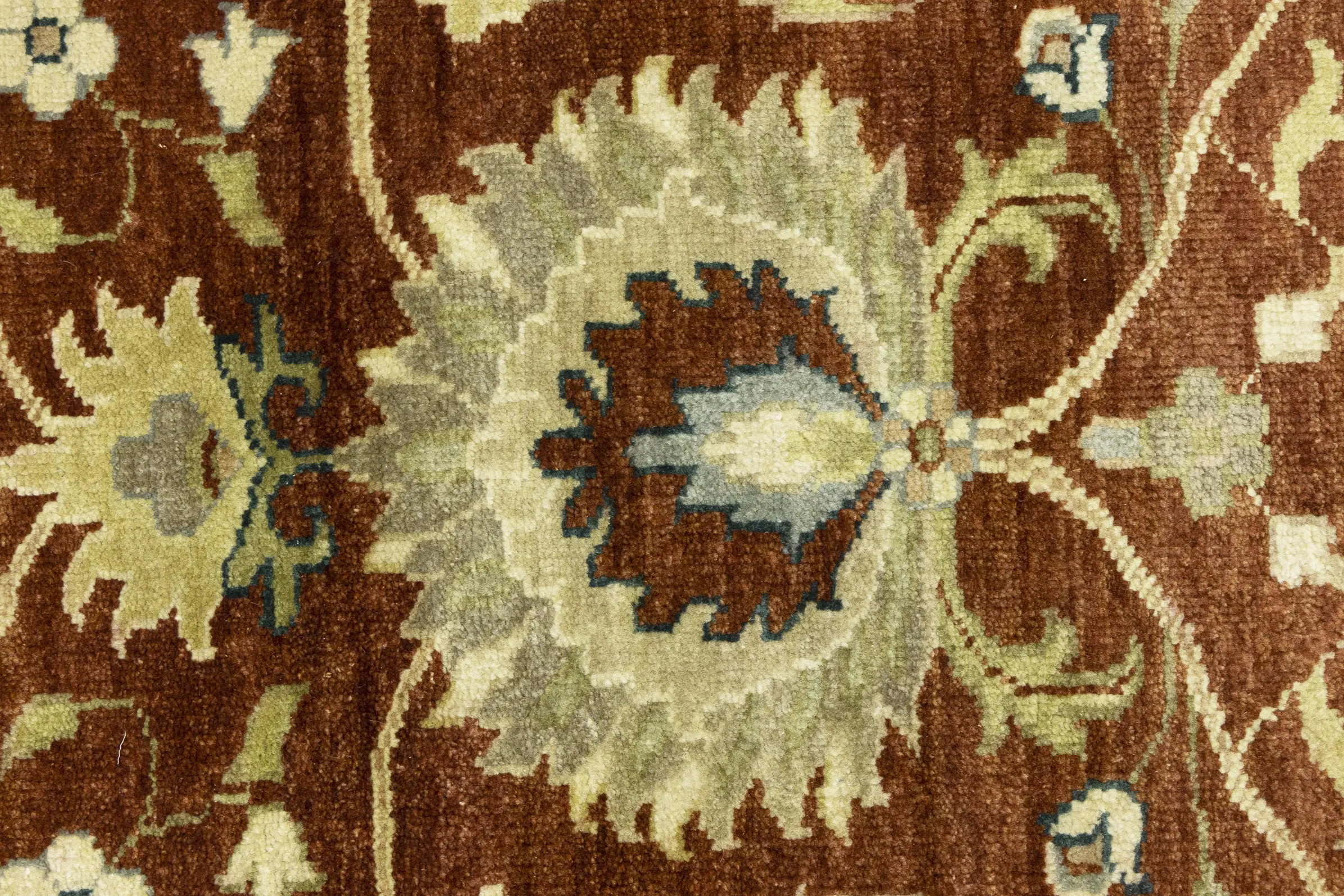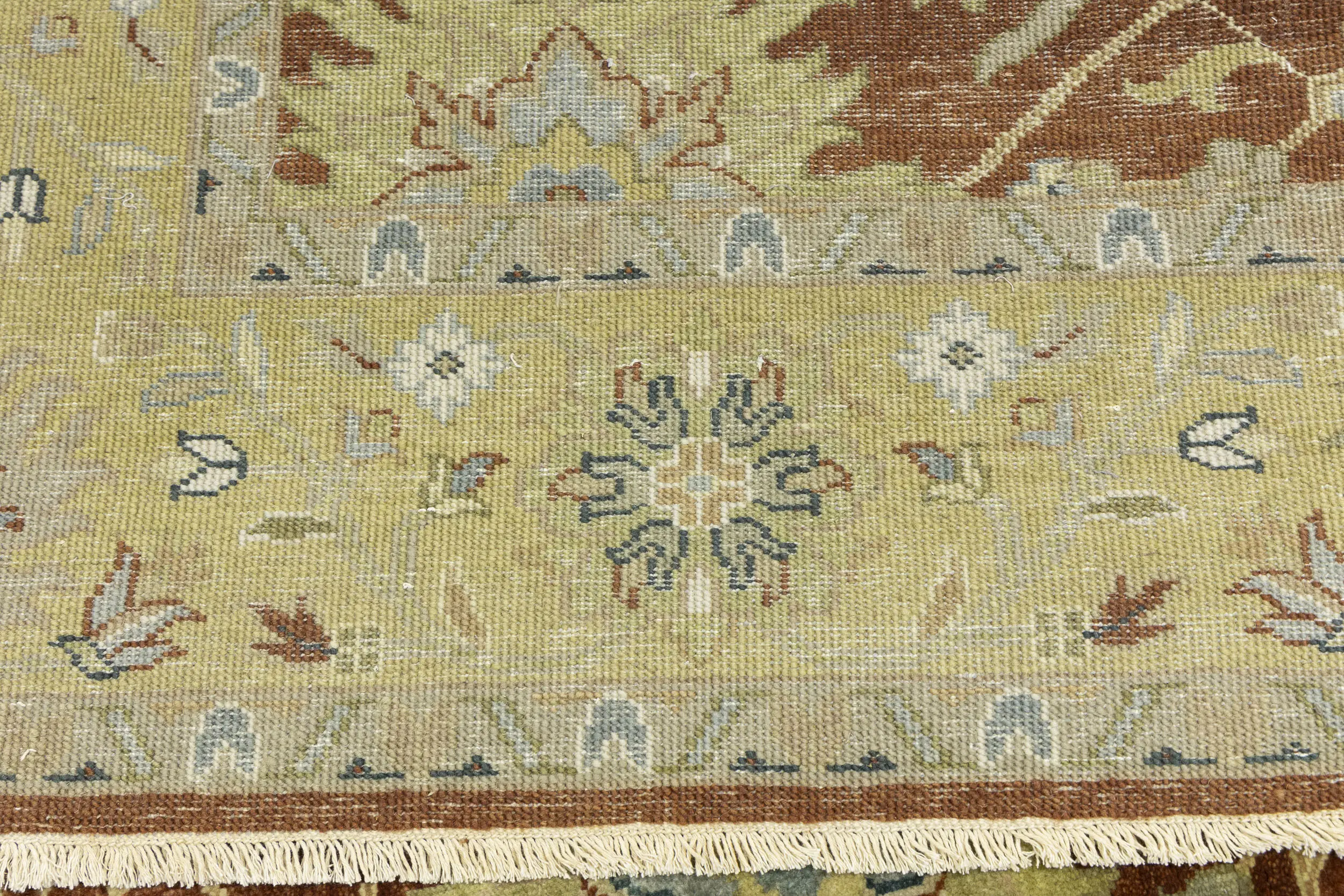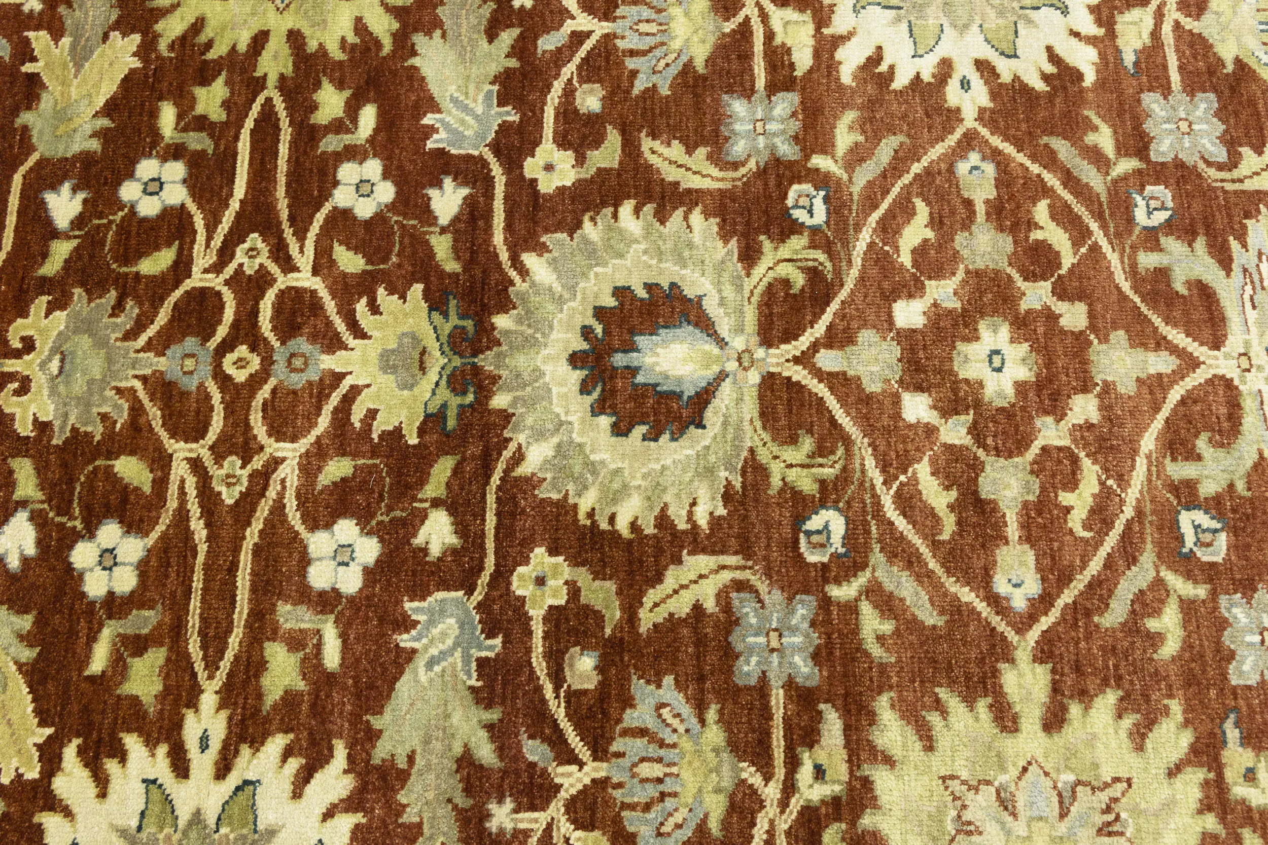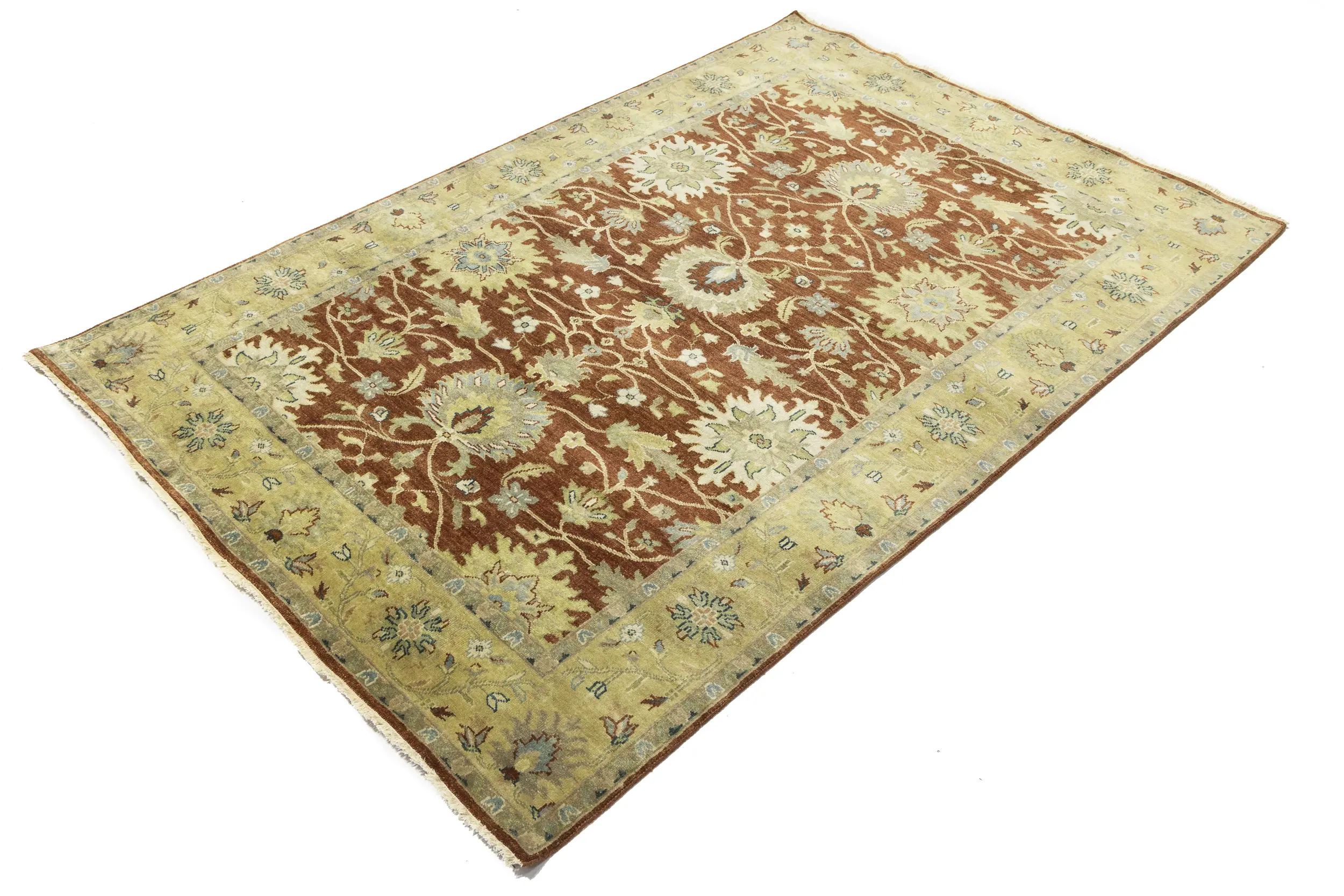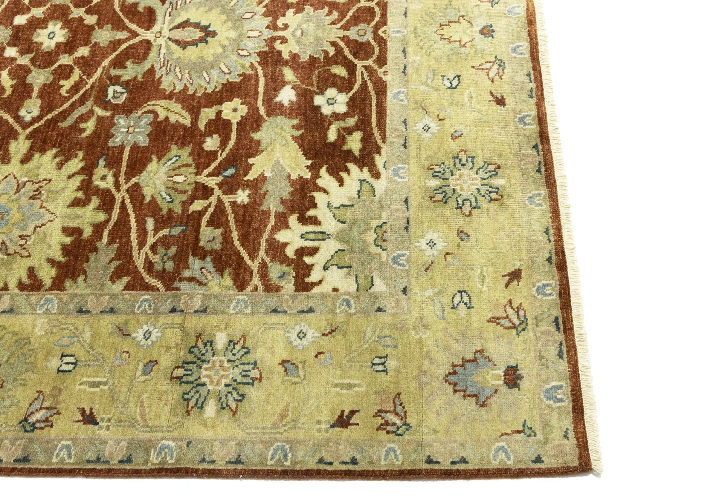 This authentic 6X9 rust new Oriental rug was masterly knotted by the hands of weavers inspired by a variety of wonderful artistic designs, to recreate the aged look of the original piece with a richness of color and intricate patterned background field. What set this vintage style Oriental area rug from the others are the material and dye used (wool pile and cotton foundation), knot count, antique designs, fantastic grades, and its regional historical connection: it has deep roots, from the story of the people who produced it to the meaning of the symbols and colors displayed across its canvas that have been praised for centuries. This Indian home décor carpet will be completely cozy and inviting that never will go out of style! Also, this Oriental rug would be among your most valuable treasures, it is a great investment that accrues value over time, and it will last for generations because was woven with high-quality, all-natural wool. Environmentally friendly, opulent yet affordable; this rug will give you a thorough amount of character to help define your living space with luxury and warmth that will capture the eyes and attention of your audience (homeowners, designers, decorators, family and friends).