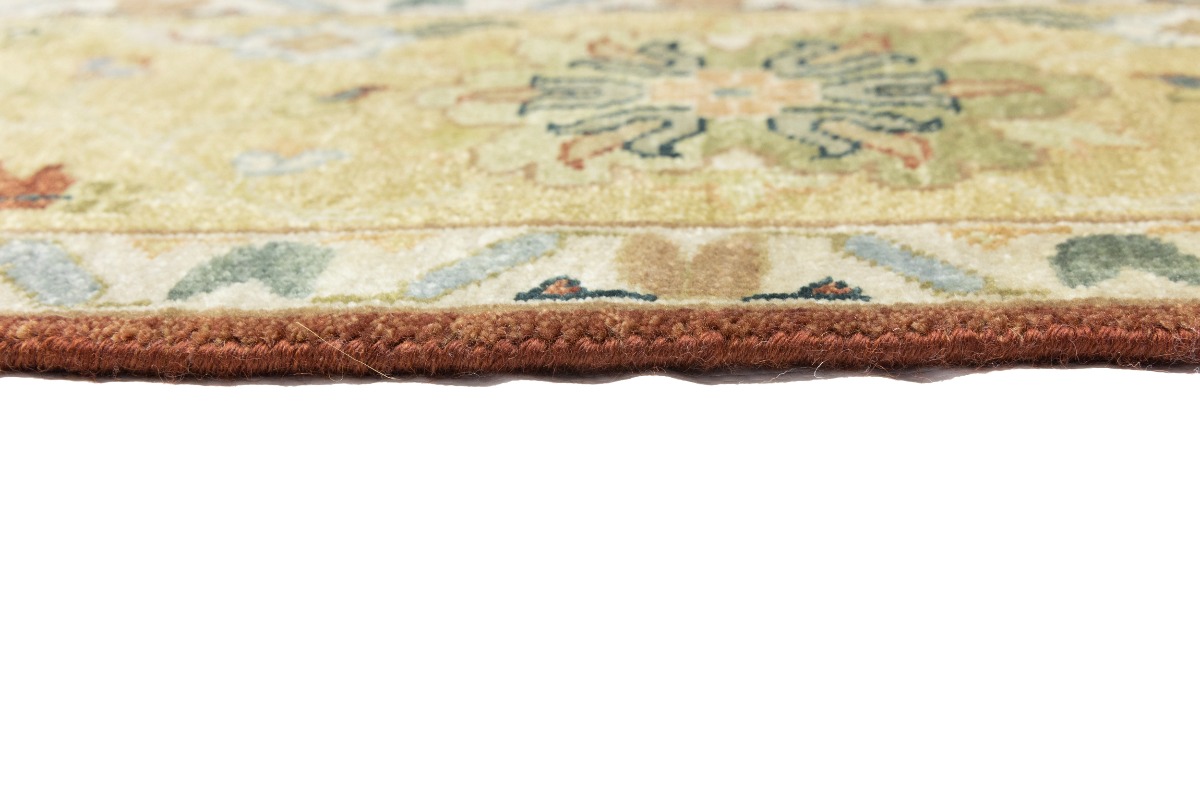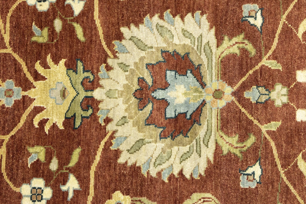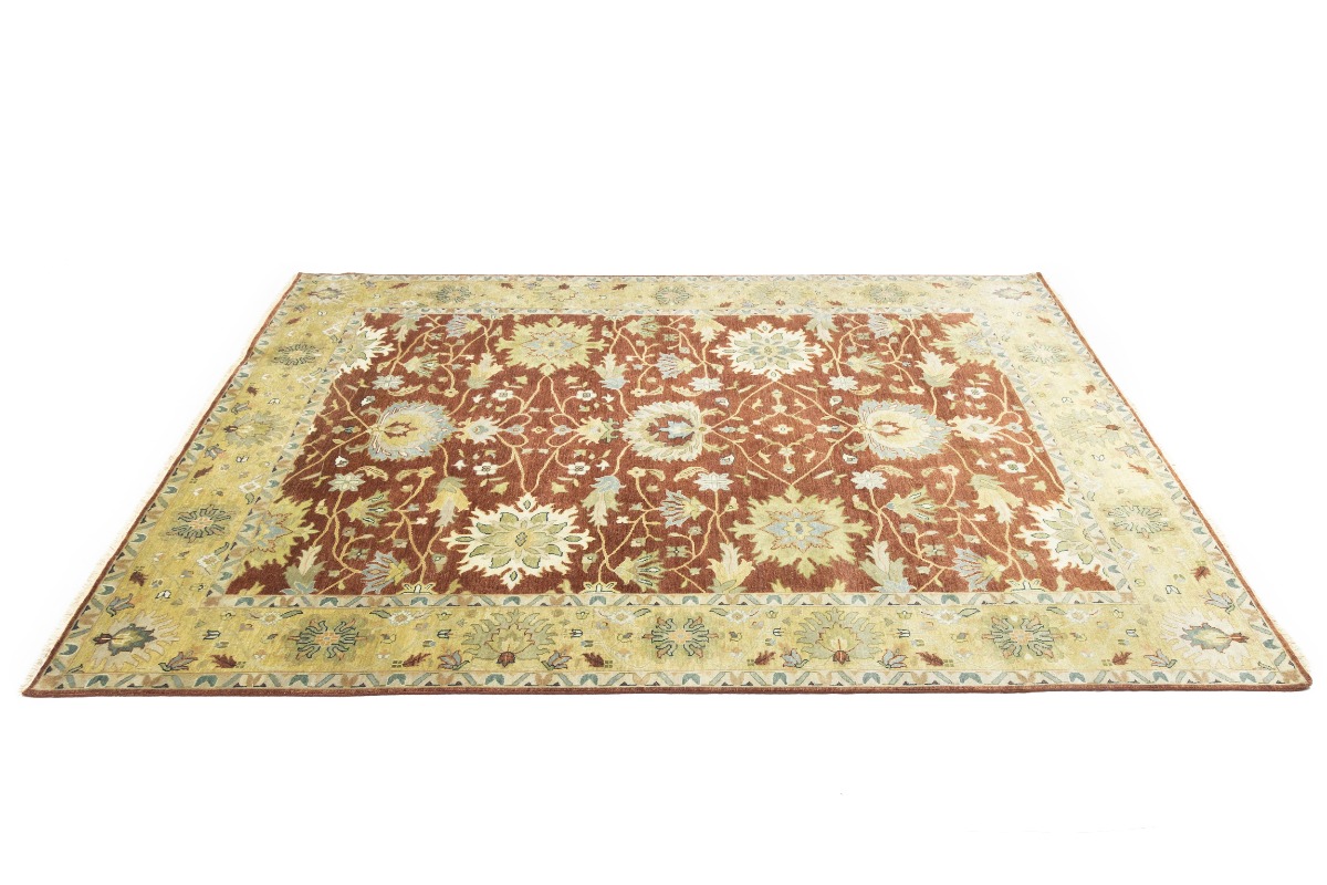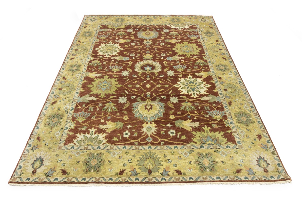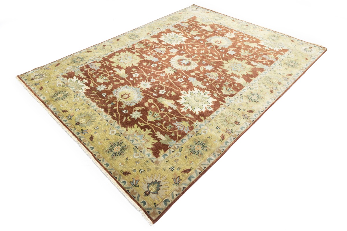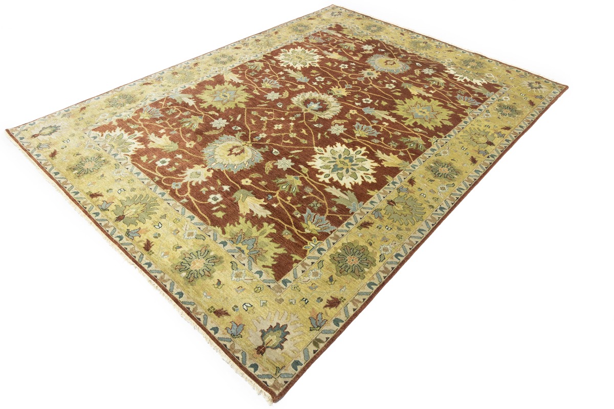 This genuine 9X12 orange new Oriental rug was made by the hands of gifted weavers inspired by a variety of spectacular artistic designs, to recreate the aged look of the original piece with a richness of color and ornately patterned background field. What set this vintage style Oriental area rug from the others are the material and dye used (wool pile and cotton foundation), knot count, ancient designs, fantastic grades, and its regional historical connection: it has deep roots, from the story of the people who produced it to the meaning of the symbols and colors displayed across its canvas that have been praised for centuries. This Indian home décor carpet will be completely cozy and inviting that never will go out of style! Also, this Oriental rug would be among your most valuable treasures, it is a great investment that accrues value over time, and it will last for generations because was woven with high-quality, all-natural wool. Environmentally friendly, opulent yet affordable; this rug will give you a thorough amount of character to help define your living space with elegance and warmth that will capture the eyes and attention of your audience (homeowners, designers, decorators, family and friends). OT-9065