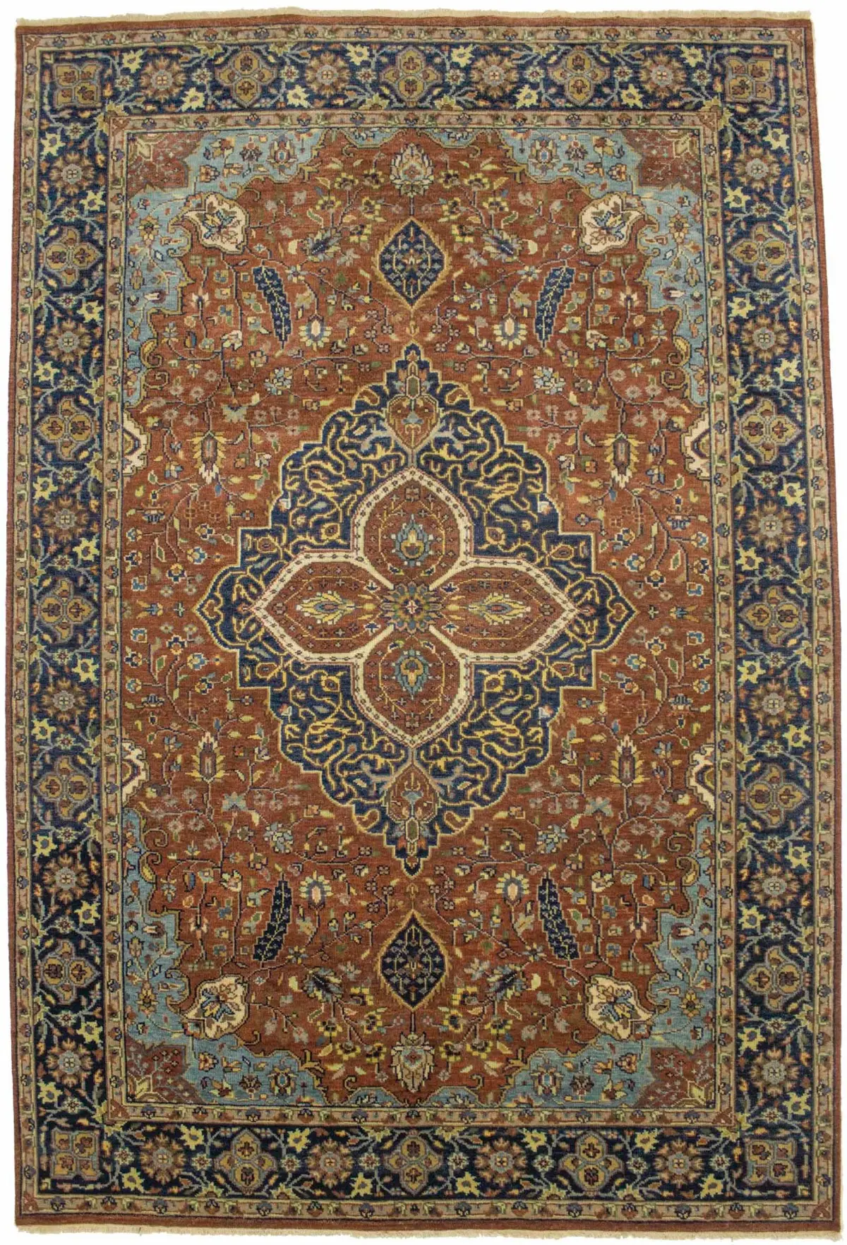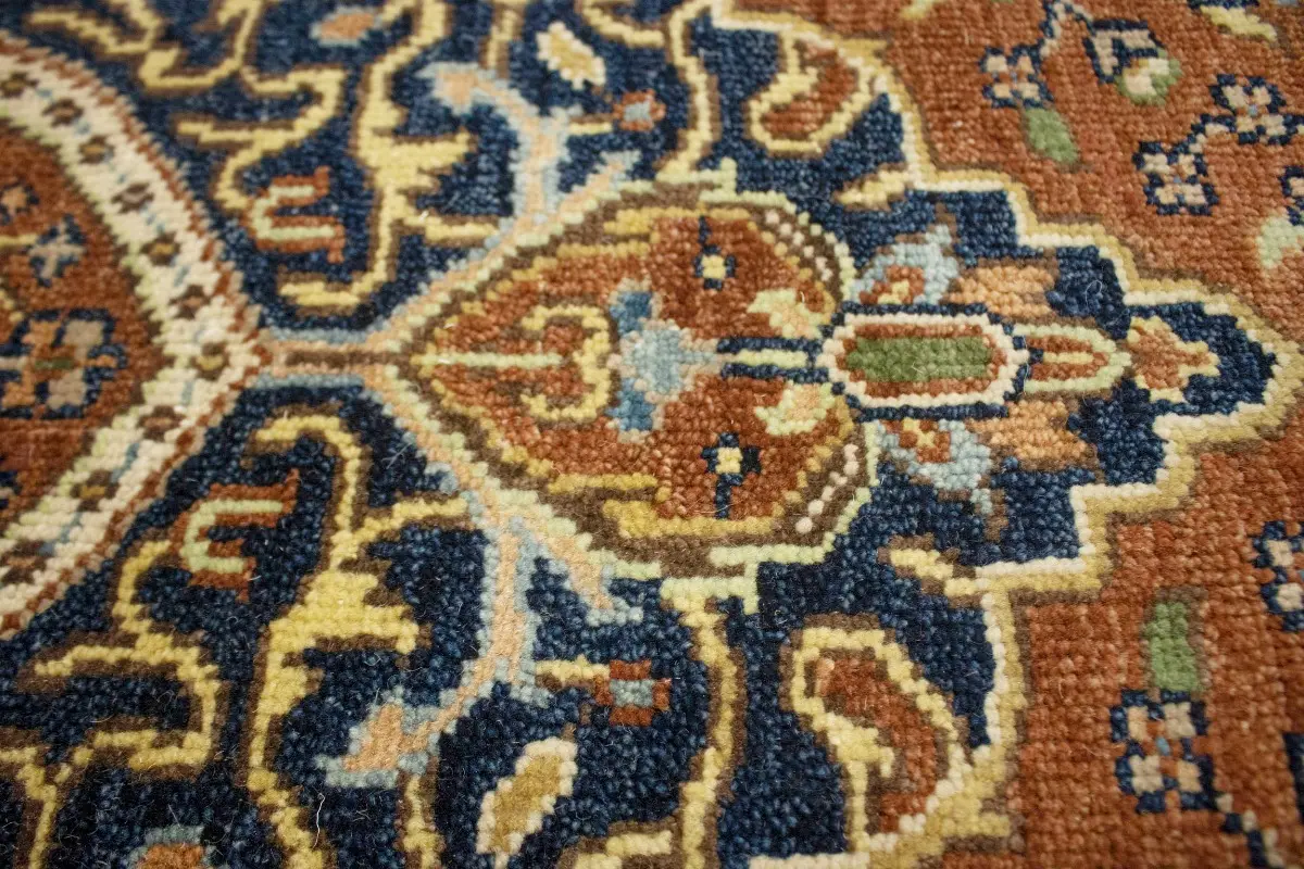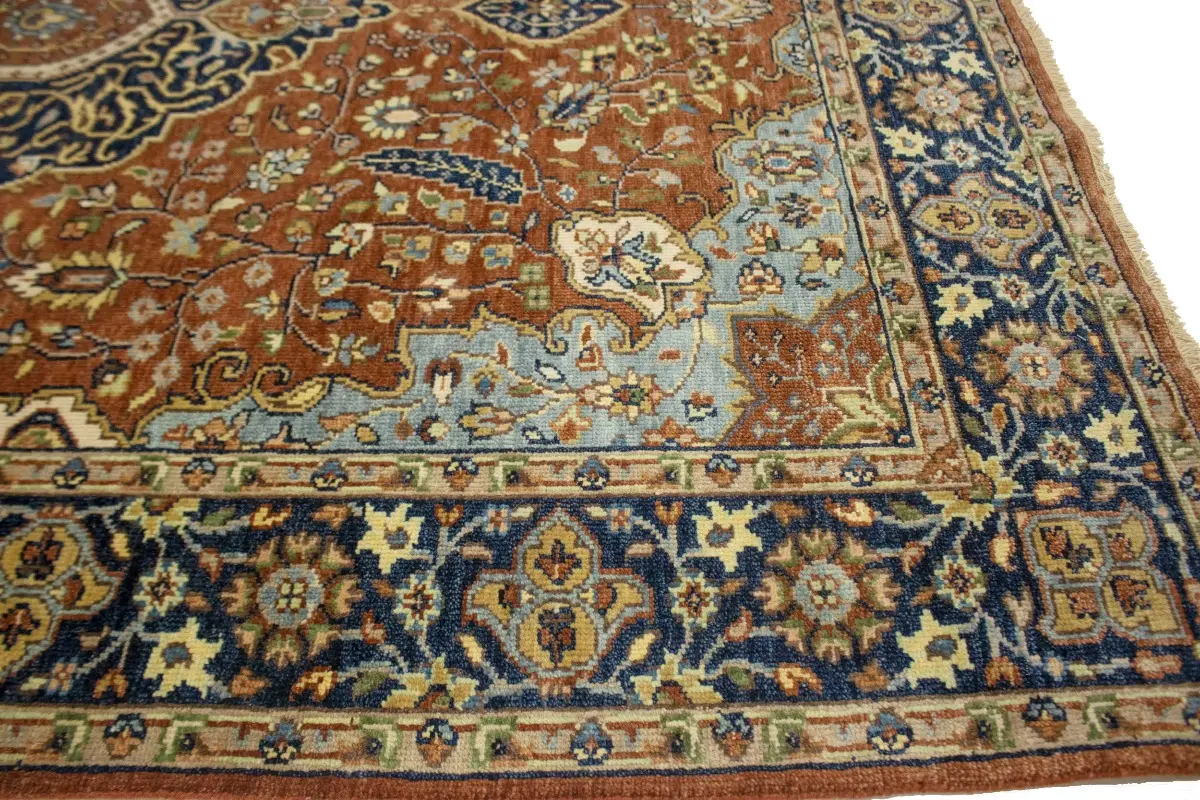 This genuine 6X9 rust new Oriental rug was made by the hands of gifted weavers inspired by a variety of spectacular artistic designs, to recreate the aged look of the original piece with a richness of color and ornately patterned background field. What set this vintage style Oriental area rug from the others are the material and dye used (wool pile and cotton foundation), knot count, ancient designs, fantastic grades, and its regional historical connection: it has deep roots, from the story of the people who produced it to the meaning of the symbols and colors displayed across its canvas that have been praised for centuries. This Indian home décor carpet will be completely cozy and inviting that never will go out of style! Also, this Oriental rug would be among your most valuable treasures, it is a great investment that accrues value over time, and it will last for generations because was woven with high-quality, all-natural wool. Environmentally friendly, opulent yet affordable; this rug will give you a thorough amount of character to help define your living space with elegance and warmth that will capture the eyes and attention of your audience (homeowners, designers, decorators, family and friends). OT-5689