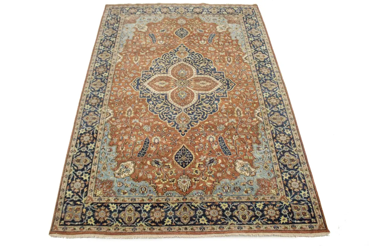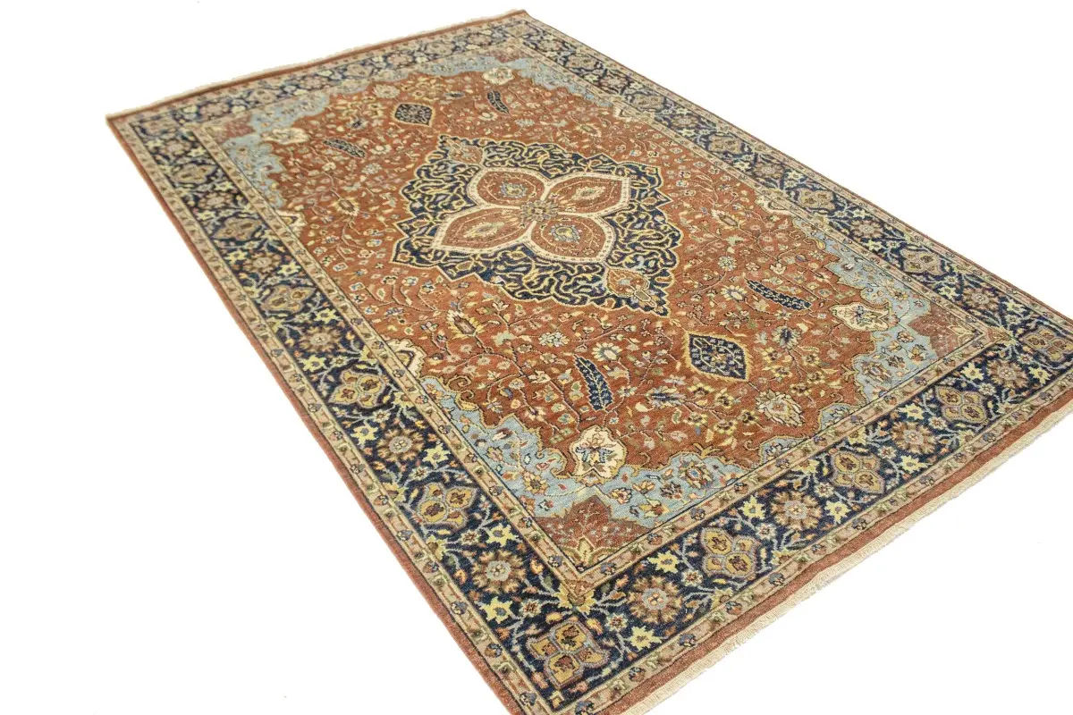Hand Knotted 6X9 rust oriental rug made with vegetable dyes (fine wool pile and cotton foundation), exceptional knot count, and alluring ancient designs. This Oriental rug never will go out of style and would be among your most valuable treasures.