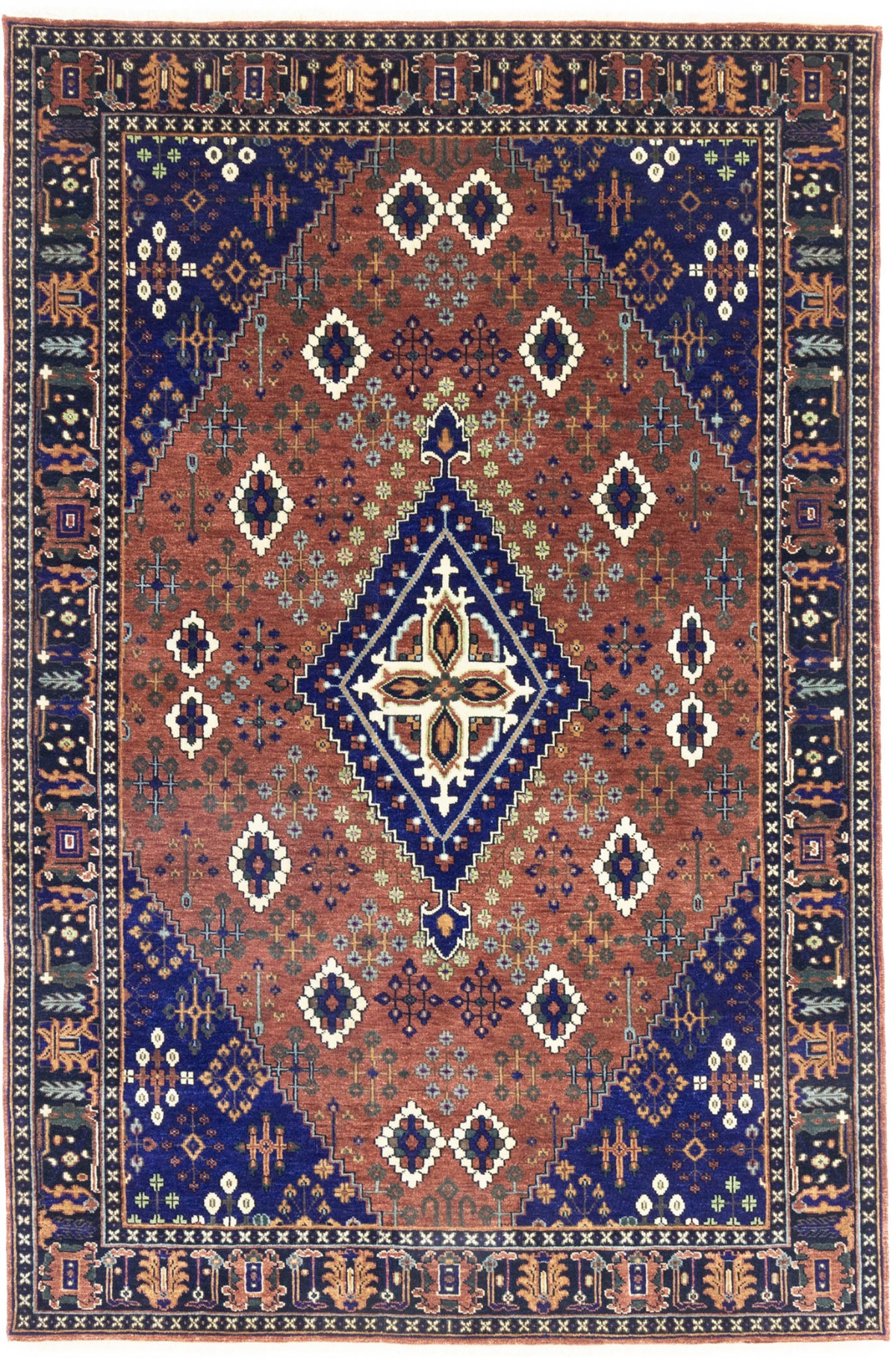 Rust & Navy Tribal 6X9 Indo-Joshaghan Oriental Rug