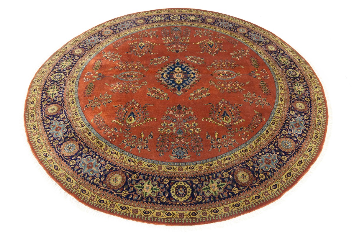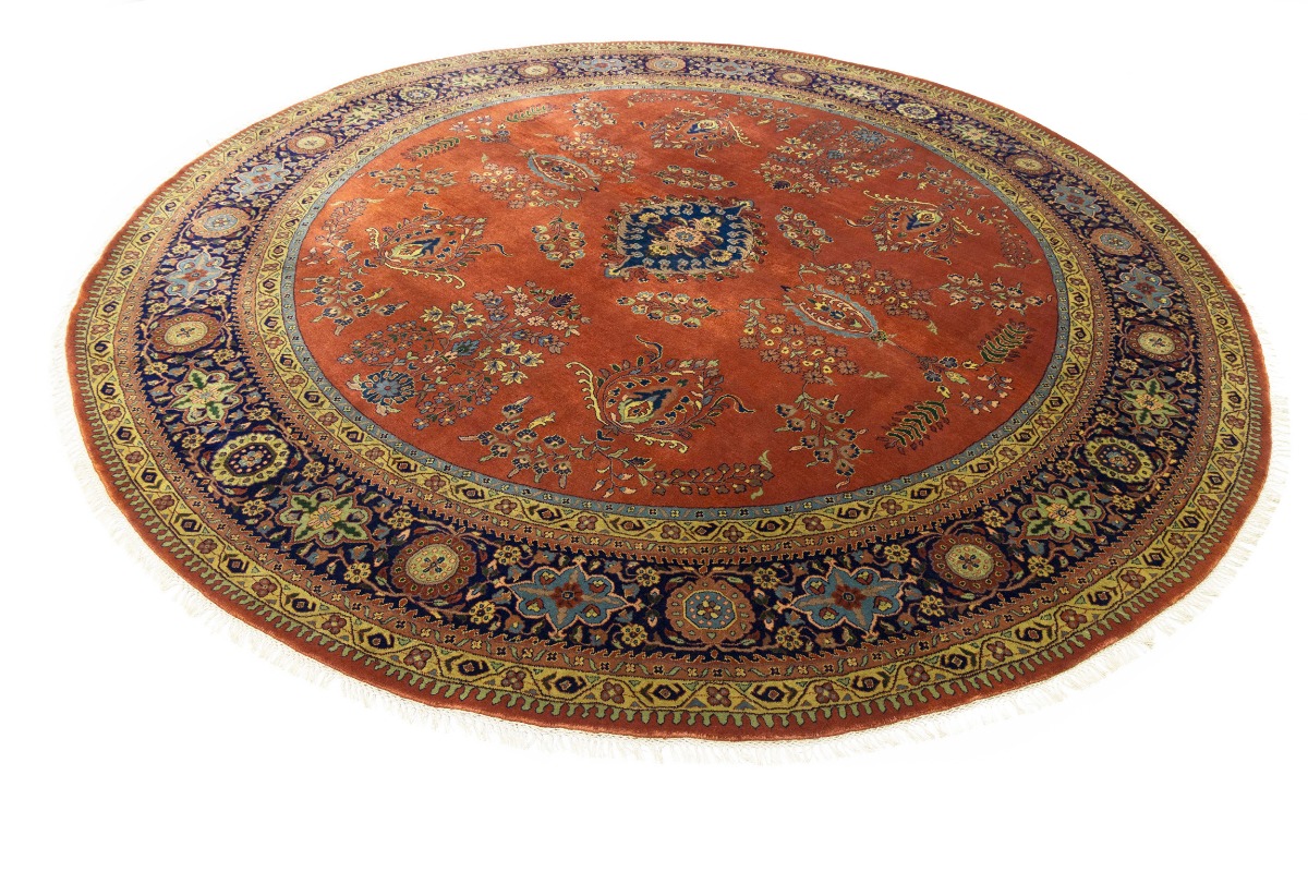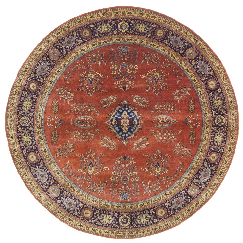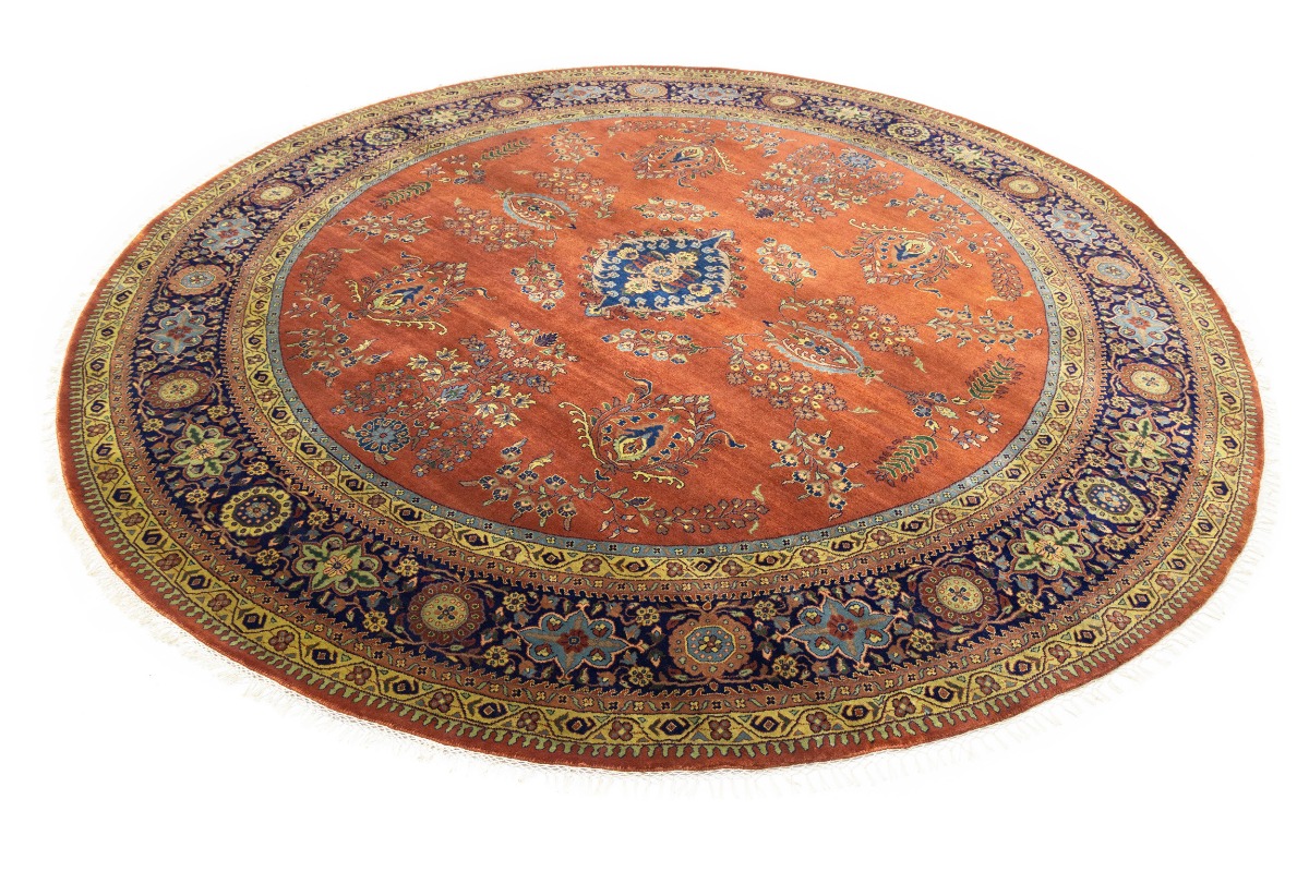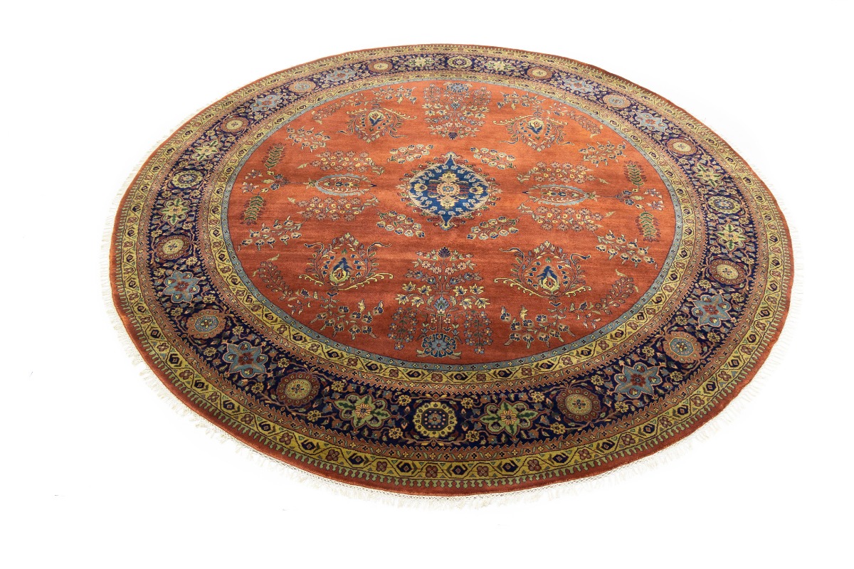 Rust Orange Floral 10X10 Indo-Sarouk Oriental Round Rug