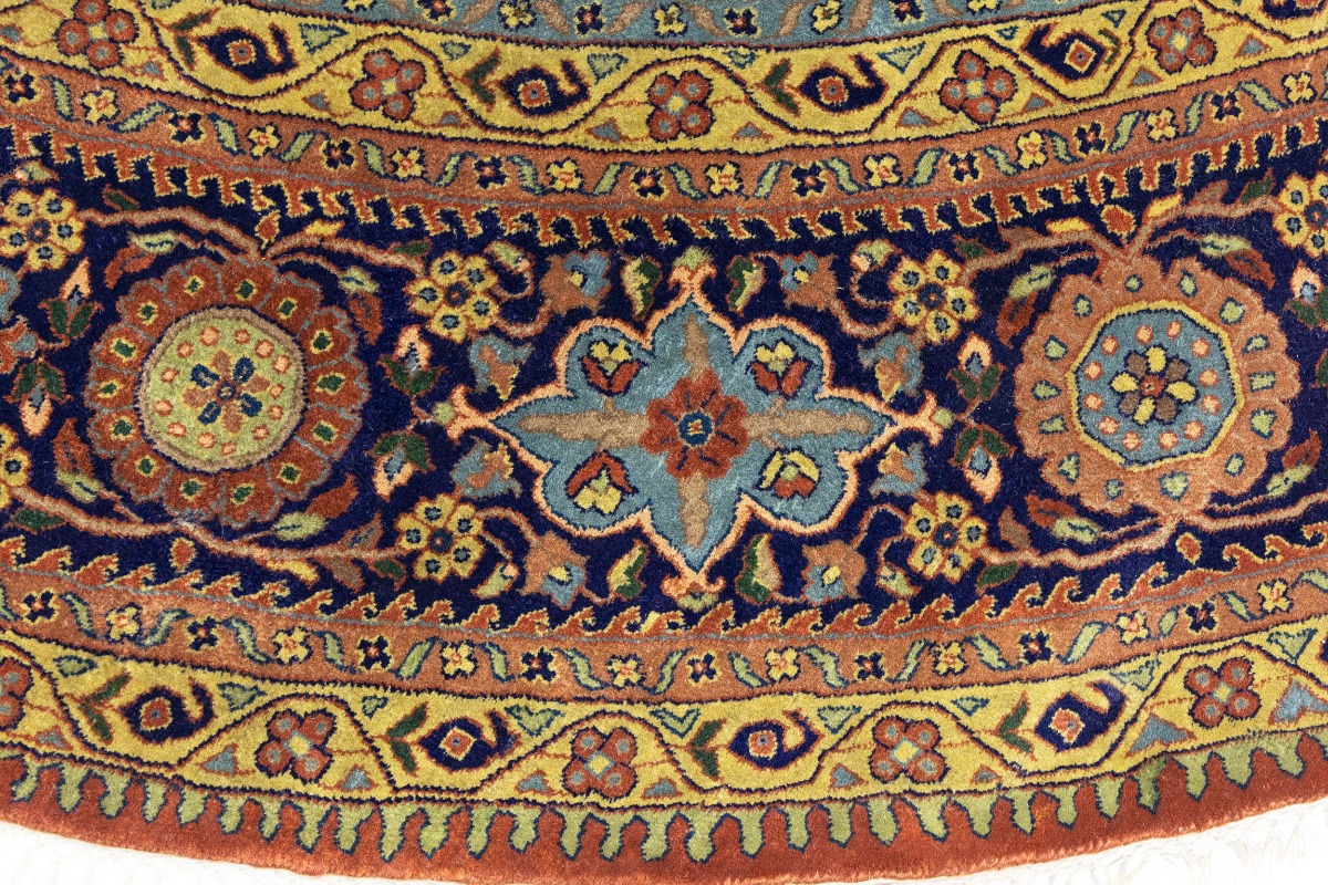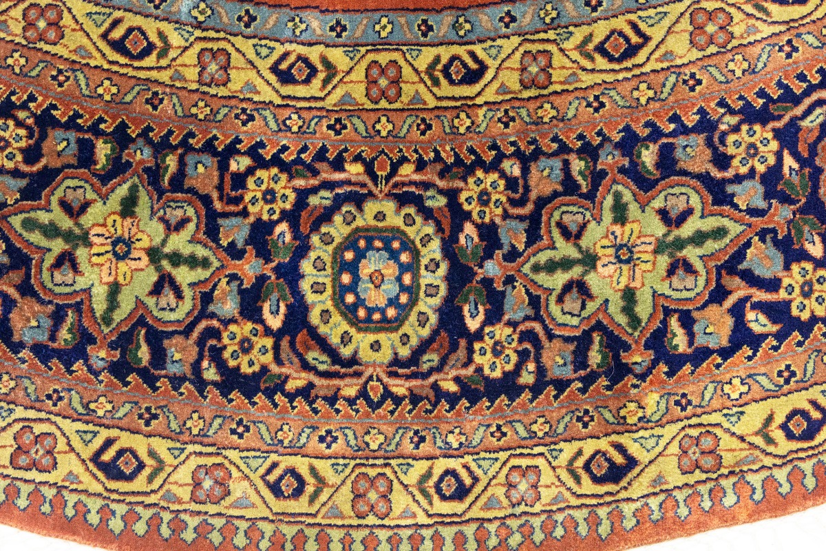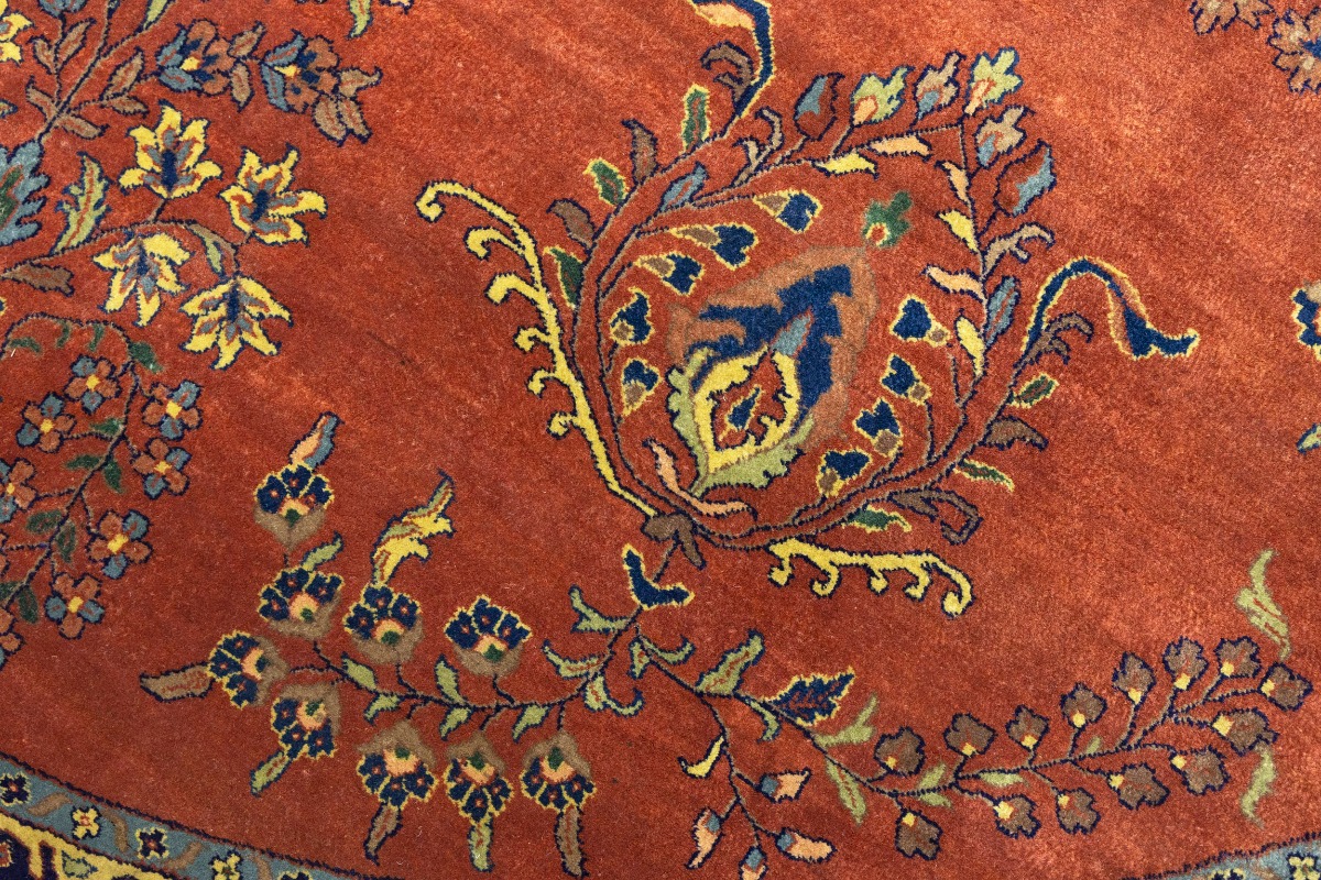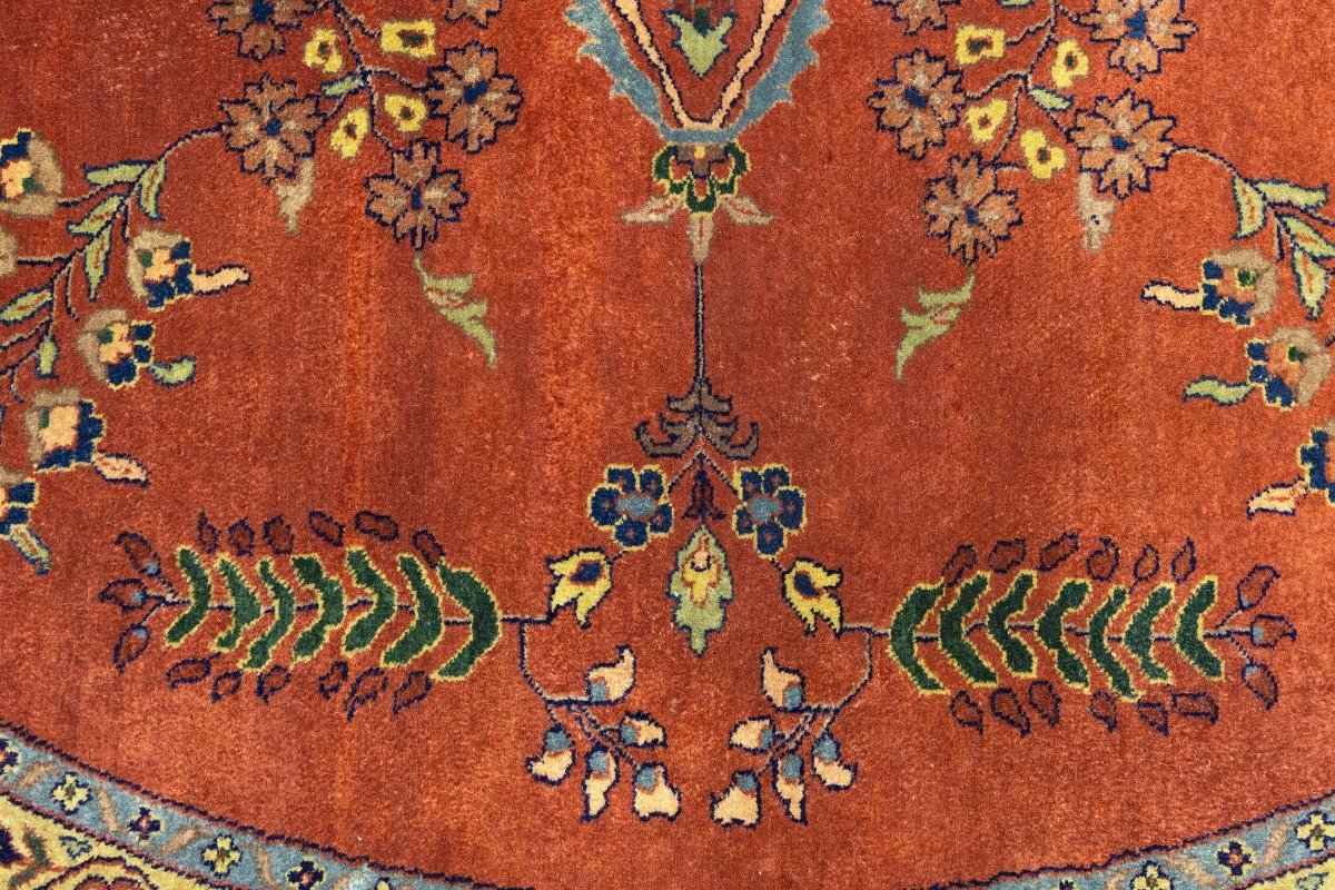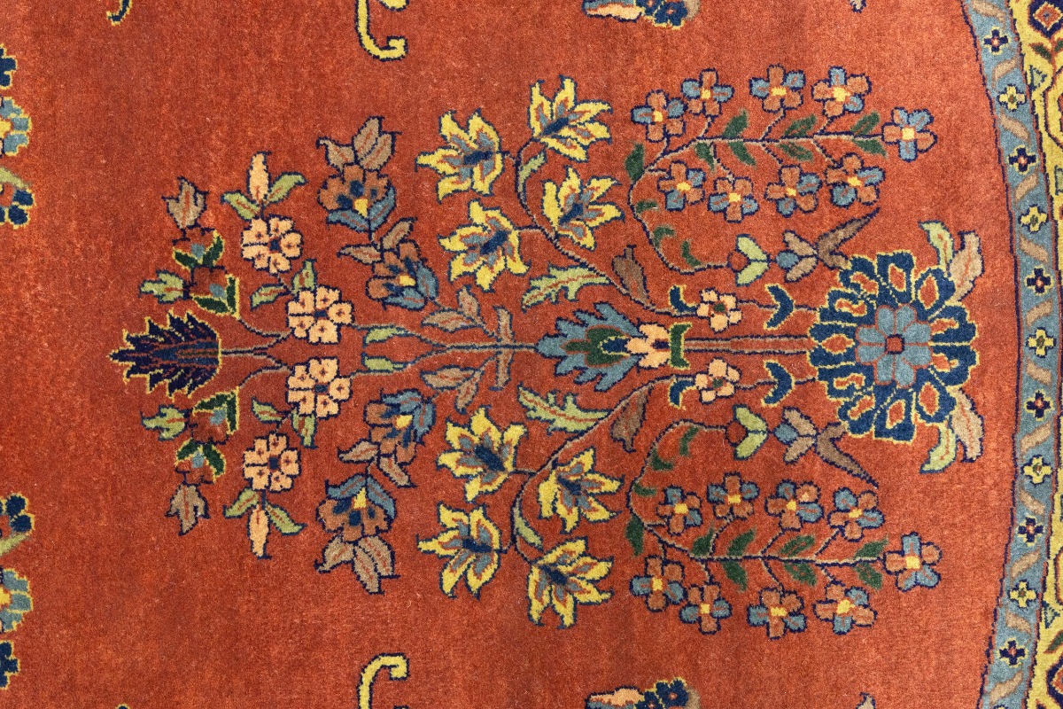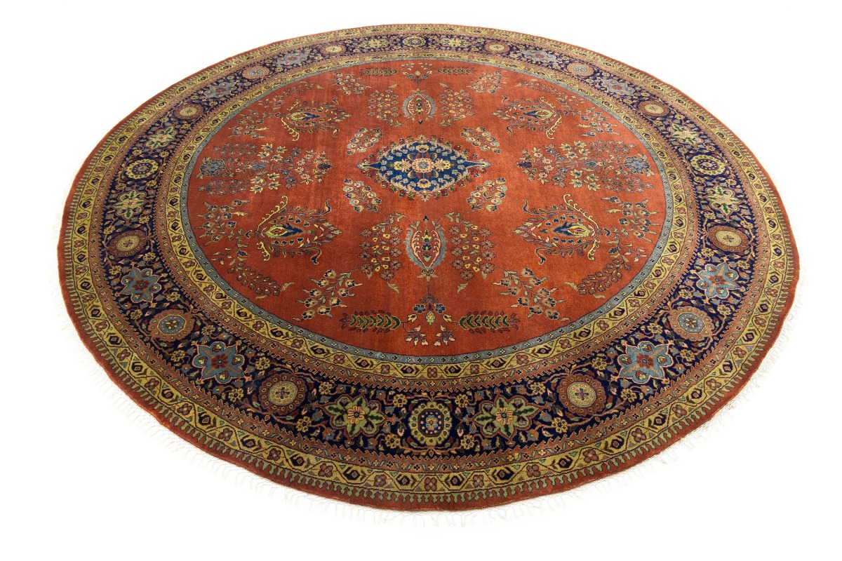 Rust Orange Floral 10X10 Indo-Sarouk Oriental Round Rug