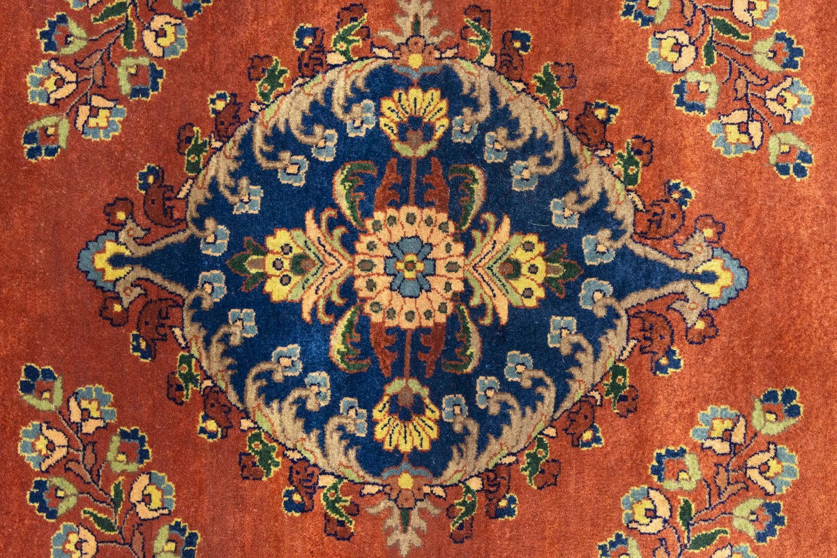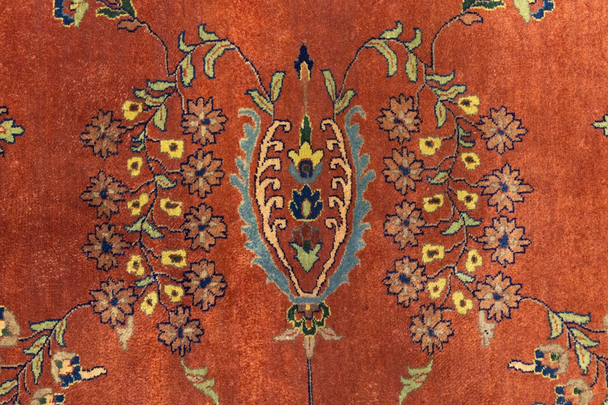 Handmade 10X10 orange oriental rug made with vegetable dyes (fine wool pile and cotton foundation), superior knot count, and alluring ancient designs. This Oriental rug never will go out of style and would be among your most valuable treasures.