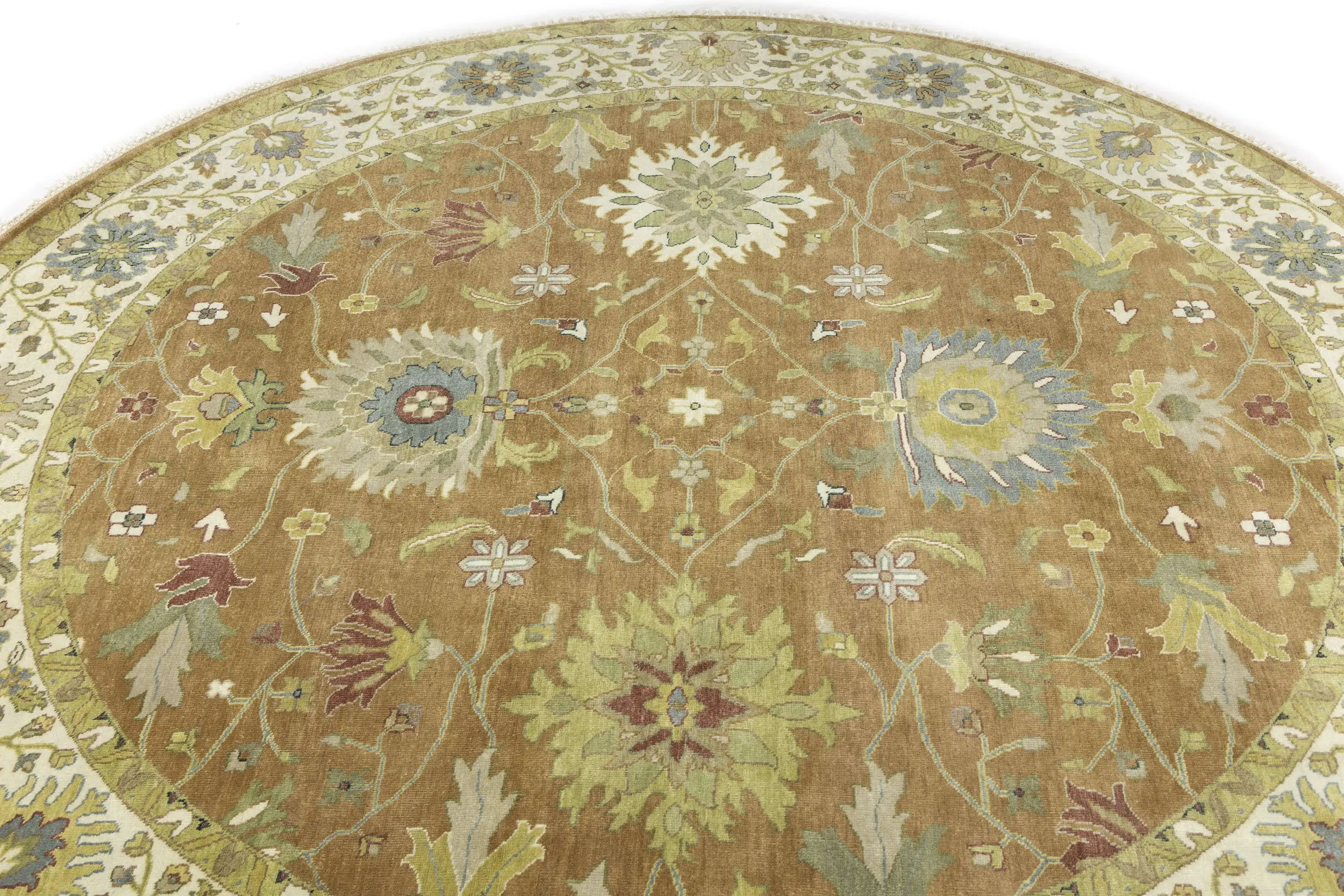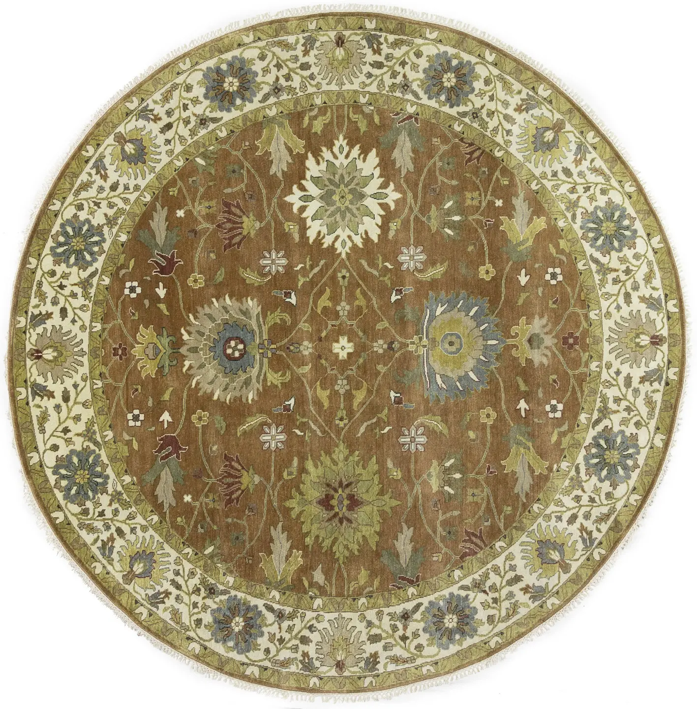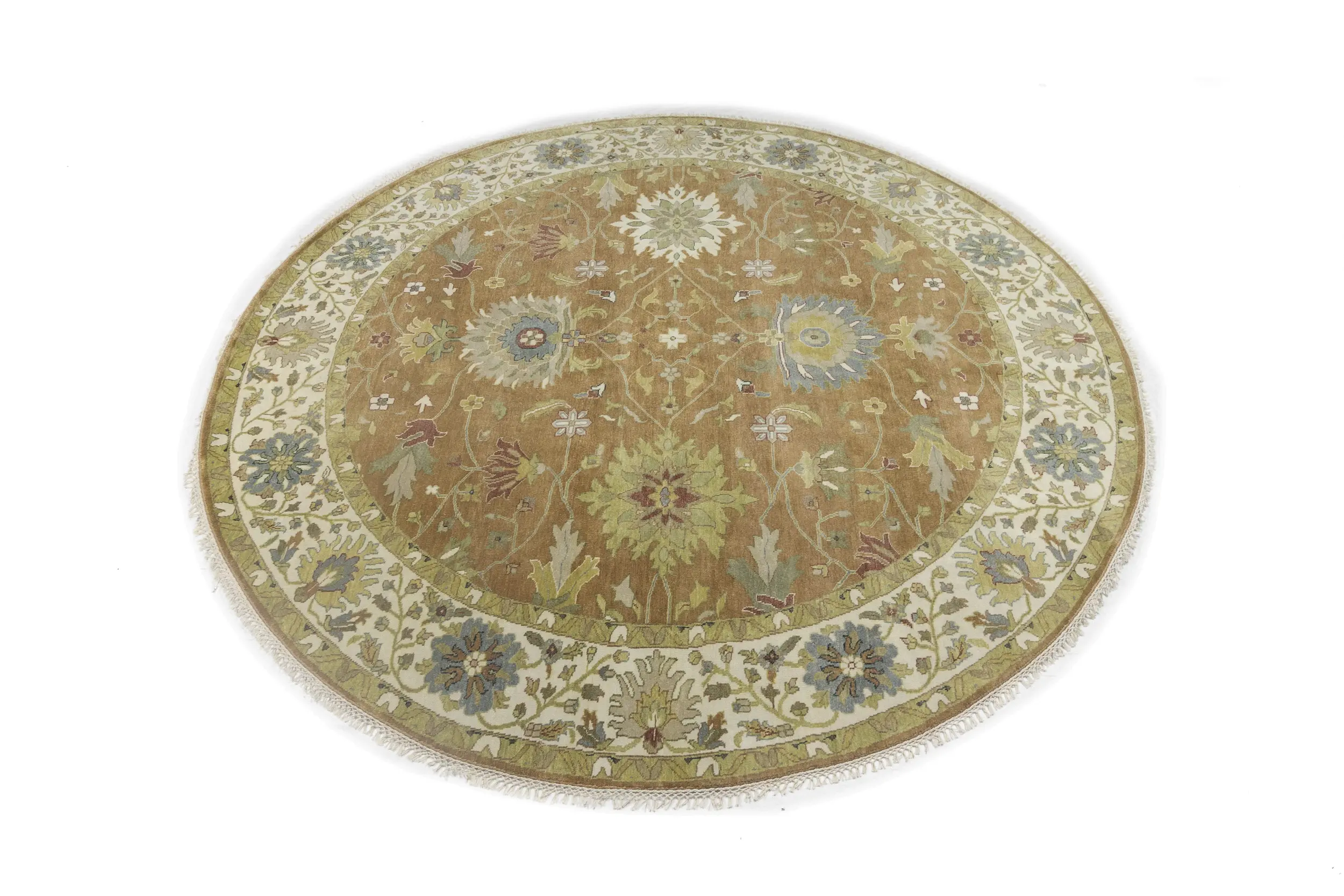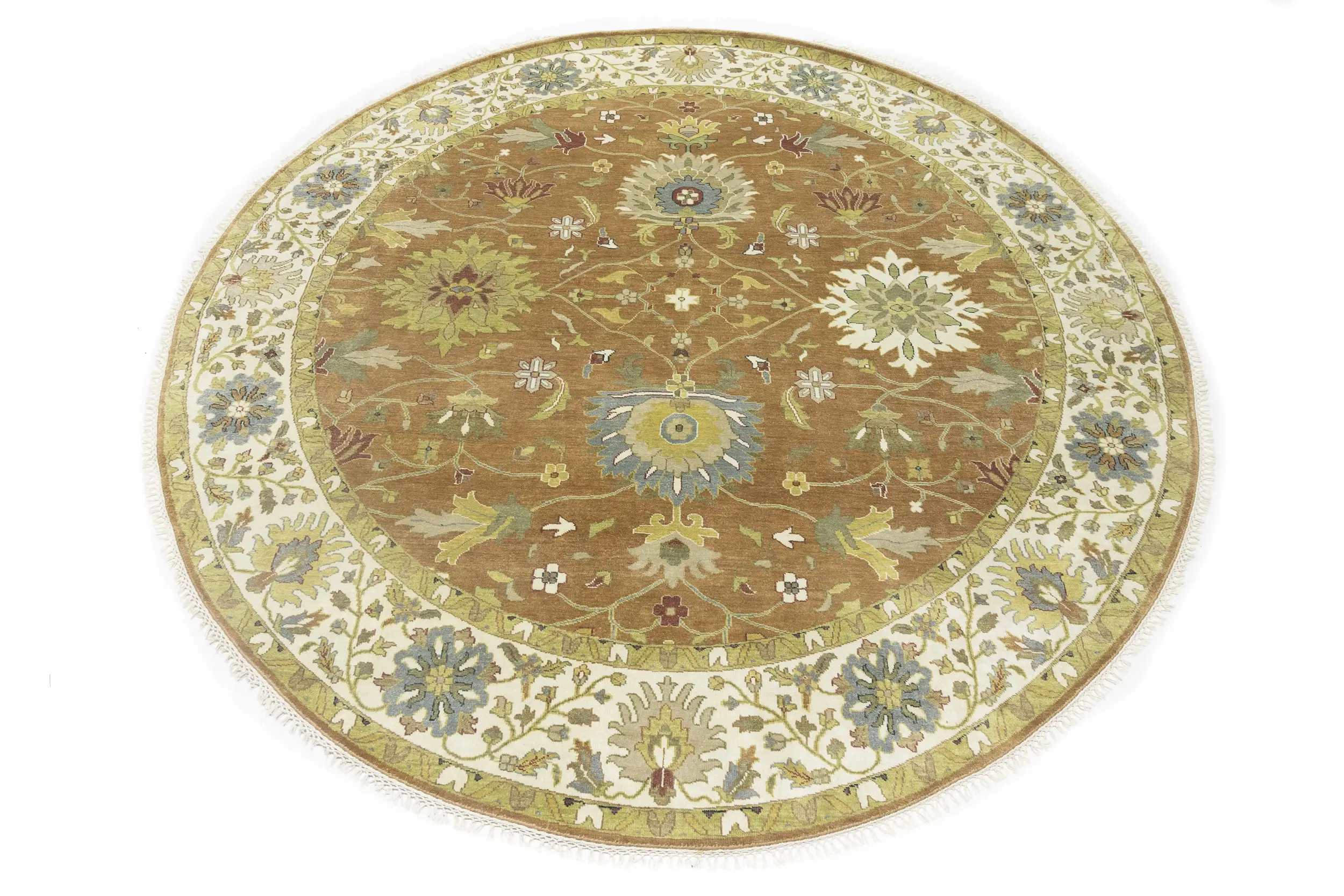 Rust Orange Floral 10X10 Osh Chobi Oriental Round Rug