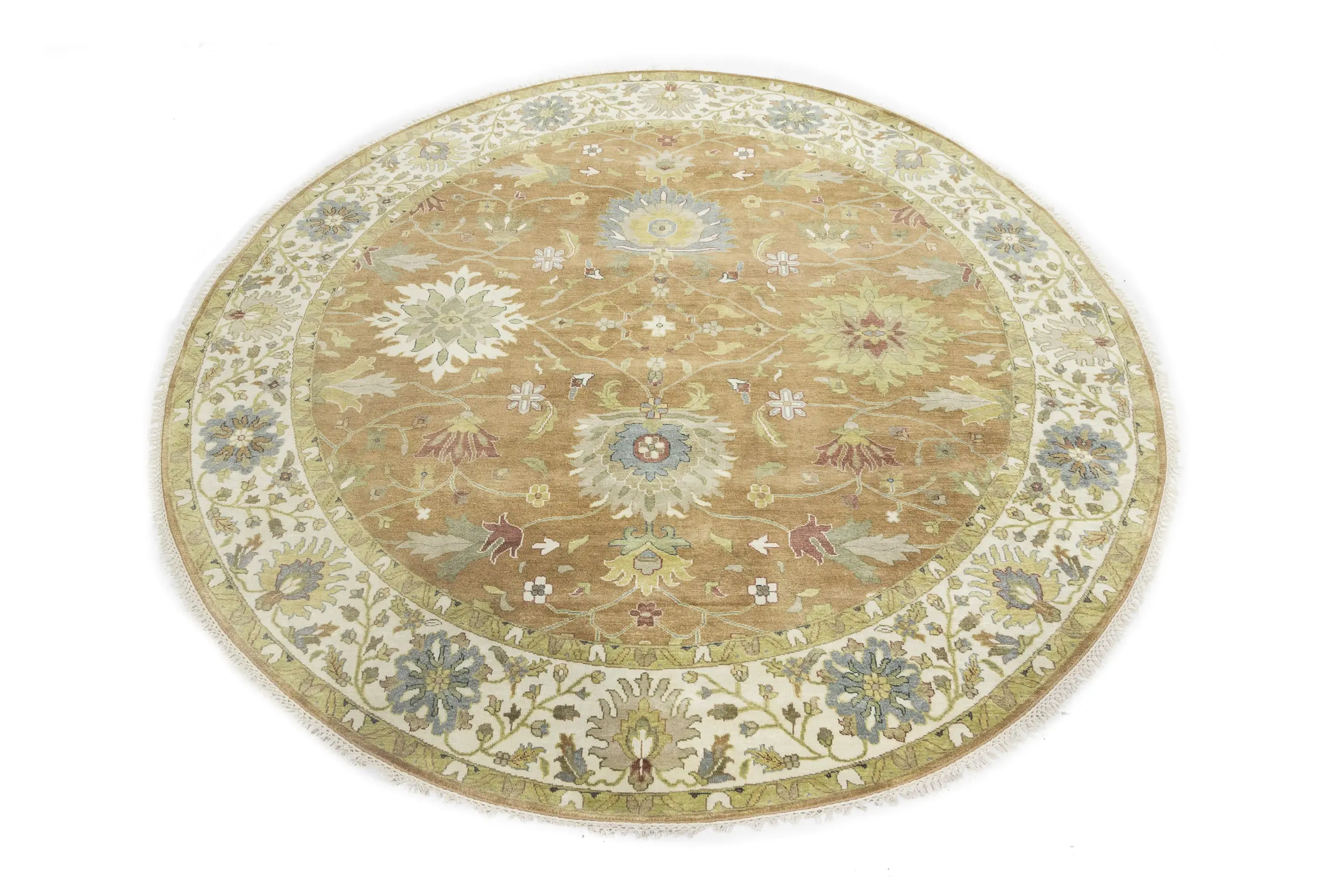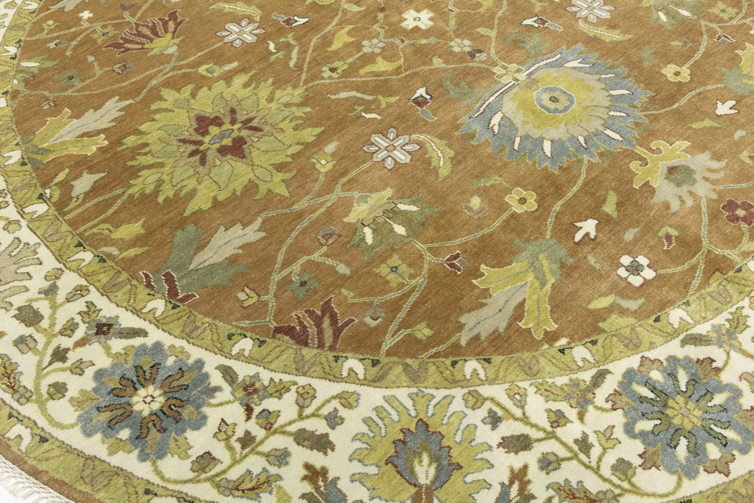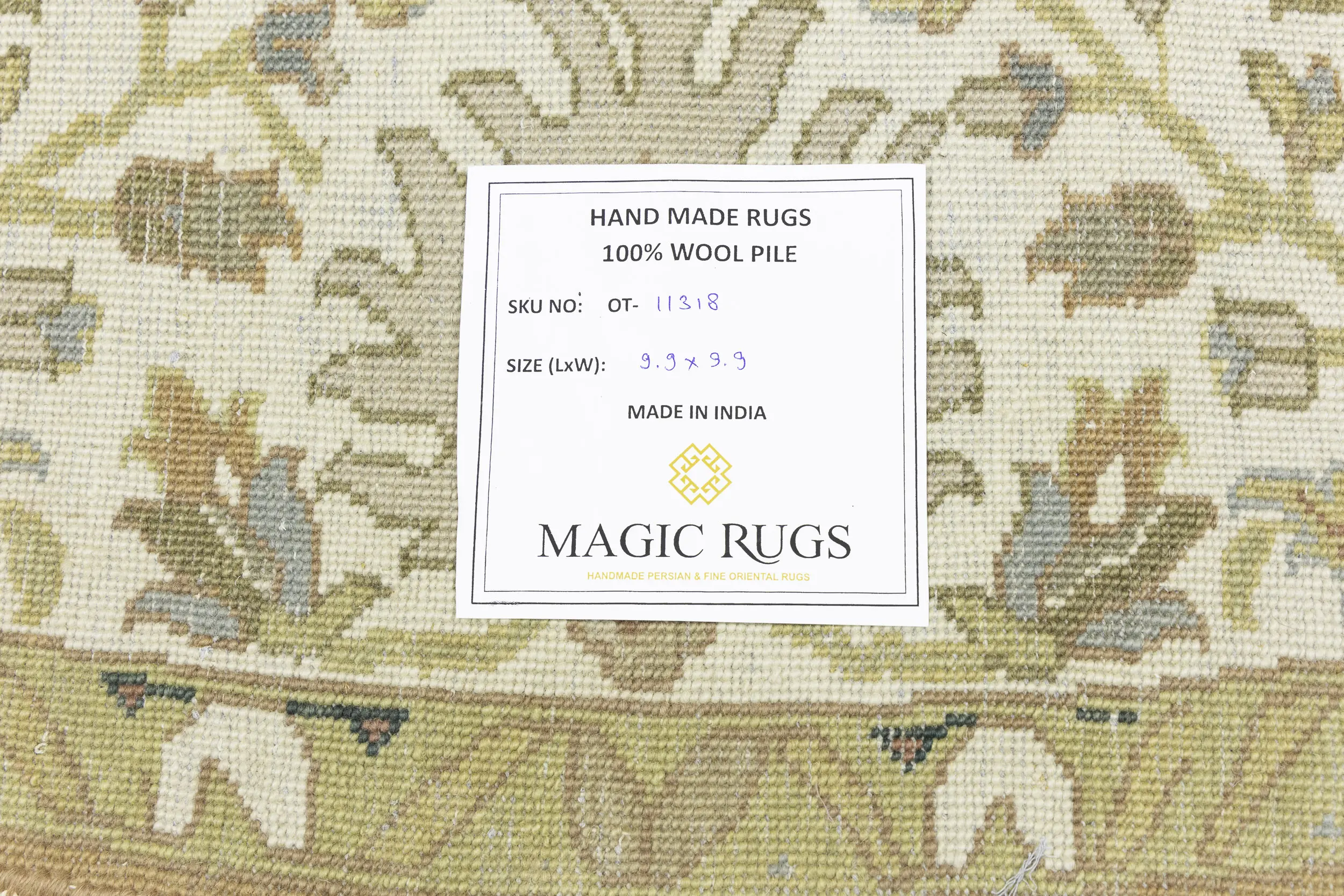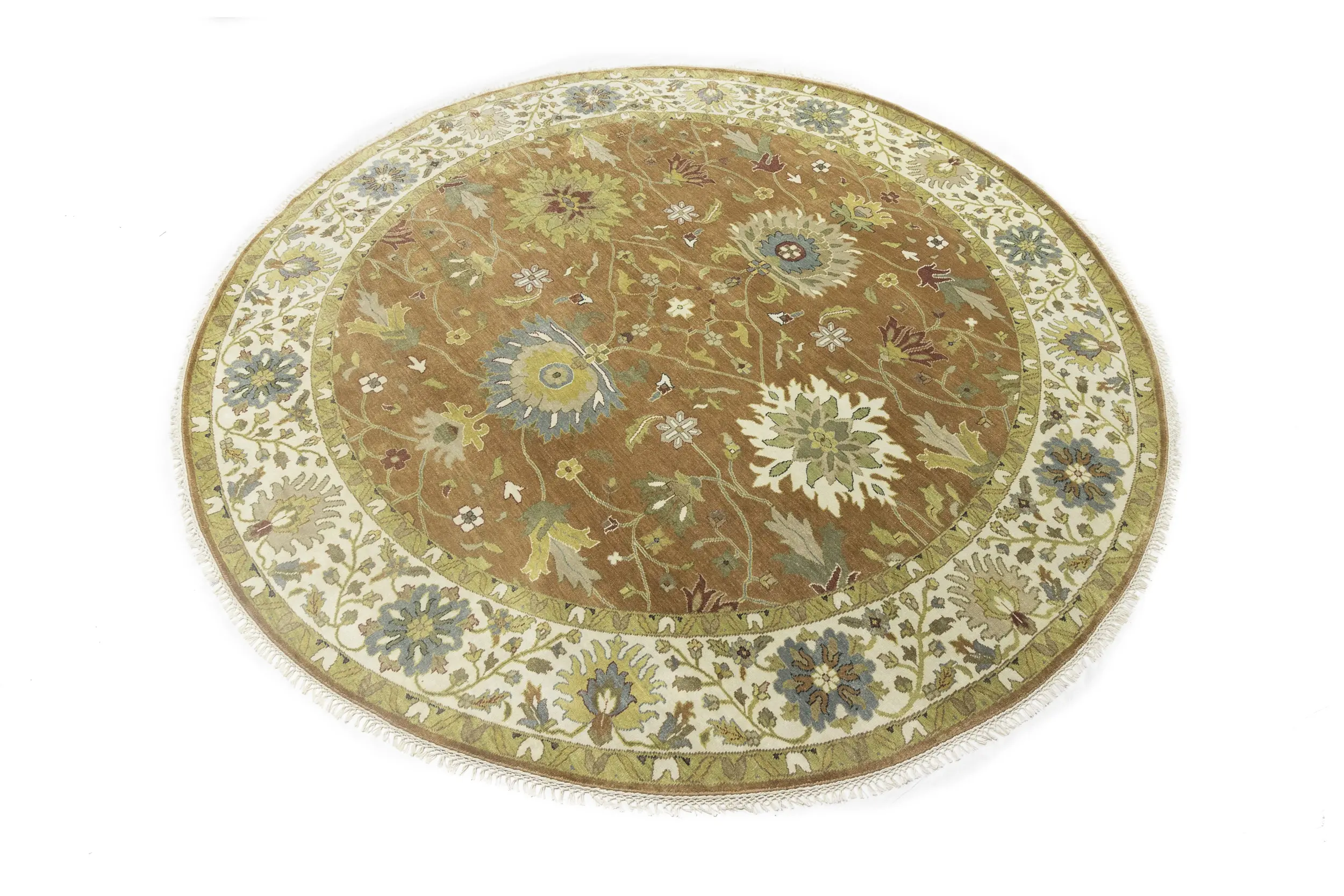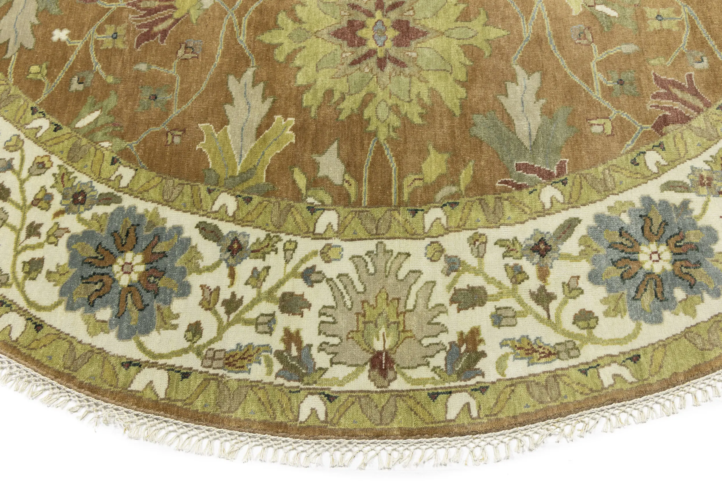 This genuine 10X10 rust new Oriental Round rug was made by the hands of gifted weavers inspired by a variety of spectacular artistic designs, to recreate the aged look of the original piece with a richness of color and ornately patterned background field. What set this vintage style Oriental area rug from the others are the material and dye used (wool pile and cotton foundation), knot count, ancient designs, fantastic grades, and its regional historical connection: it has deep roots, from the story of the people who produced it to the meaning of the symbols and colors displayed across its canvas that have been praised for centuries. This Indian home décor carpet will be completely cozy and inviting that never will go out of style! Also, this Oriental rug would be among your most valuable treasures, it is a great investment that accrues value over time, and it will last for generations because was woven with high-quality, all-natural wool. Environmentally friendly, opulent yet affordable; this rug will give you a thorough amount of character to help define your living space with elegance and warmth that will capture the eyes and attention of your audience (homeowners, designers, decorators, family and friends). OT-11318