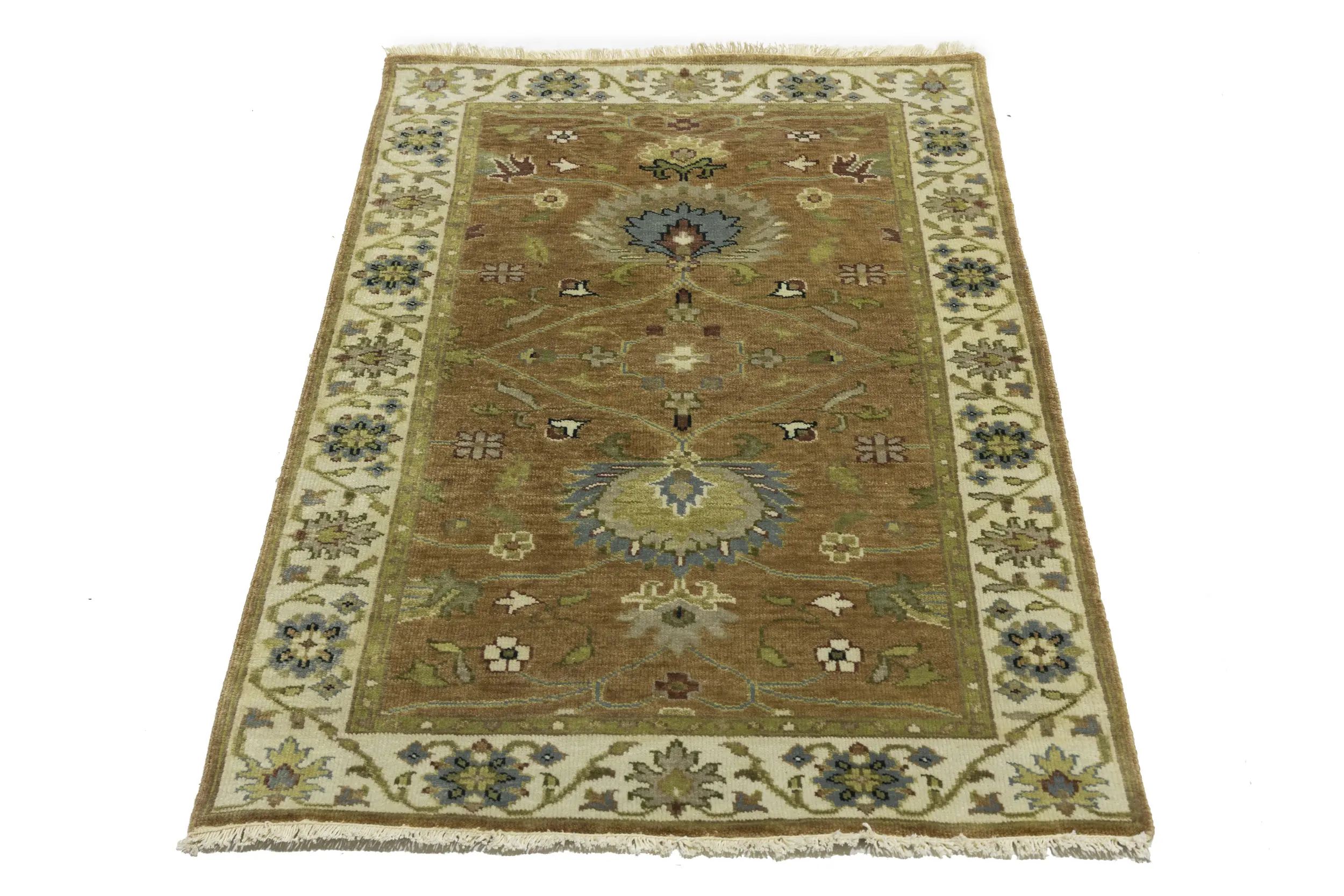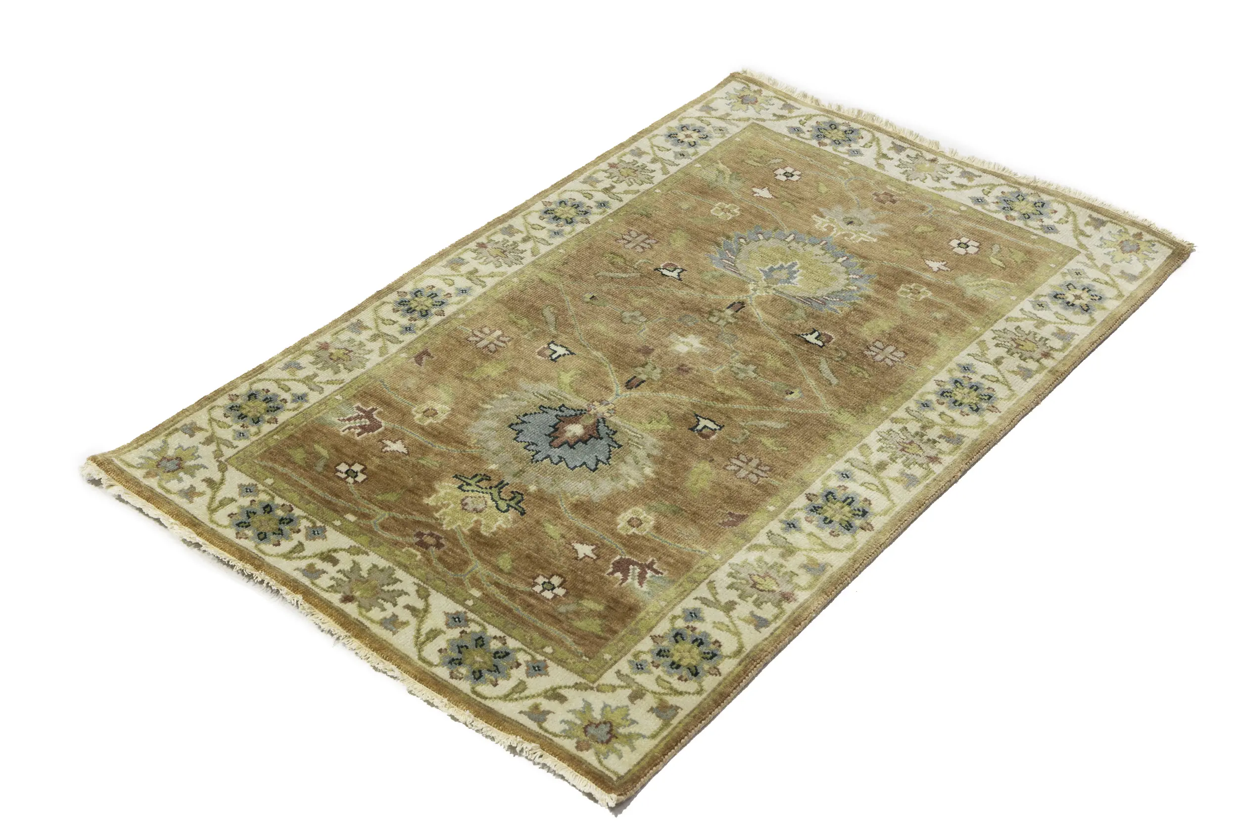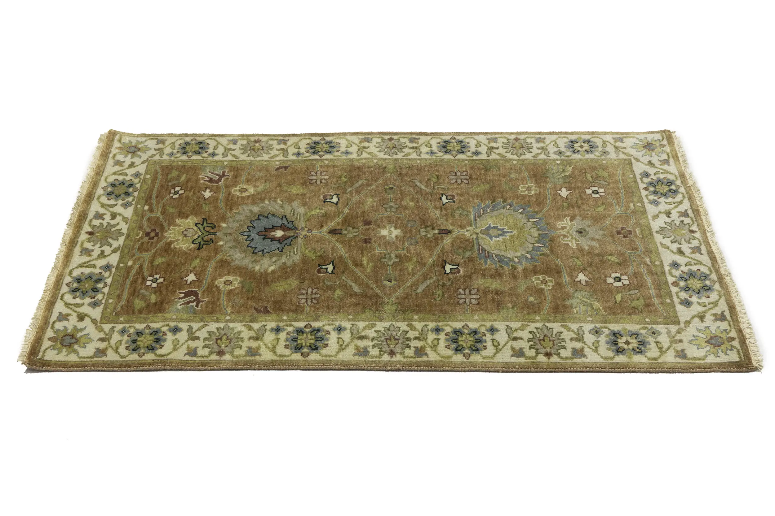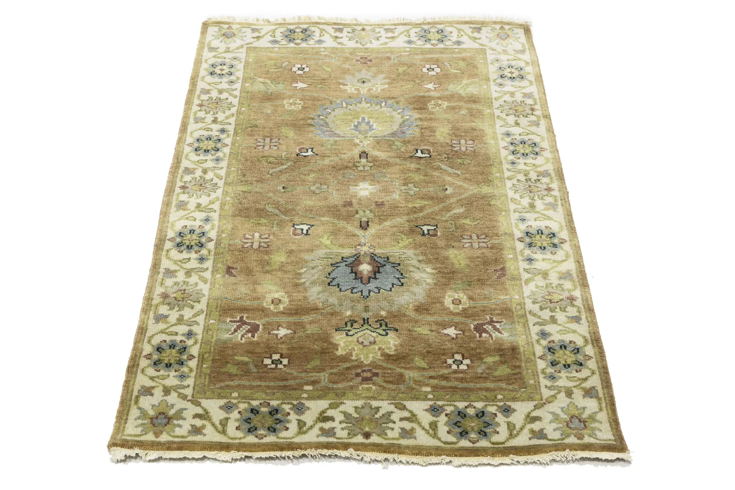 This genuine 3x5 new Oriental rug was made by the hands of gifted weavers inspired by a variety of spectacular artistic designs, to recreate the aged look of the original piece with a richness of color and ornately patterned background field. What set this vintage style Oriental area rug from the others are the material and dye used (wool pile and cotton foundation), knot count, ancient designs, fantastic grades, and its regional historical connection: it has deep roots, from the story of the people who produced it to the meaning of the symbols and colors displayed across its canvas that have been praised for centuries. This Indian home décor carpet will be completely cozy and inviting that never will go out of style! Also, this Oriental rug would be among your most valuable treasures, it is a great investment that accrues value over time, and it will last for generations because was woven with high-quality, all-natural wool. Environmentally friendly, opulent yet affordable; this rug will give you a thorough amount of character to help define your living space with elegance and warmth that will capture the eyes and attention of your audience (homeowners, designers, decorators, family and friends). OT-11312