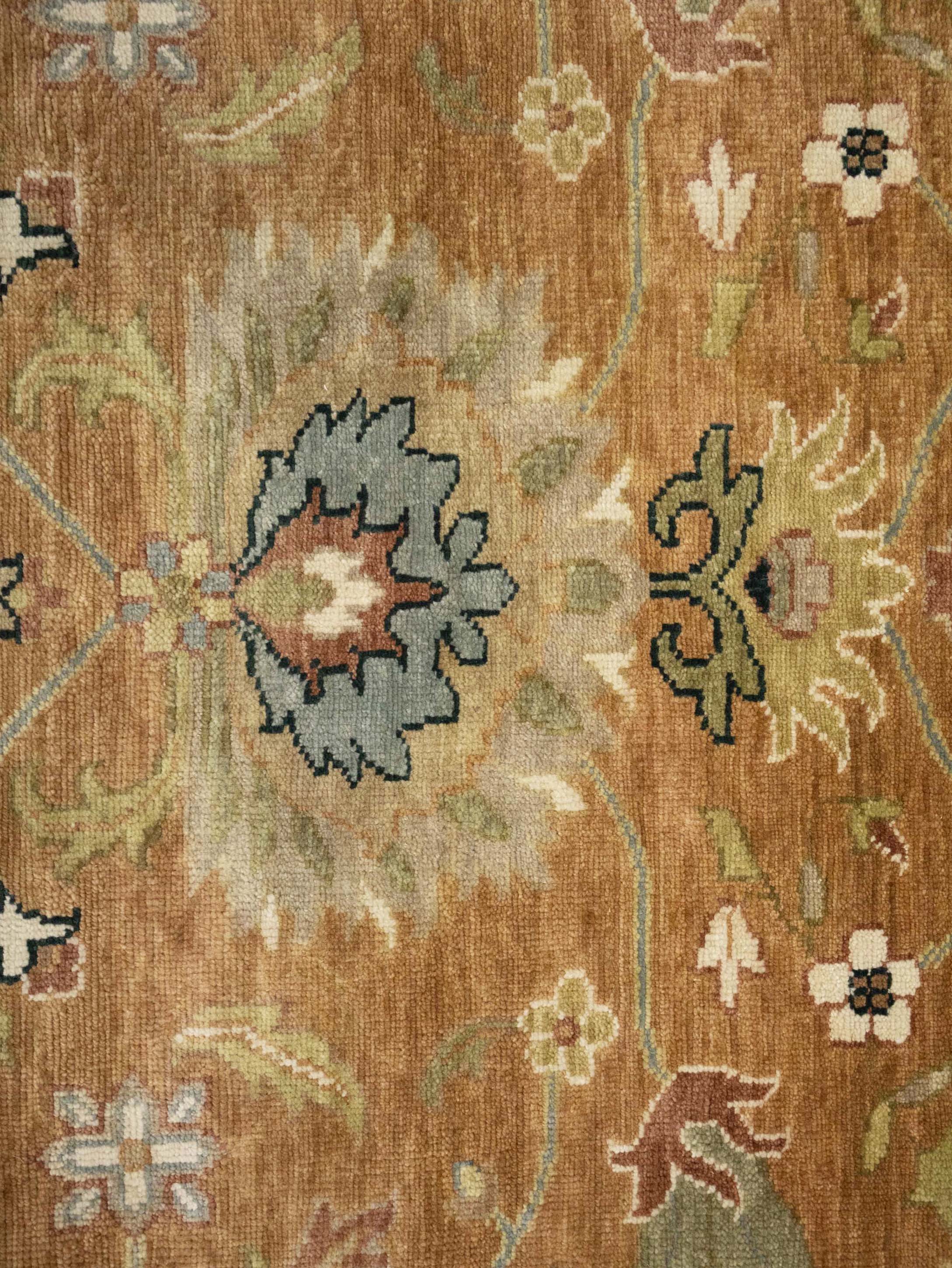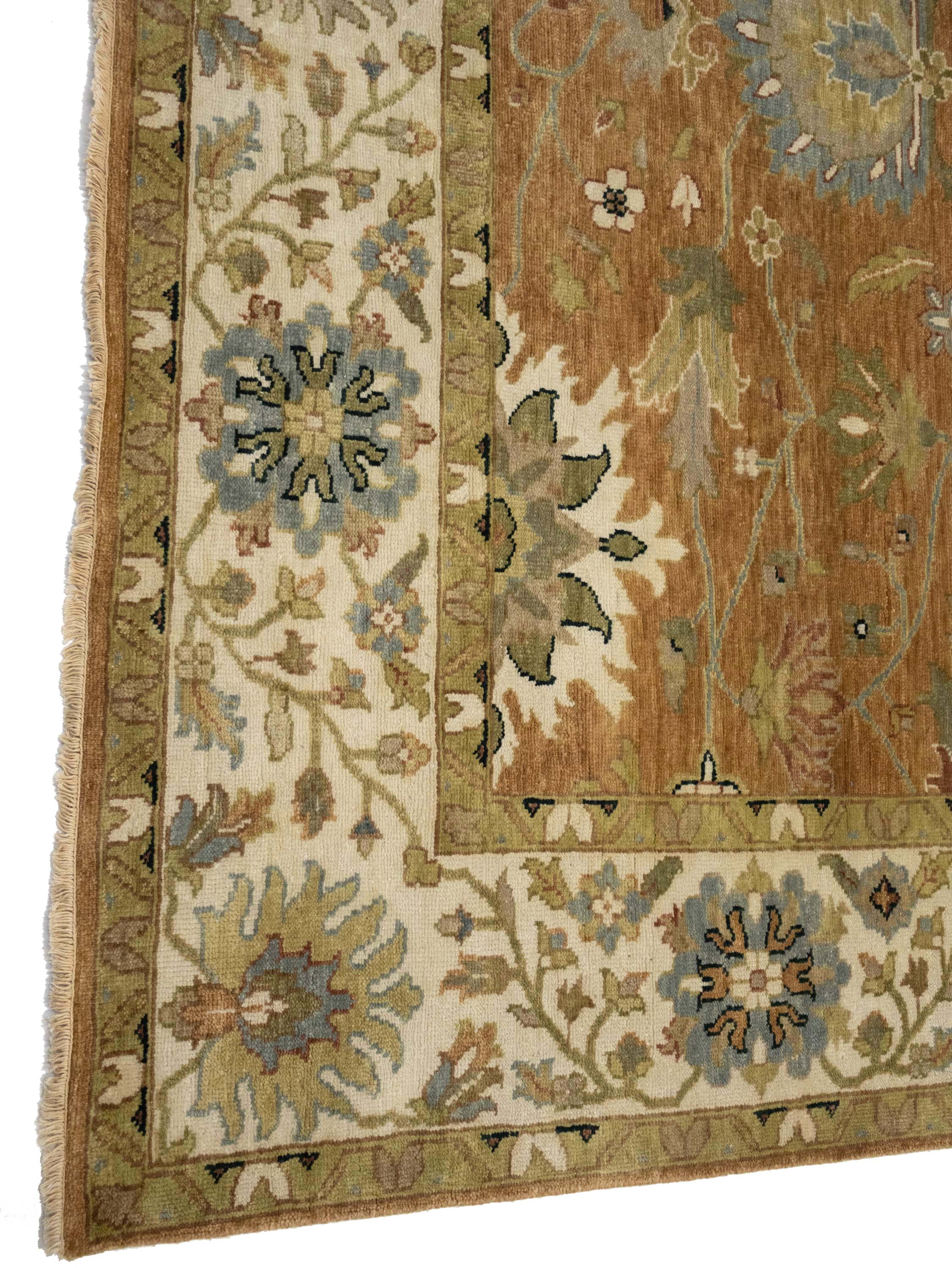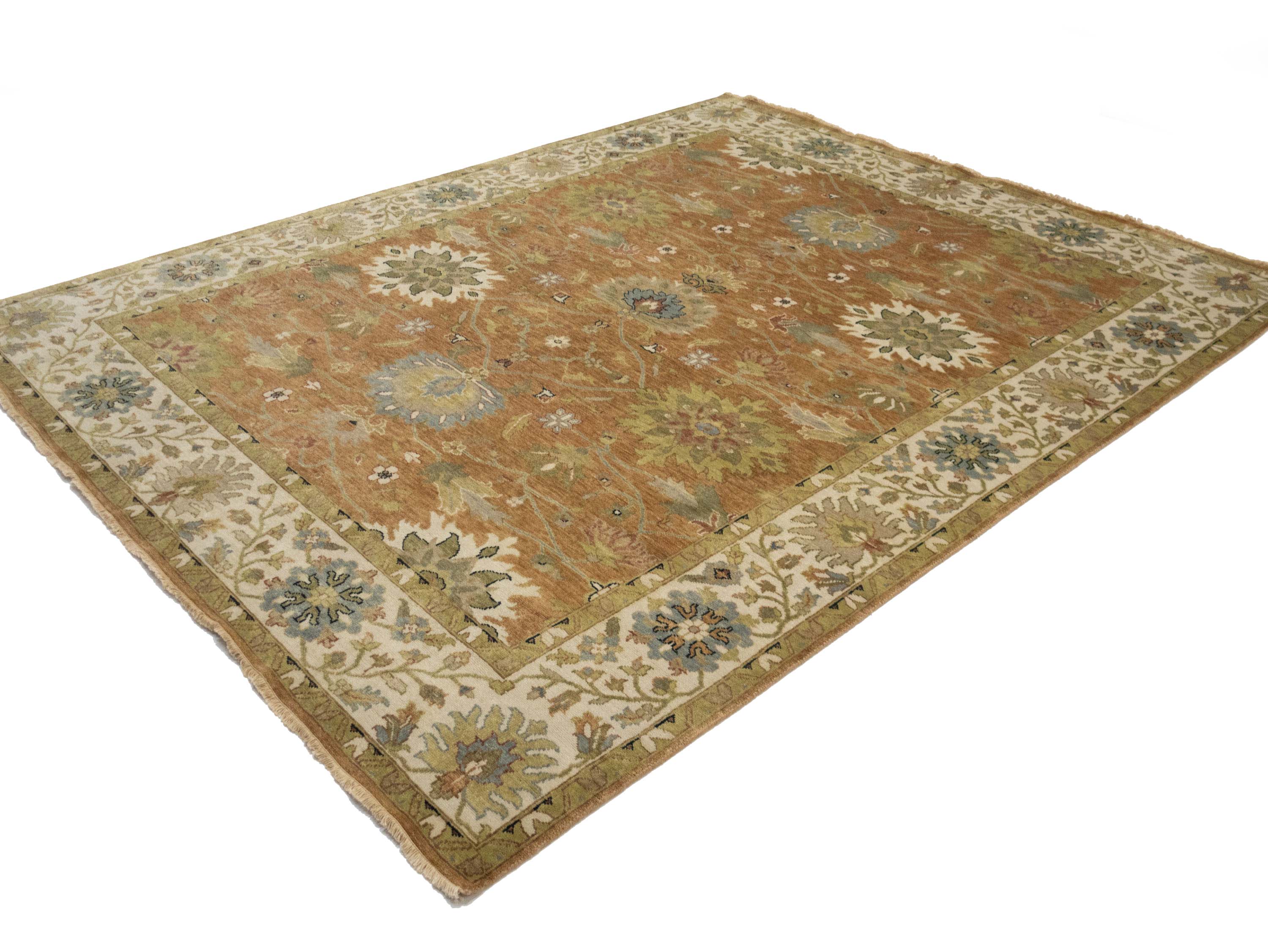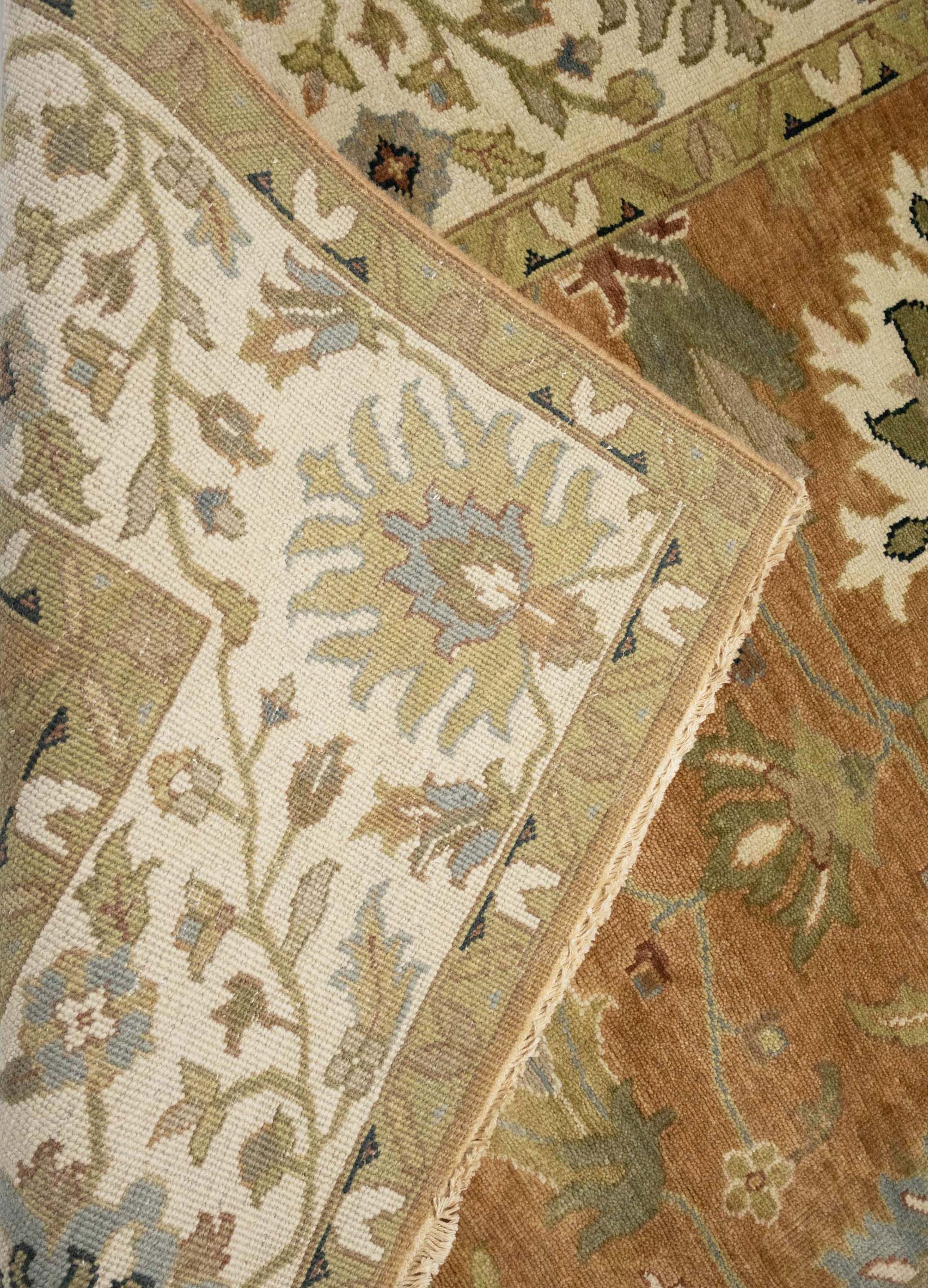 This genuine 8x10 Rust new Oriental rug was made by the hands of gifted weavers inspired by a variety of spectacular artistic designs, to recreate the aged look of the original piece with a richness of color and ornately patterned background field. What set this vintage style Oriental area rug from the others are the material and dye used (wool pile and cotton foundation), knot count, ancient designs, fantastic grades, and its regional historical connection: it has deep roots, from the story of the people who produced it to the meaning of the symbols and colors displayed across its canvas that have been praised for centuries. This Indian home décor carpet will be completely cozy and inviting that never will go out of style! Also, this Oriental rug would be among your most valuable treasures, it is a great investment that accrues value over time, and it will last for generations because was woven with high-quality, all-natural wool. Environmentally friendly, opulent yet affordable; this rug will give you a thorough amount of character to help define your living space with elegance and warmth that will capture the eyes and attention of your audience (homeowners, designers, decorators, family and friends). OT-11305