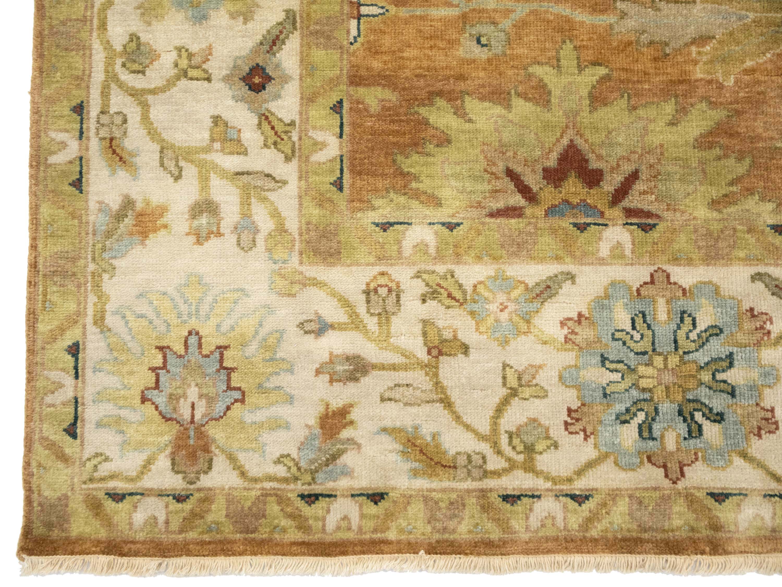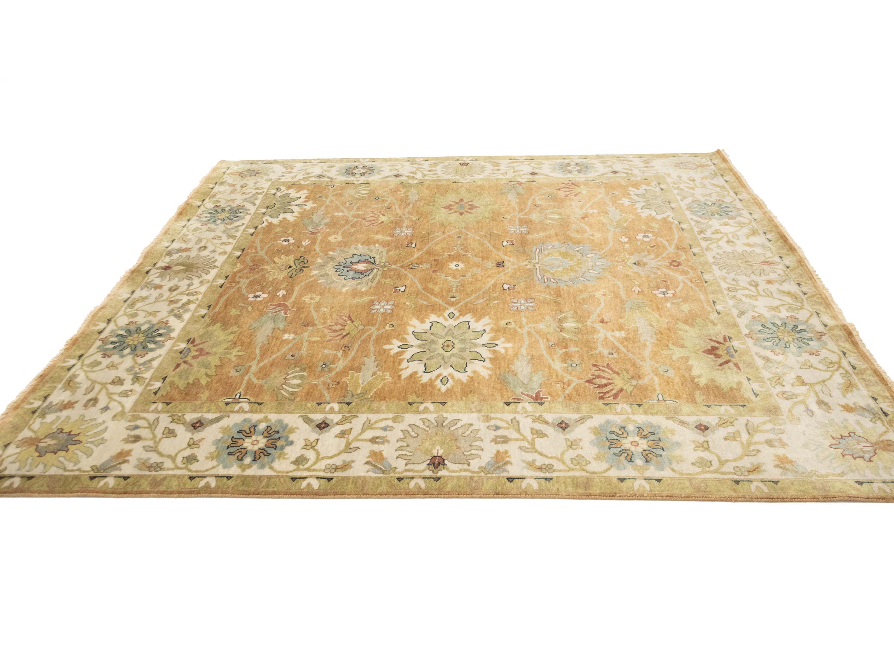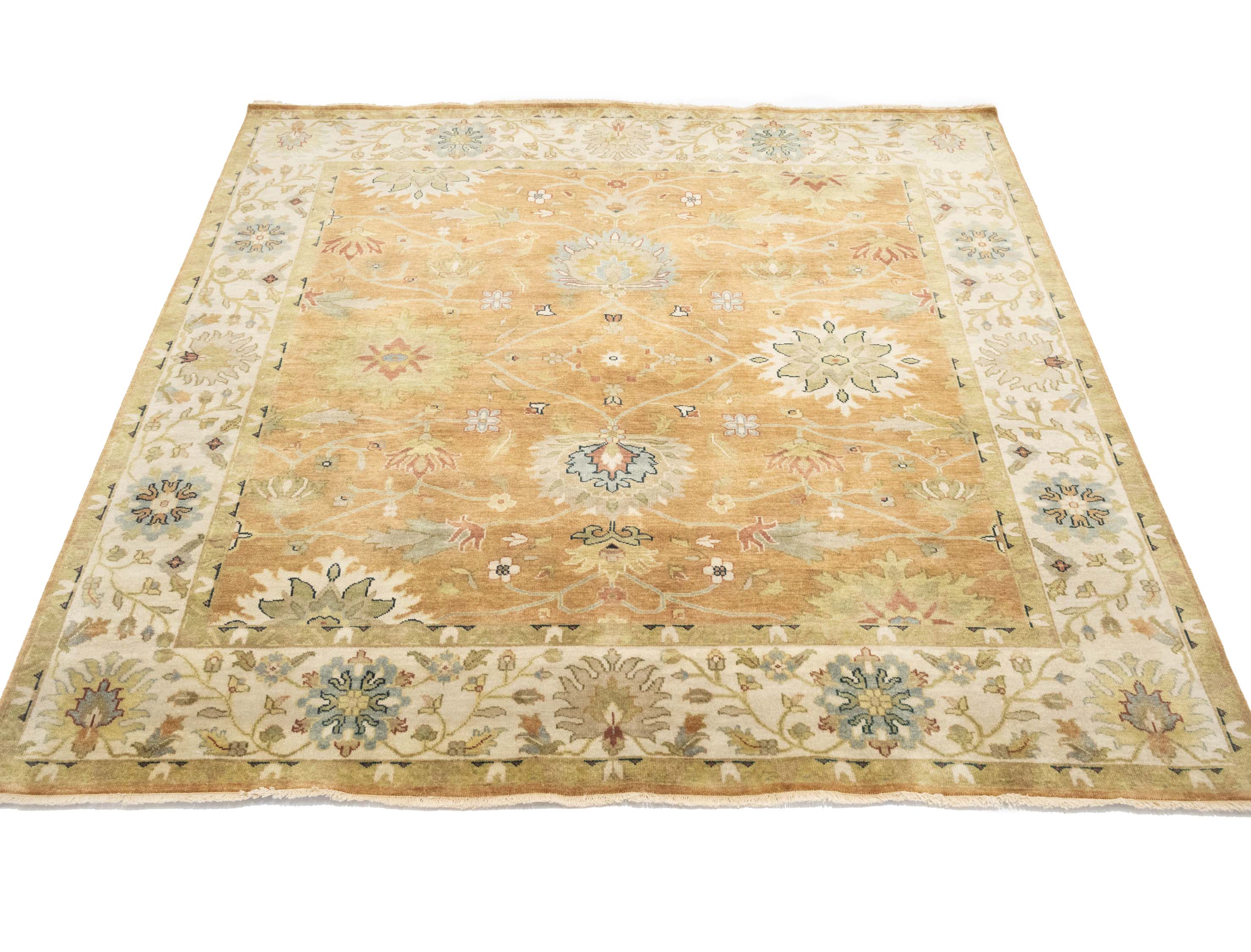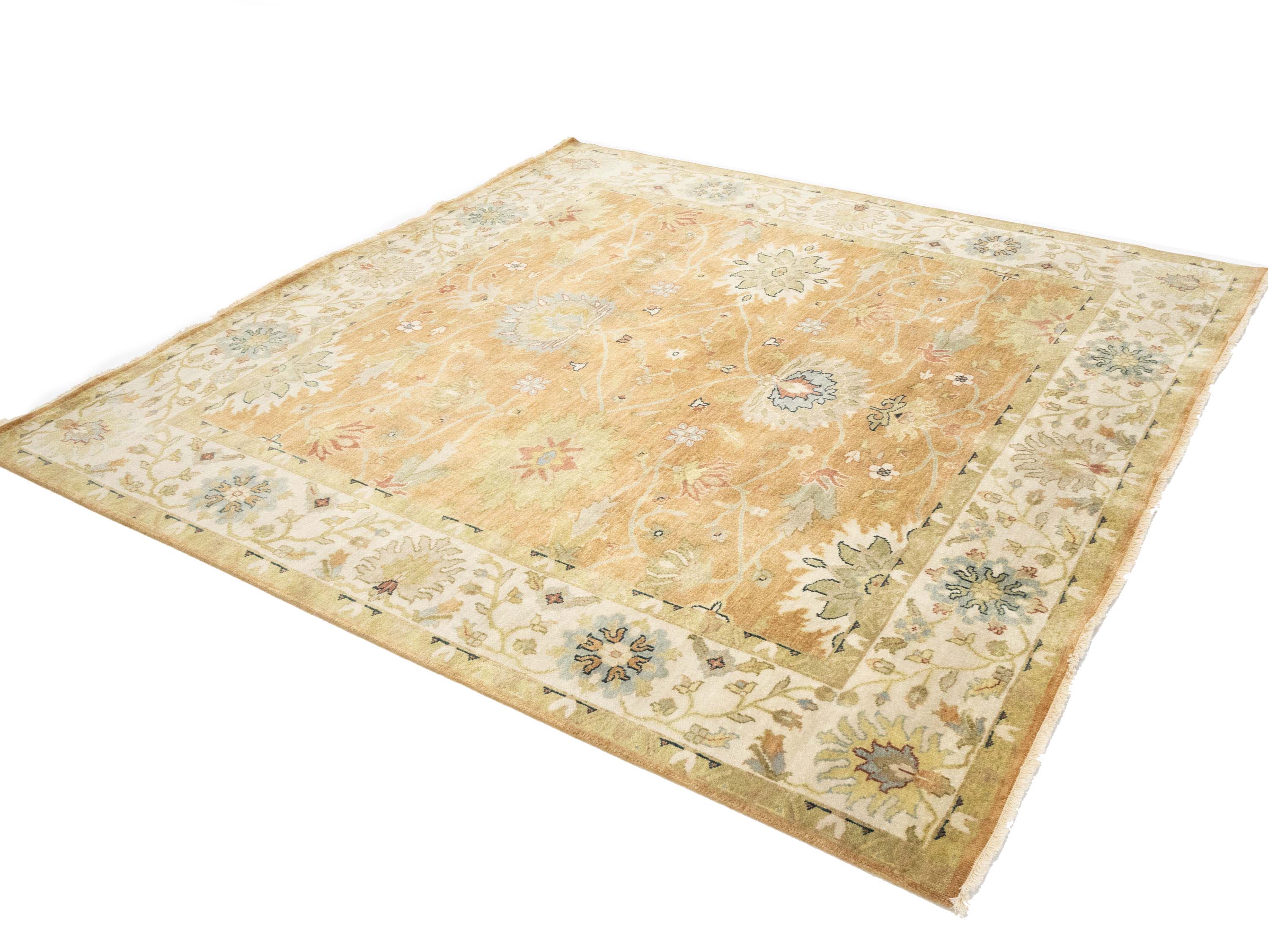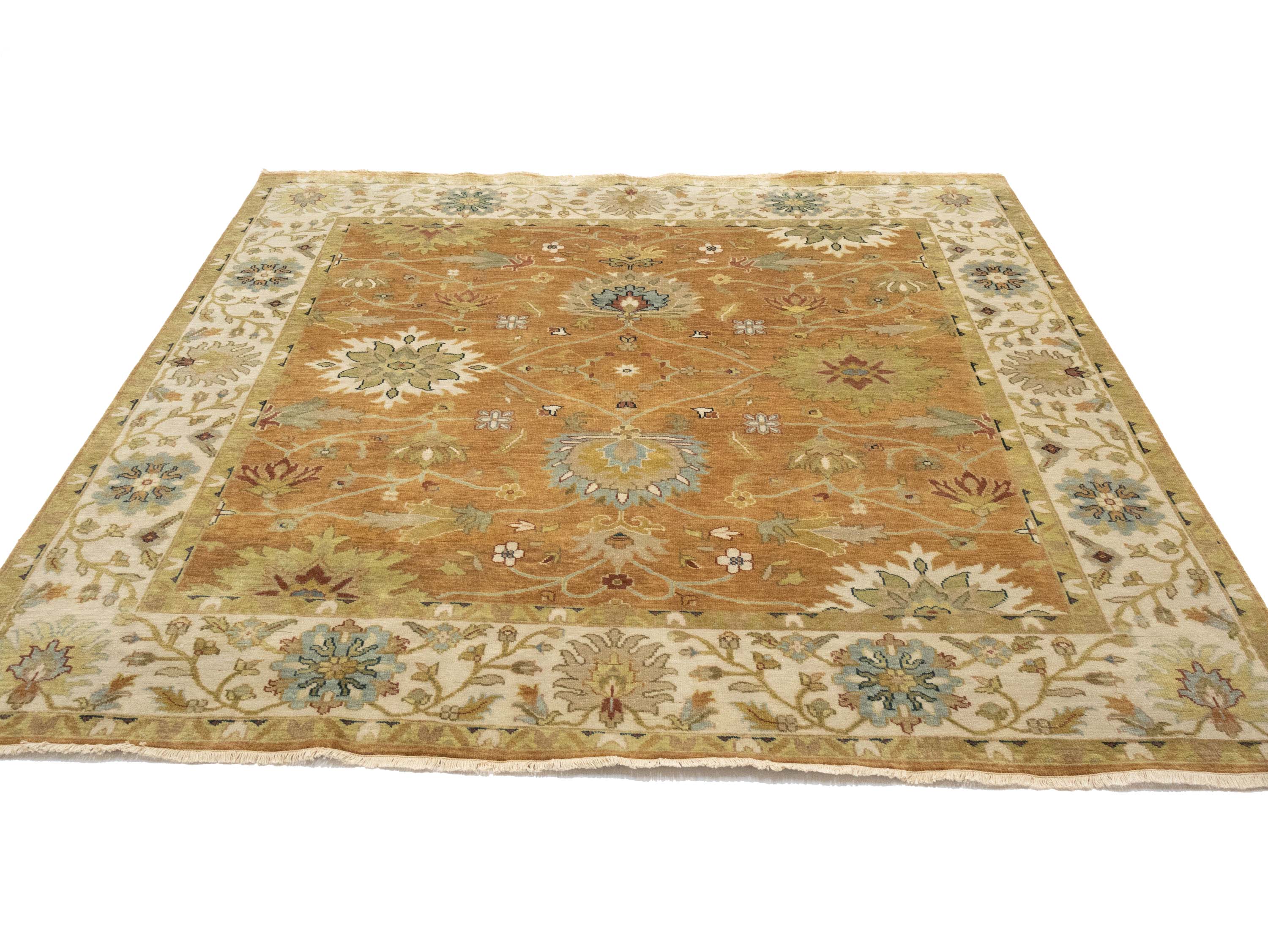 This genuine 8X8 rust new Oriental Square rug was made by the hands of gifted weavers inspired by a variety of spectacular artistic designs, to recreate the aged look of the original piece with a richness of color and ornately patterned background field. What set this vintage style Oriental area rug from the others are the material and dye used (wool pile and cotton foundation), knot count, ancient designs, fantastic grades, and its regional historical connection: it has deep roots, from the story of the people who produced it to the meaning of the symbols and colors displayed across its canvas that have been praised for centuries. This Indian home décor carpet will be completely cozy and inviting that never will go out of style! Also, this Oriental rug would be among your most valuable treasures, it is a great investment that accrues value over time, and it will last for generations because was woven with high-quality, all-natural wool. Environmentally friendly, opulent yet affordable; this rug will give you a thorough amount of character to help define your living space with elegance and warmth that will capture the eyes and attention of your audience (homeowners, designers, decorators, family and friends). OT-11317