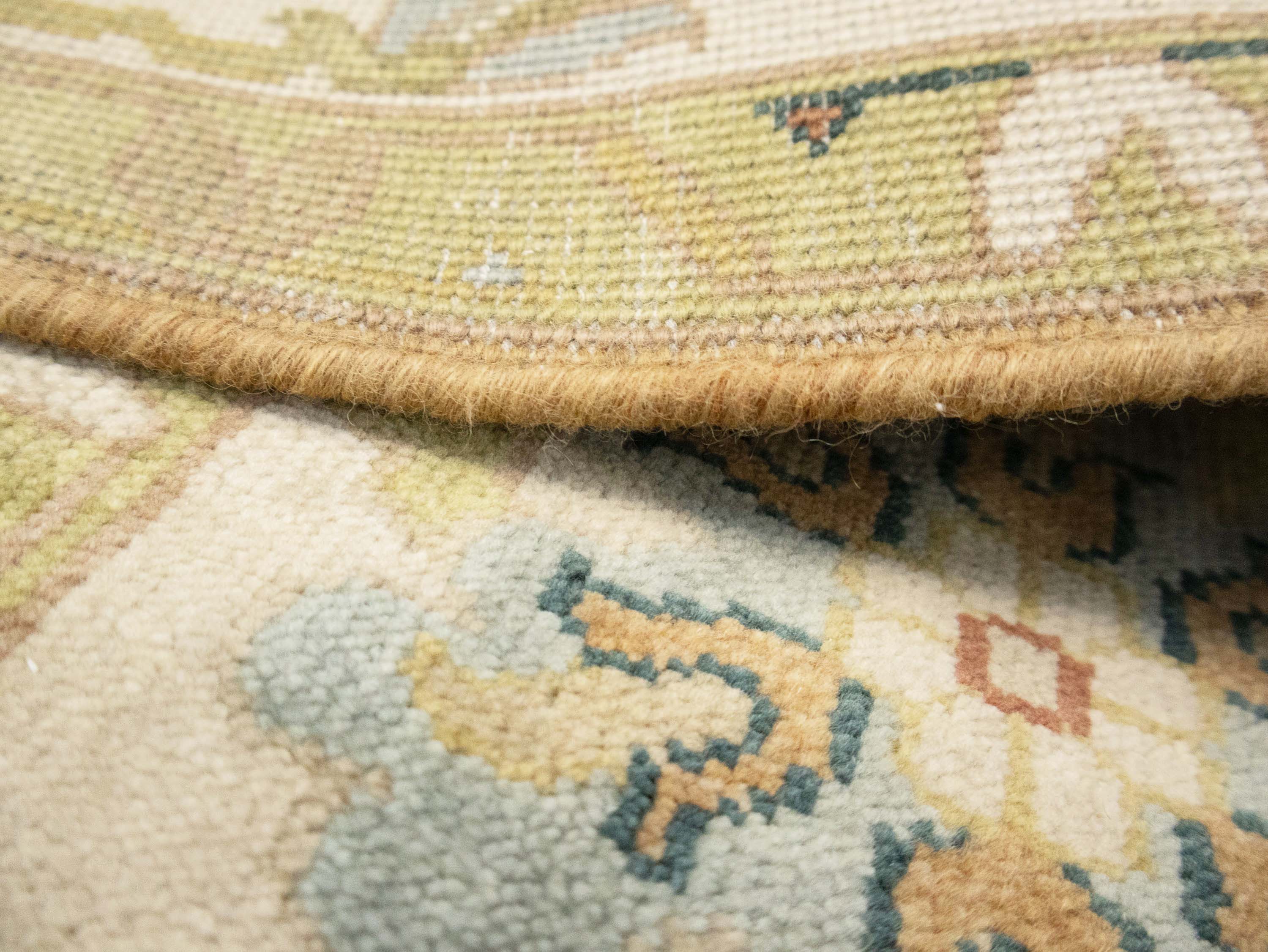 - Hand-knotted rug crafted in India using traditional weaving methods