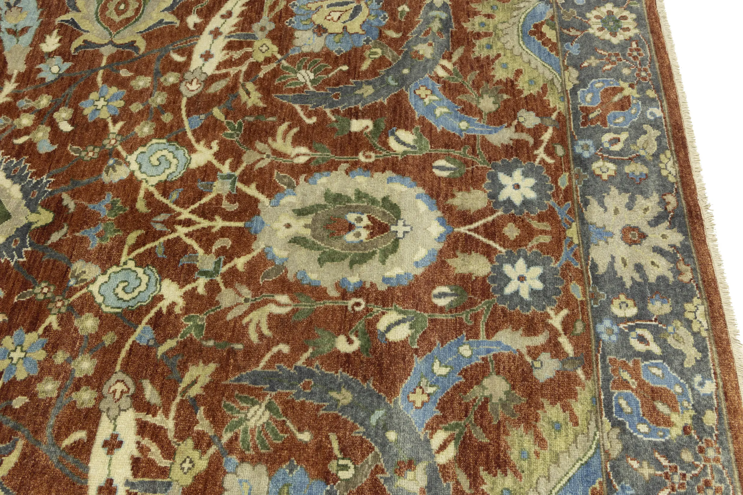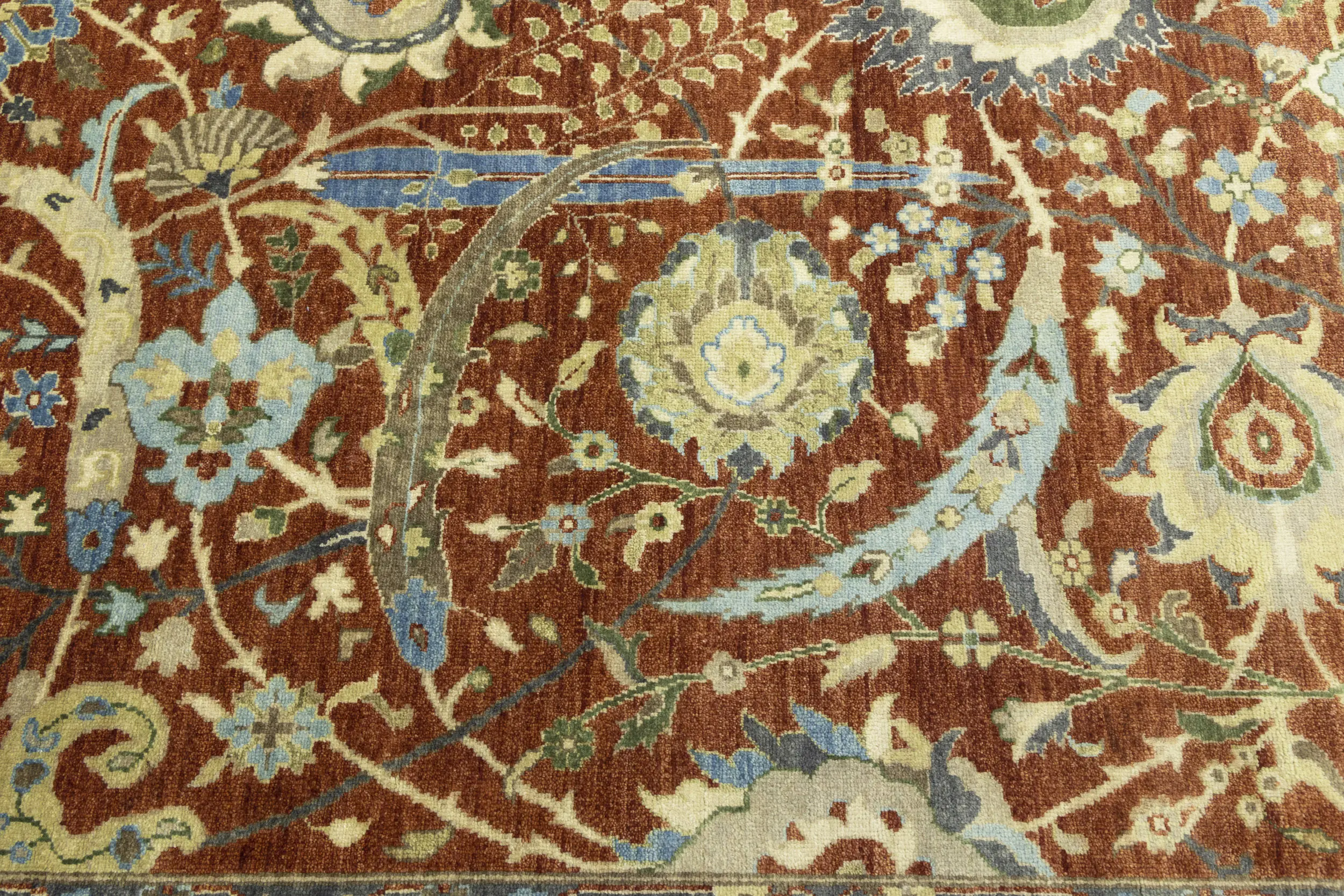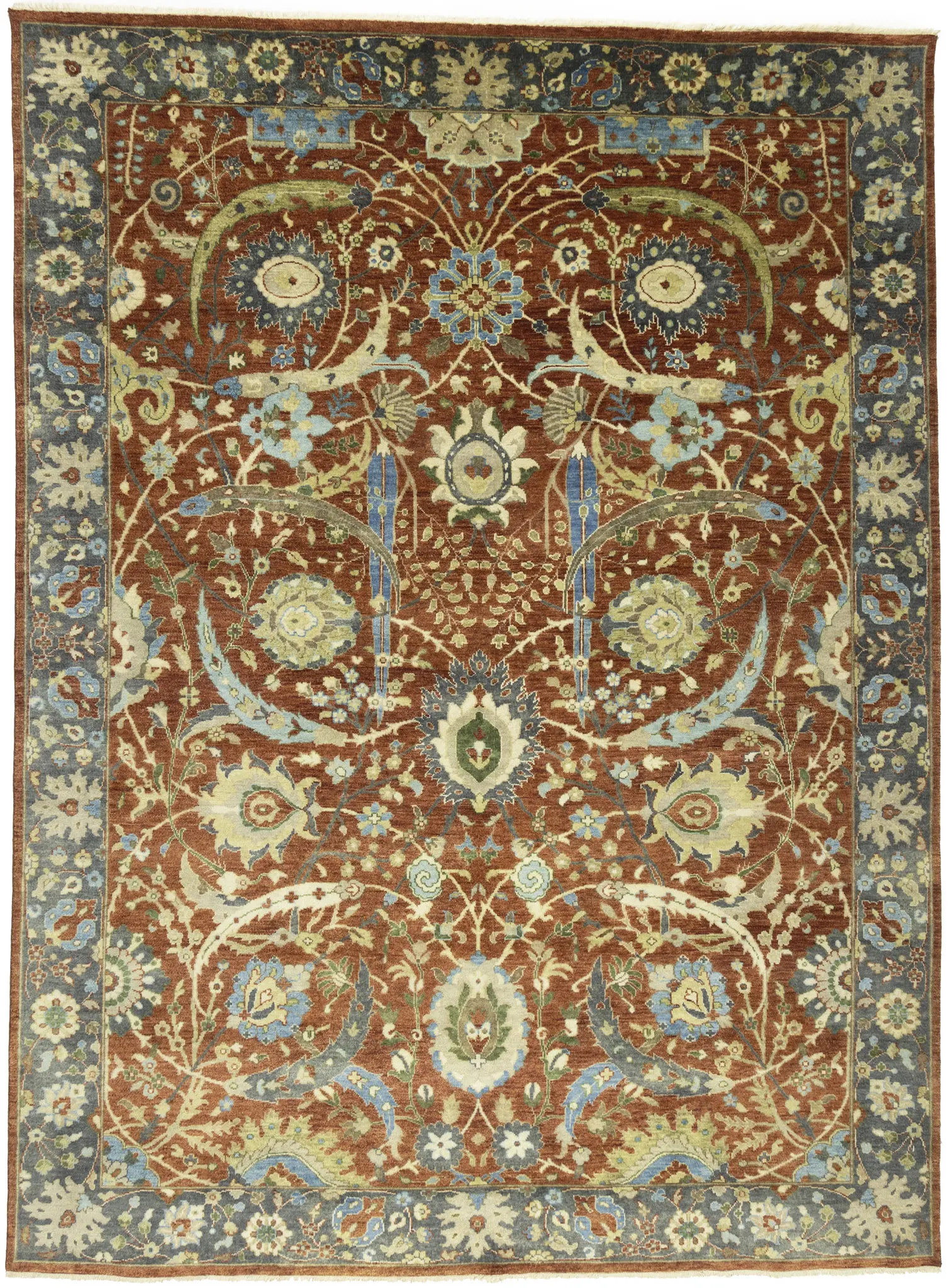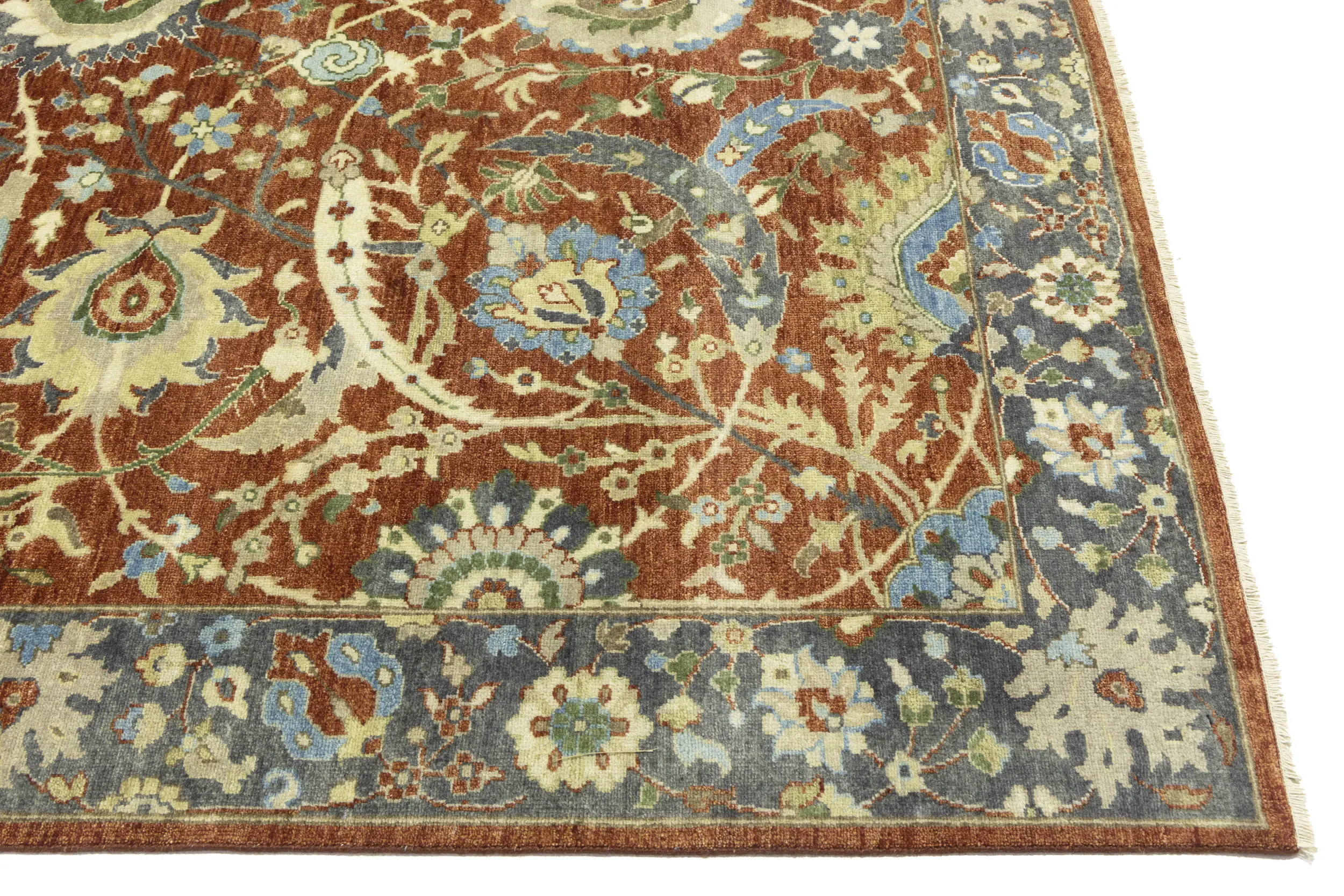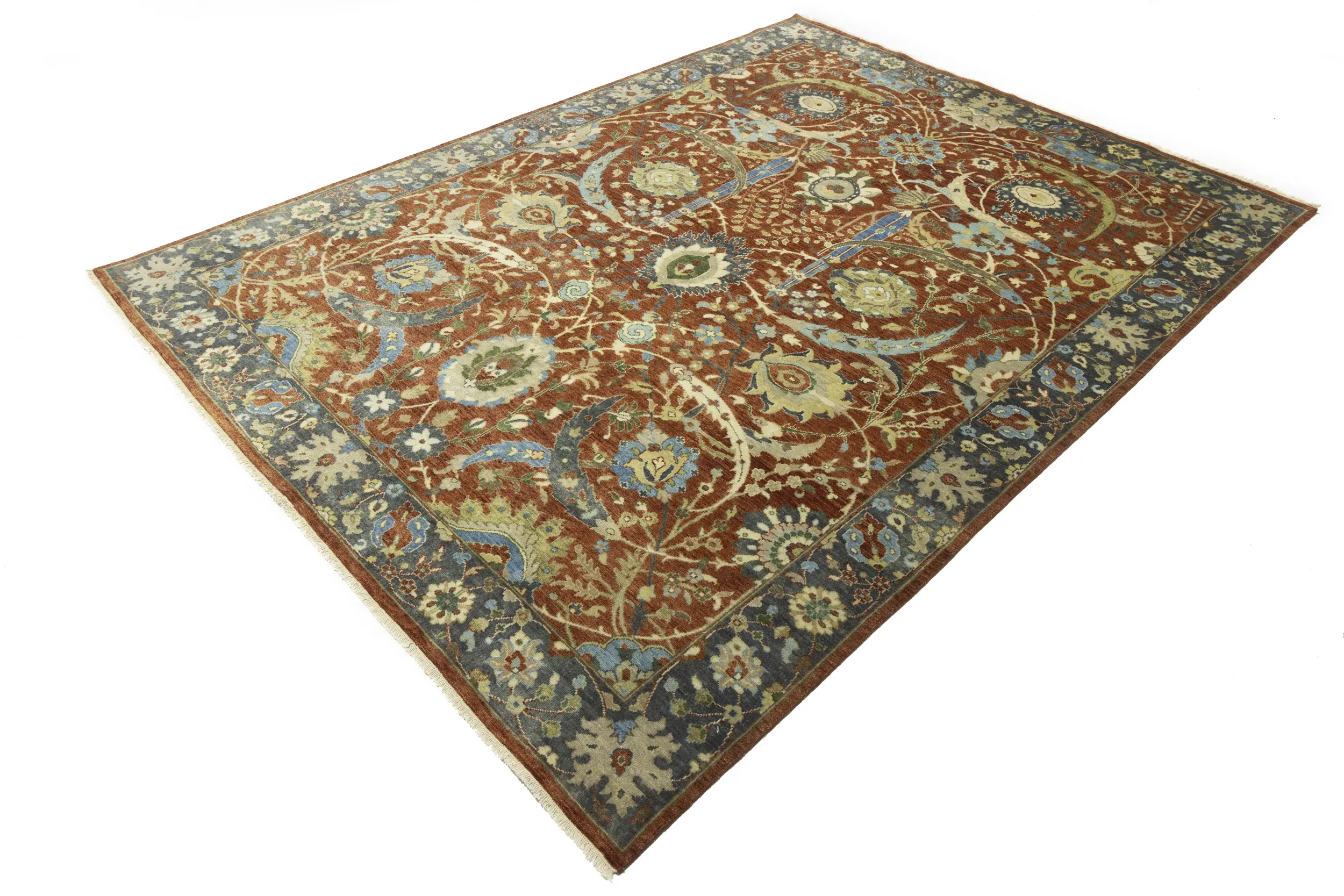 This genuine 9X12 orange new Oriental rug was made by the hands of gifted weavers inspired by a variety of spectacular artistic designs, to recreate the aged look of the original piece with a richness of color and ornately patterned background field. What set this vintage style Oriental area rug from the others are the material and dye used (wool pile and cotton foundation), knot count, ancient designs, fantastic grades, and its regional historical connection: it has deep roots, from the story of the people who produced it to the meaning of the symbols and colors displayed across its canvas that have been praised for centuries. This Indian home décor carpet will be completely cozy and inviting that never will go out of style! Also, this Oriental rug would be among your most valuable treasures, it is a great investment that accrues value over time, and it will last for generations because was woven with high-quality, all-natural wool. Environmentally friendly, opulent yet affordable; this rug will give you a thorough amount of character to help define your living space with elegance and warmth that will capture the eyes and attention of your audience (homeowners, designers, decorators, family and friends).
