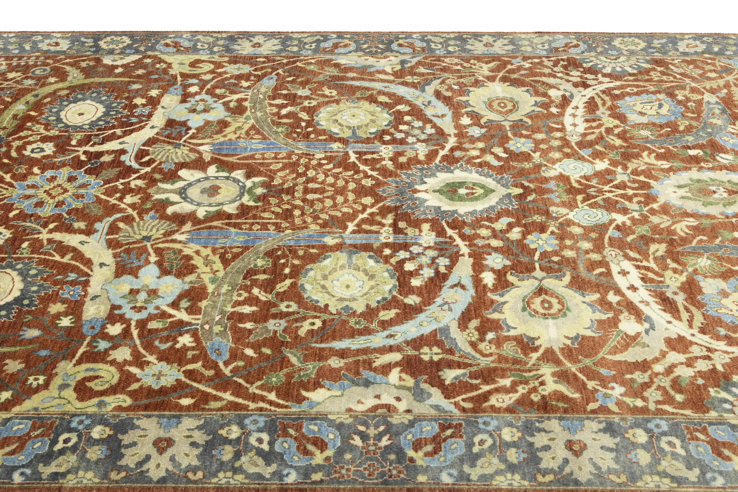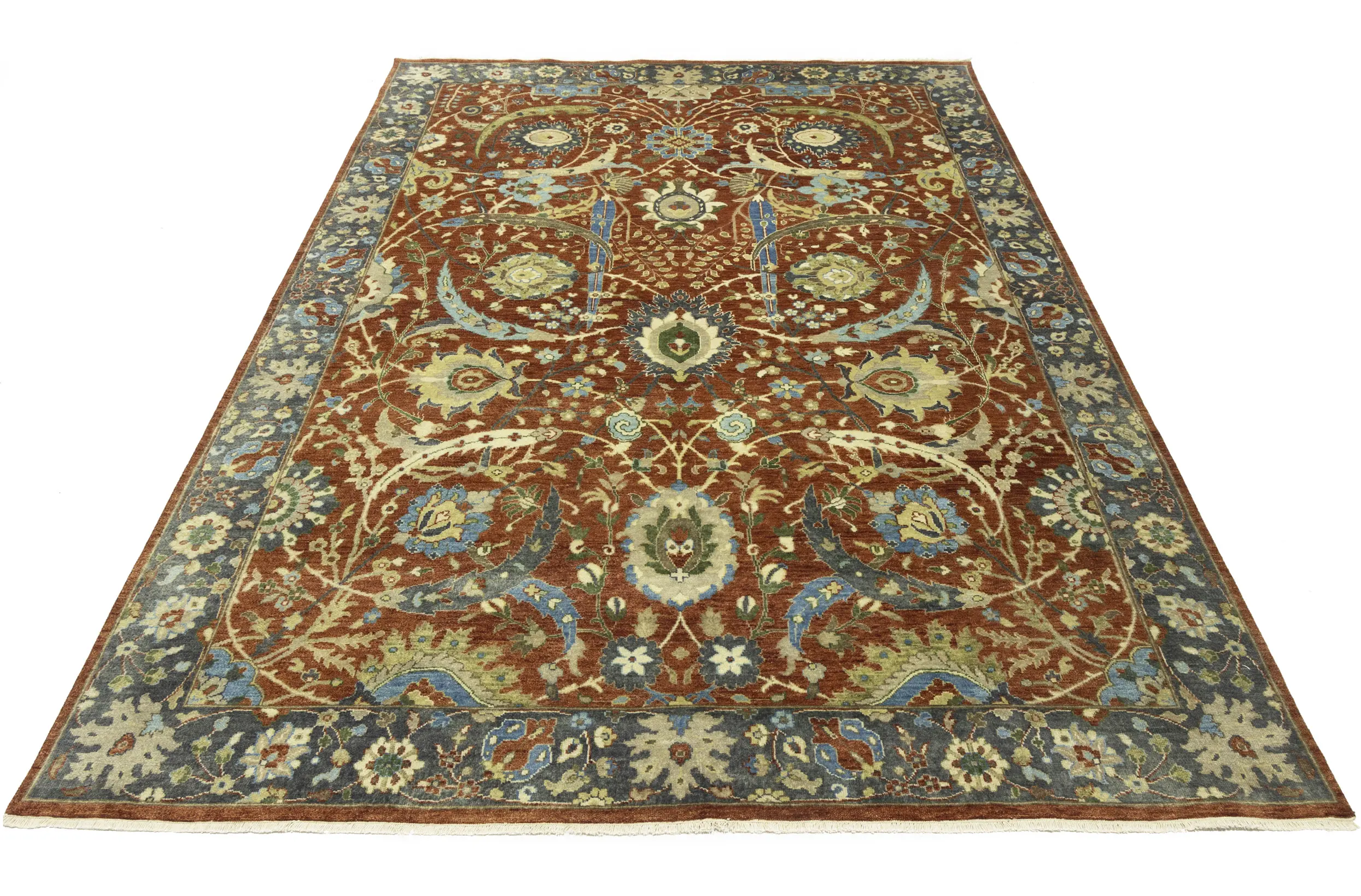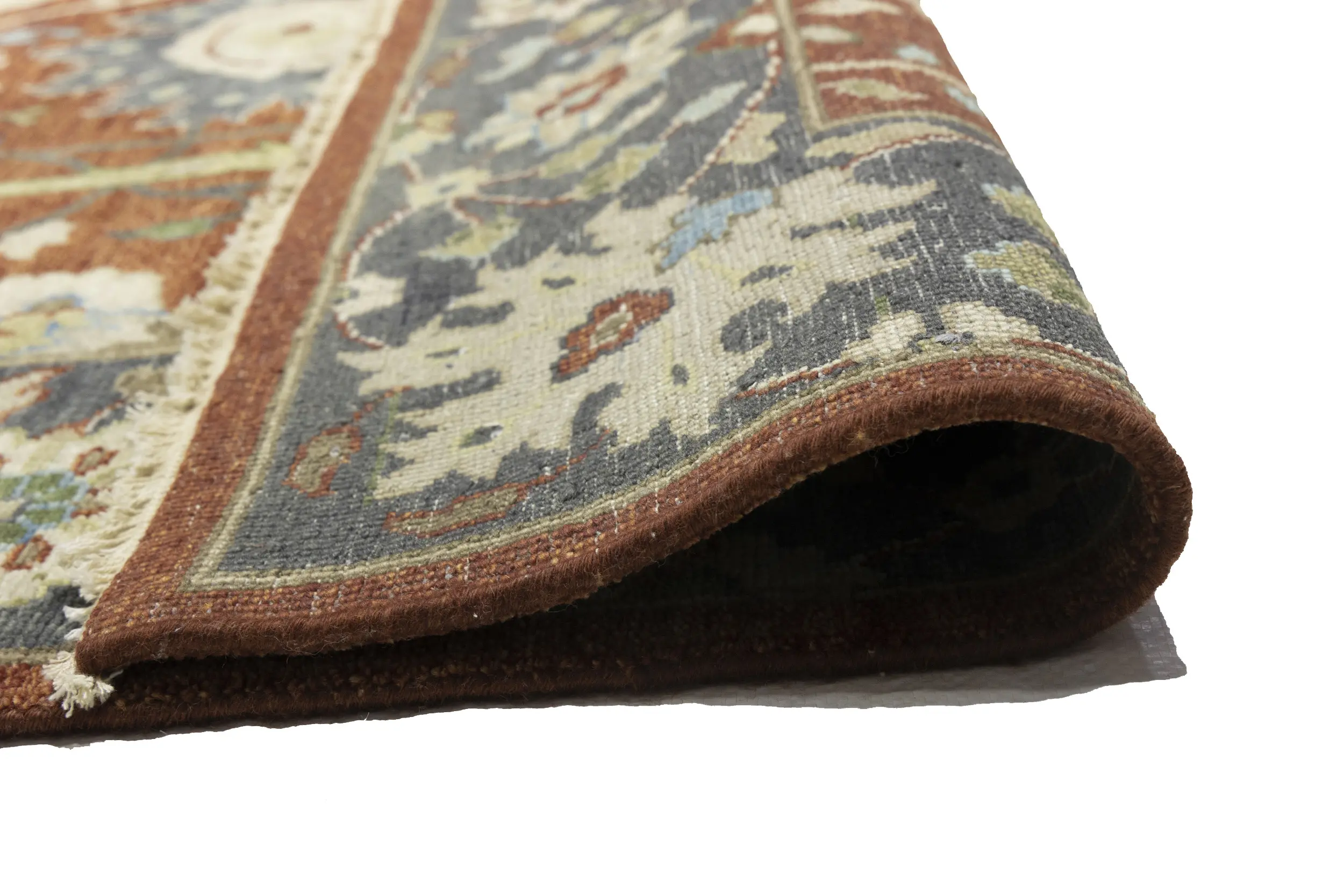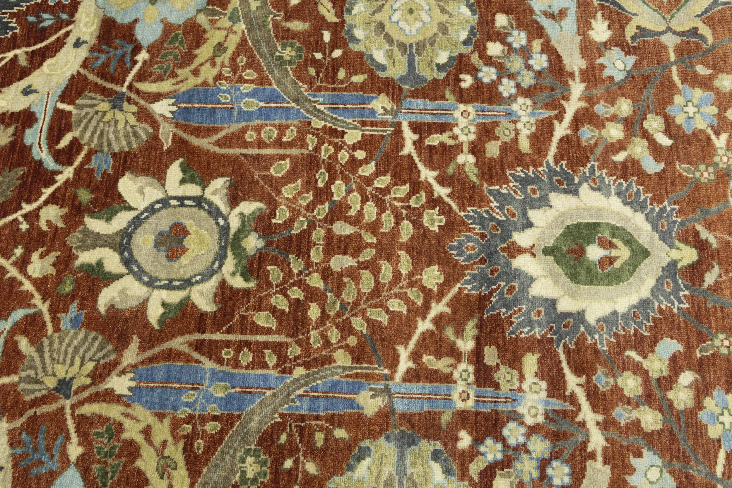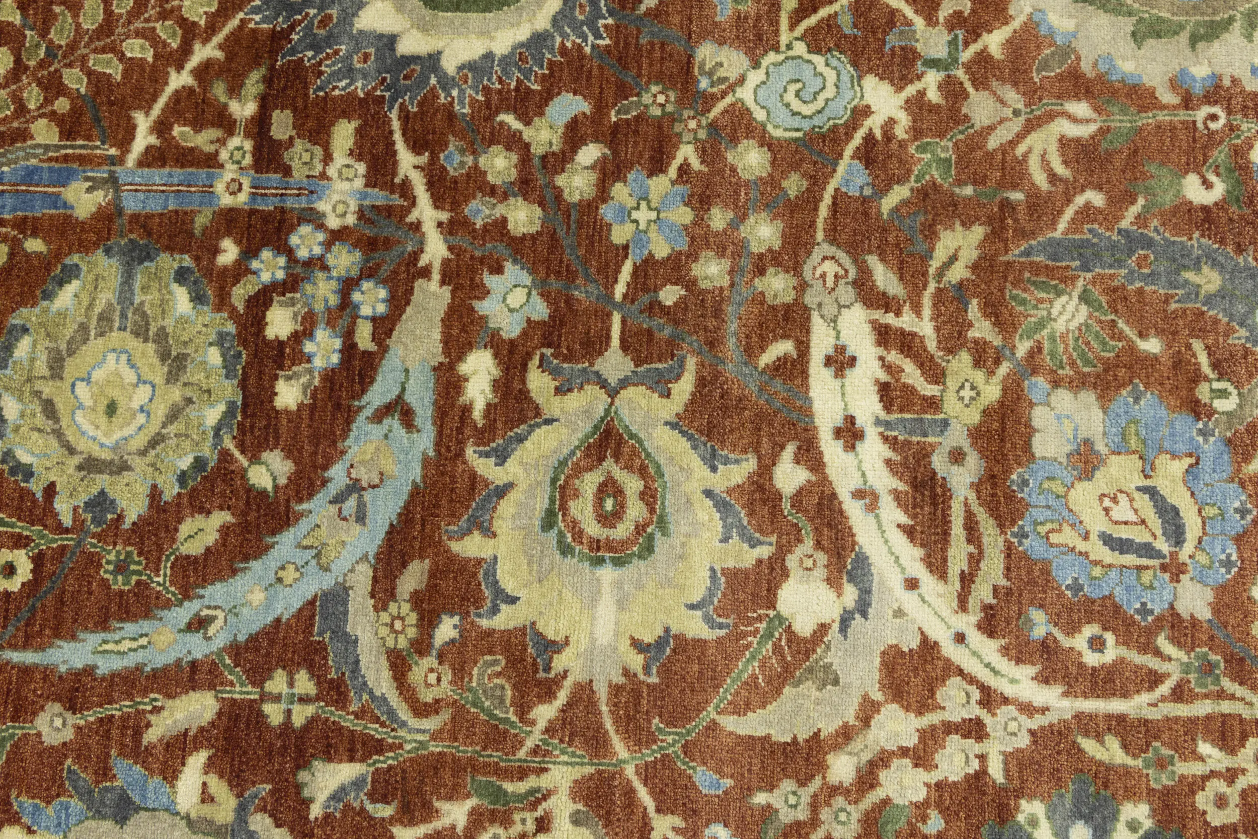 This genuine 9X12 orange new Oriental rug was made by the hands of gifted weavers inspired by a variety of spectacular artistic designs, to recreate the aged look of the original piece with a richness of color and ornately patterned background field. What set this vintage style Oriental area rug from the others are the material and dye used (wool pile and cotton foundation), knot count, ancient designs, fantastic grades, and its regional historical connection: it has deep roots, from the story of the people who produced it to the meaning of the symbols and colors displayed across its canvas that have been praised for centuries. This Indian home décor carpet will be completely cozy and inviting that never will go out of style! Also, this Oriental rug would be among your most valuable treasures, it is a great investment that accrues value over time, and it will last for generations because was woven with high-quality, all-natural wool. Environmentally friendly, opulent yet affordable; this rug will give you a thorough amount of character to help define your living space with elegance and warmth that will capture the eyes and attention of your audience (homeowners, designers, decorators, family and friends).