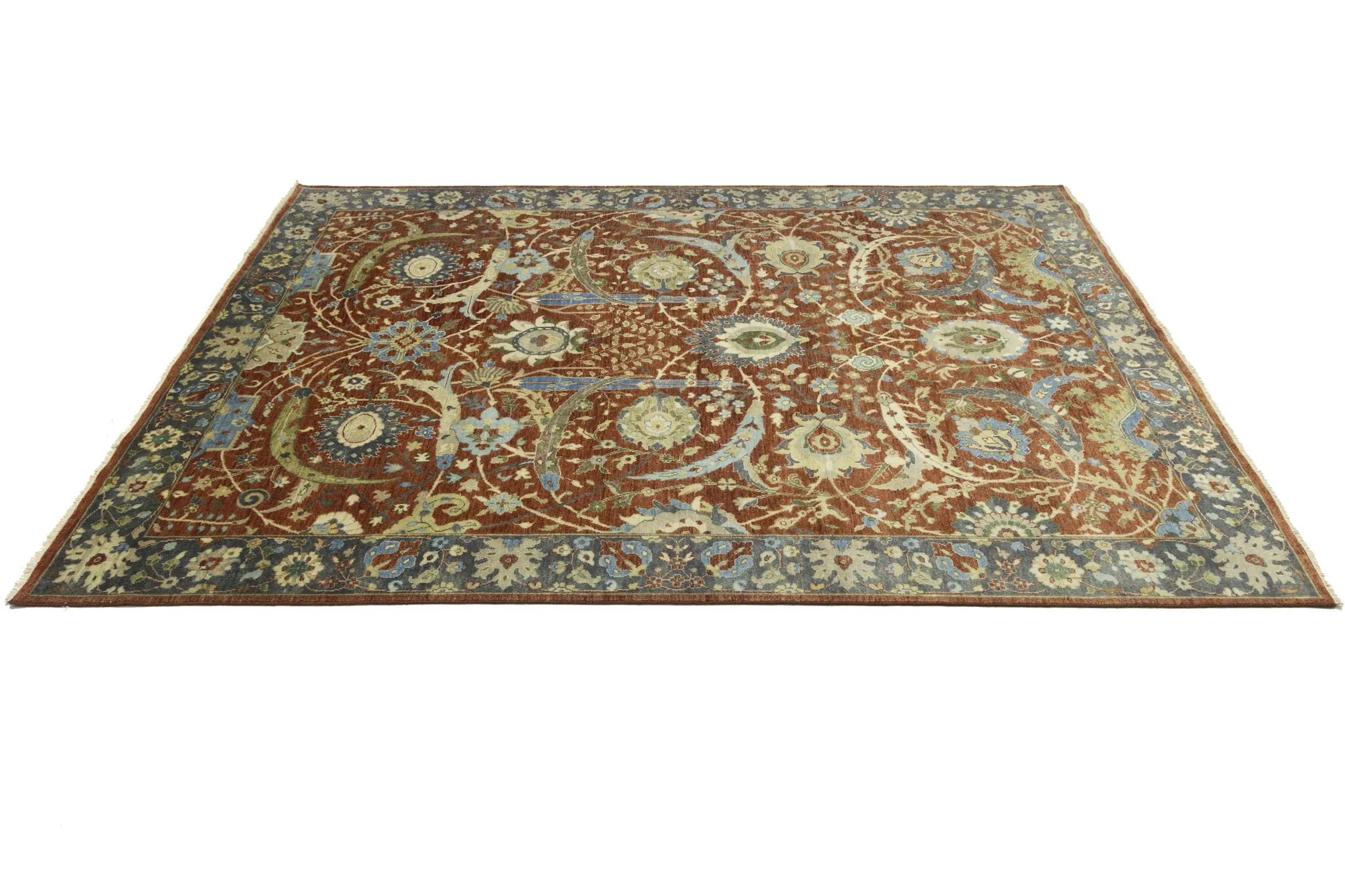 Rust Orange Floral 9X12 Chobi Peshawar Oriental Rug