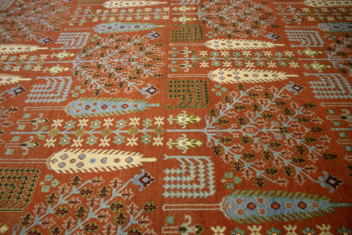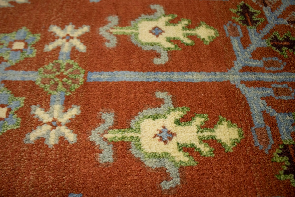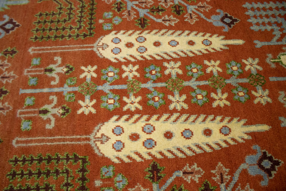 This authentic 9X12 orange new Oriental rug was crafted by the hands of skilled weavers enthused by a variety of lovely artistic designs, to recreate the aged look of the unique piece with a richness of color and beautifully elaborated background field. What set this vintage style Oriental area rug from the others are the material and dye used (wool pile and cotton foundation), knot count, ancient designs, fantastic grades, and its regional historical connection: it has deep roots, from the story of the people who produced it to the meaning of the symbols and colors displayed across its canvas that have been praised for centuries. This Indian home décor carpet will be completely cozy and inviting that never will go out of style! Also, this Oriental rug would be among your most valuable treasures, it is a great investment that increase in value over time, and it will last for generations because was woven with high-quality, all-natural wool. Environmentally friendly, opulent yet affordable; this rug will give you a thorough amount of character to help define your living space with sophistication and warmth that will capture the eyes and attention of your audience (homeowners, designers, decorators, family and friends). OT-4007