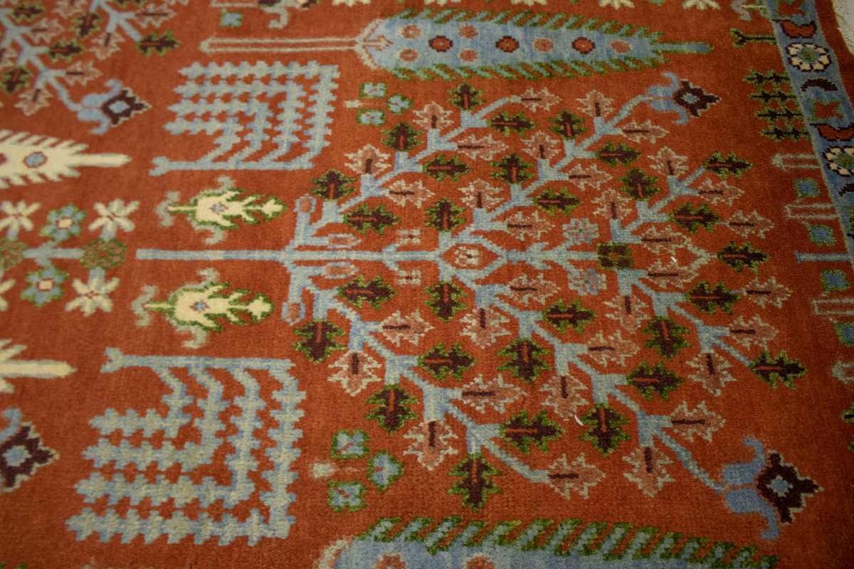 Handmade 9X12 orange oriental rug made with natural dyes (fine wool pile and cotton foundation), superior knot count, and appealing ancient designs. This Oriental rug never will go out of style and would be among your most valuable treasures.