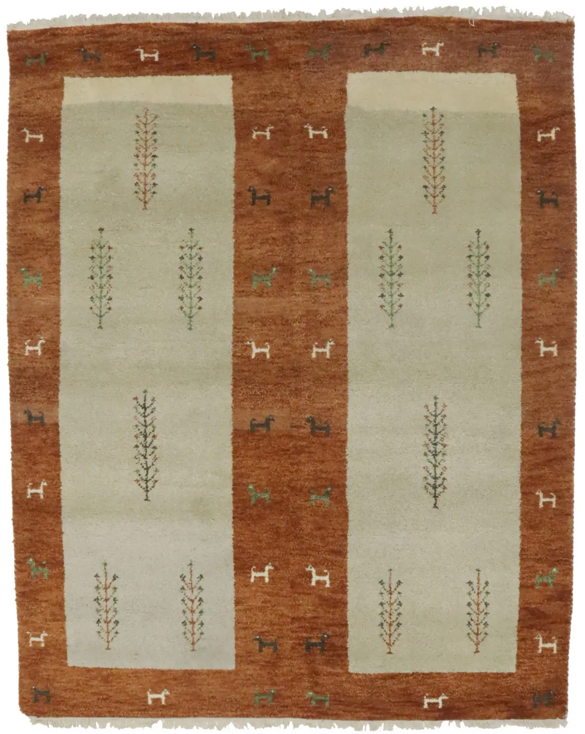 Rust Pictorial Tribal 5'3X6'6 Indo-Gabbeh Oriental Rug