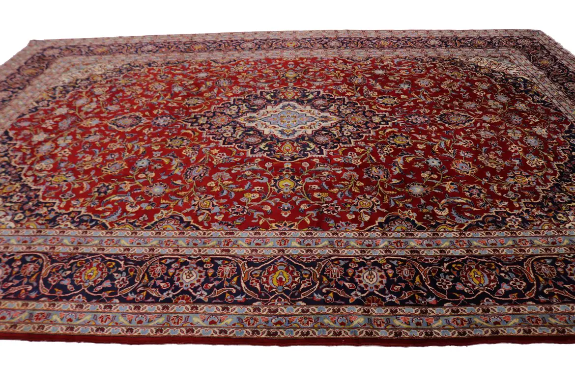 Vintage Red Traditional 10X14 Kashan Persian Rug