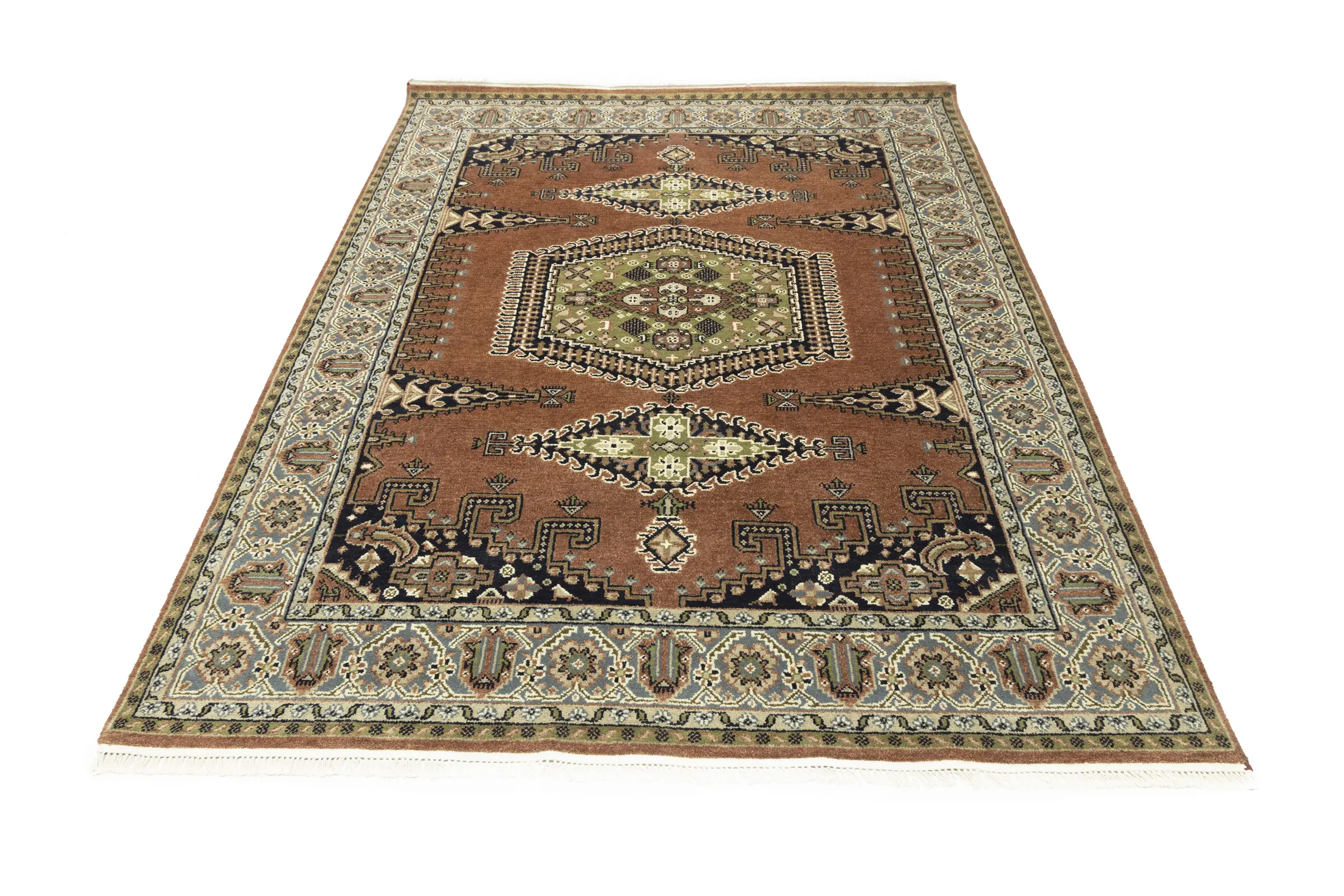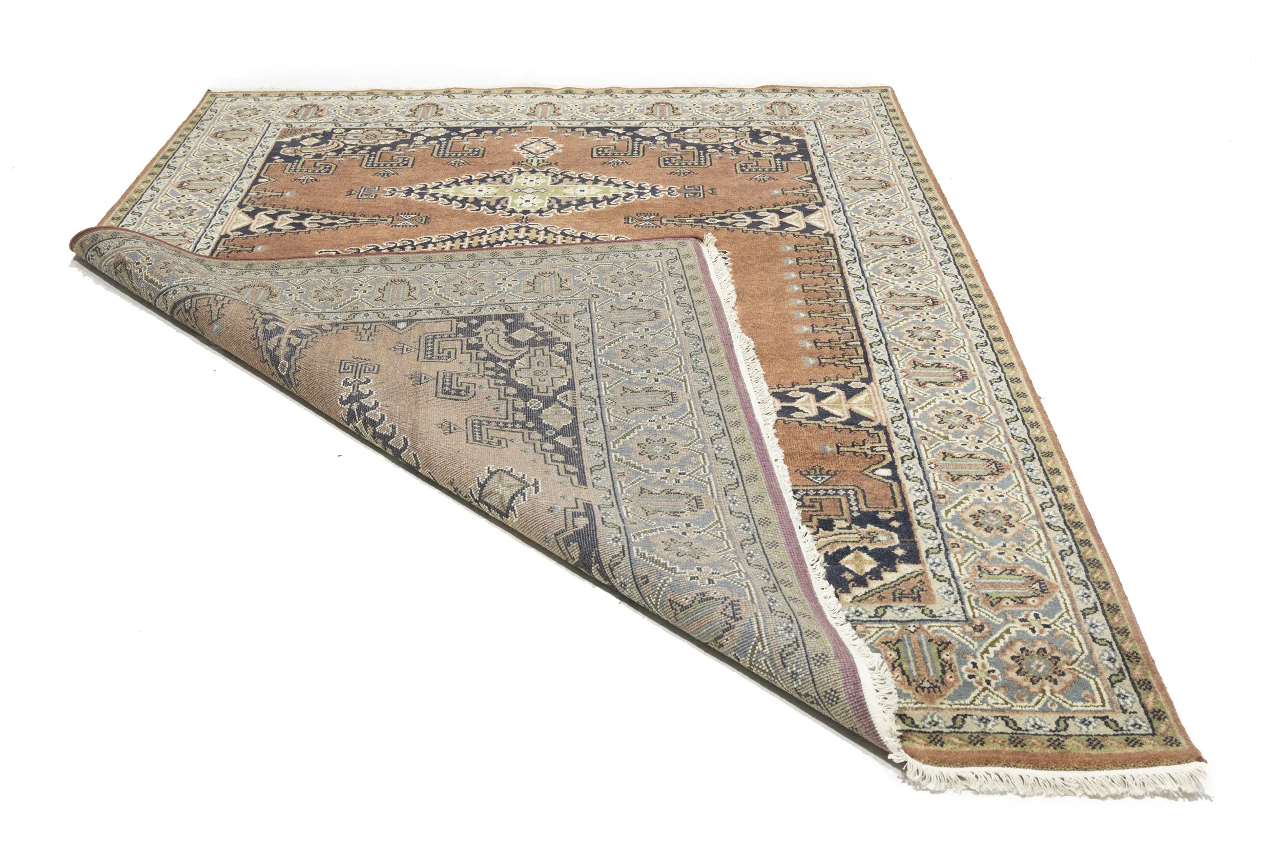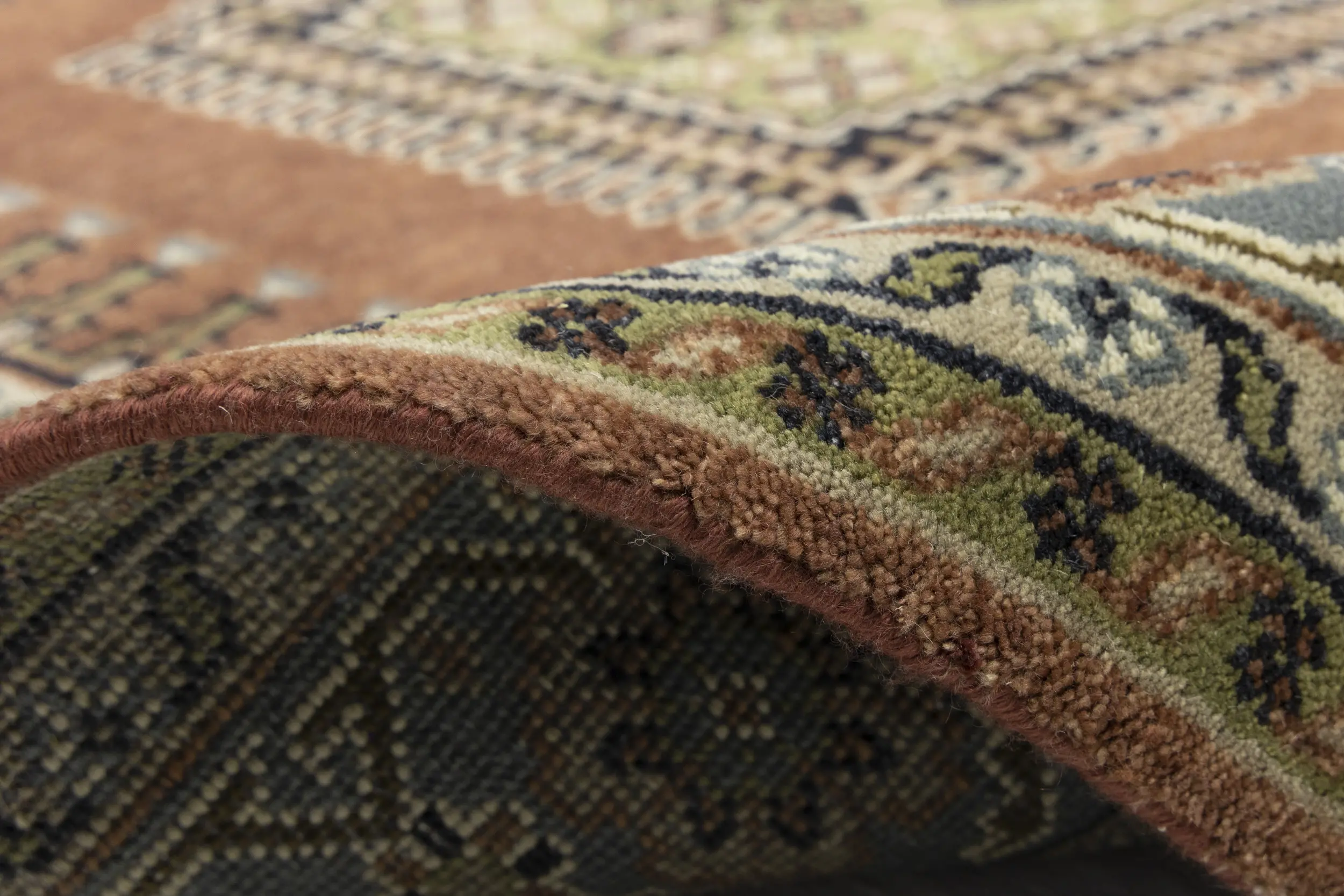 This genuine 8X10 orange new Oriental rug was made by the hands of gifted weavers inspired by a variety of spectacular artistic designs, to recreate the aged look of the original piece with a richness of color and ornately patterned background field. What set this vintage style Oriental area rug from the others are the material and dye used (wool pile and cotton foundation), knot count, ancient designs, fantastic grades, and its regional historical connection: it has deep roots, from the story of the people who produced it to the meaning of the symbols and colors displayed across its canvas that have been praised for centuries. This Indian home décor carpet will be completely cozy and inviting that never will go out of style! Also, this Oriental rug would be among your most valuable treasures, it is a great investment that accrues value over time, and it will last for generations because was woven with high-quality, all-natural wool. Environmentally friendly, opulent yet affordable; this rug will give you a thorough amount of character to help define your living space with elegance and warmth that will capture the eyes and attention of your audience (homeowners, designers, decorators, family and friends).