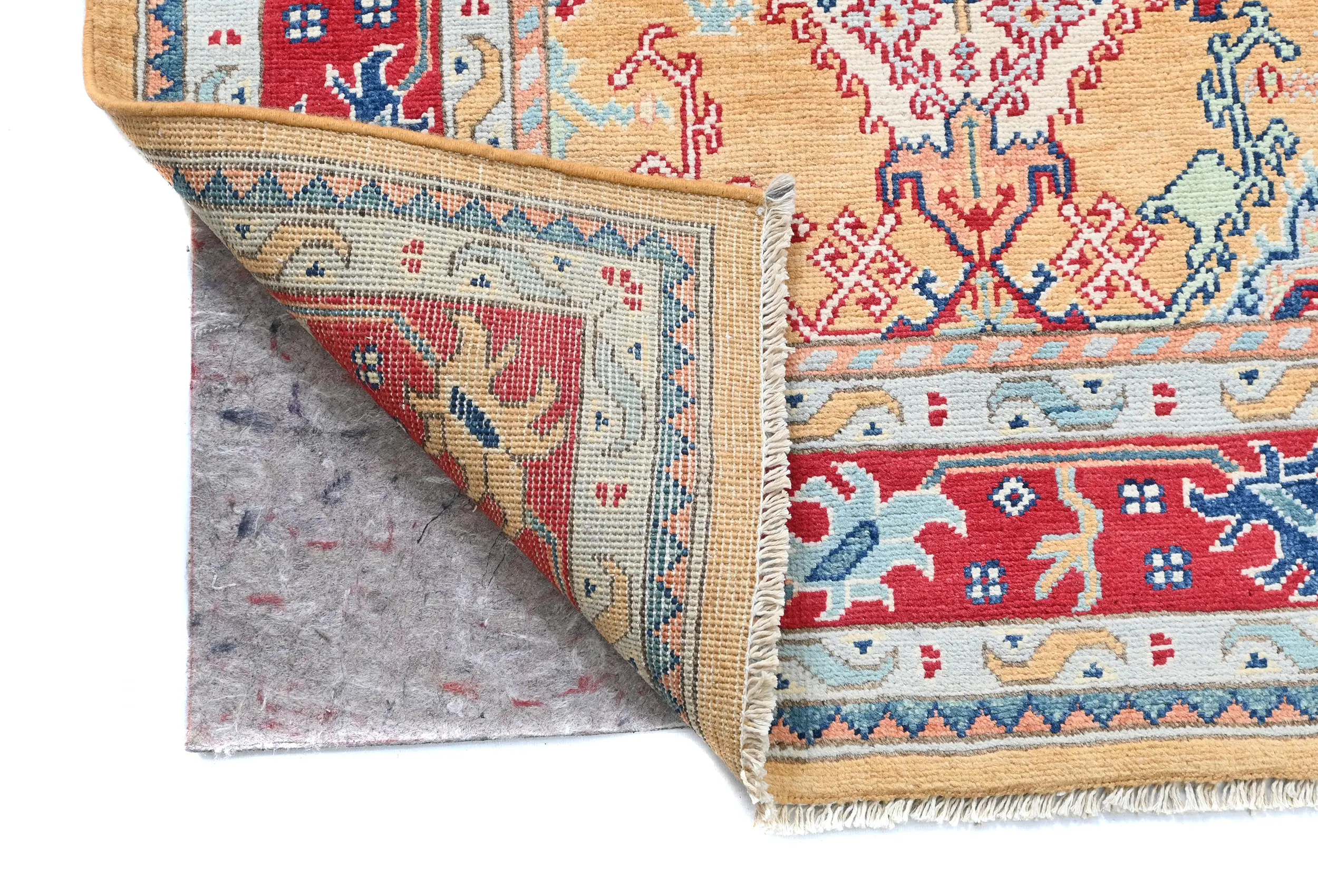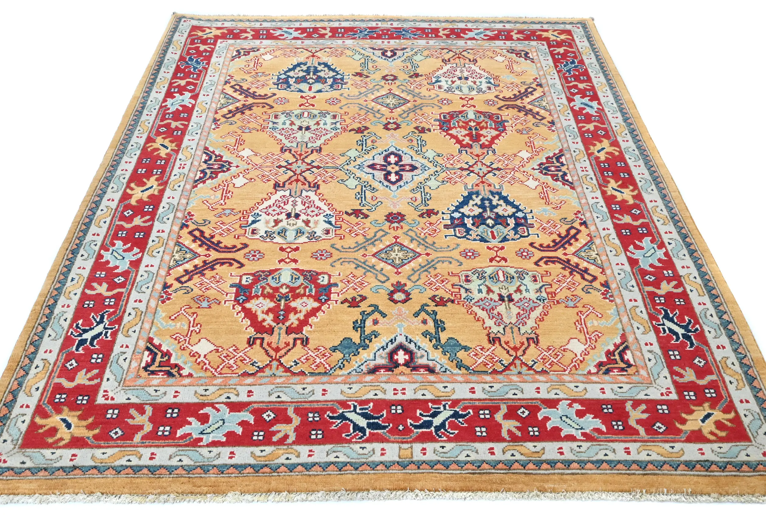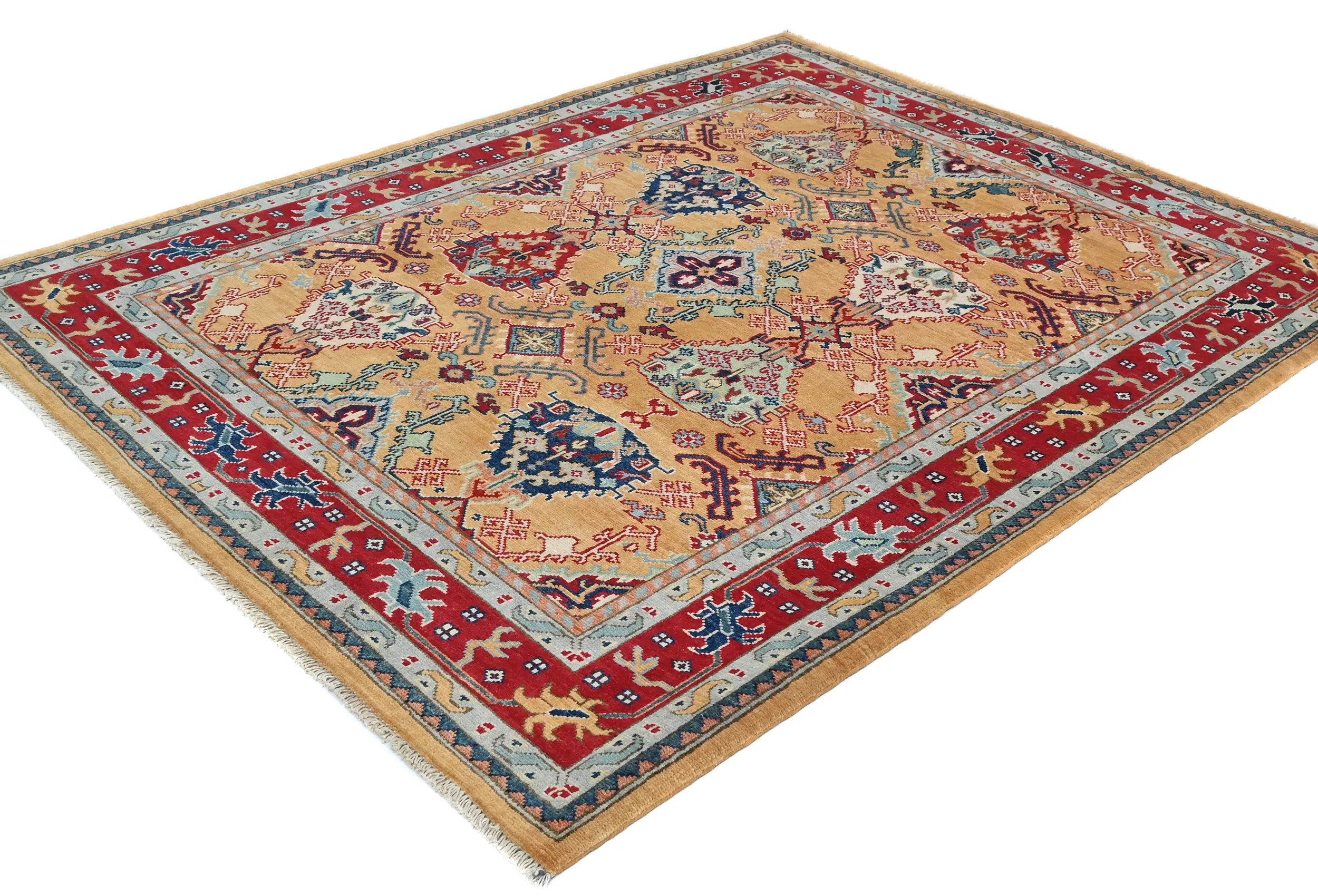 Hand Knotted 4'11X6'4 rusty beige Oriental rug made with vegetable dyes (fine wool pile and cotton foundation), exceptional knot count, and appealing ancient designs. This Oriental rug never will go out of style and would be among your most valuable treasures.