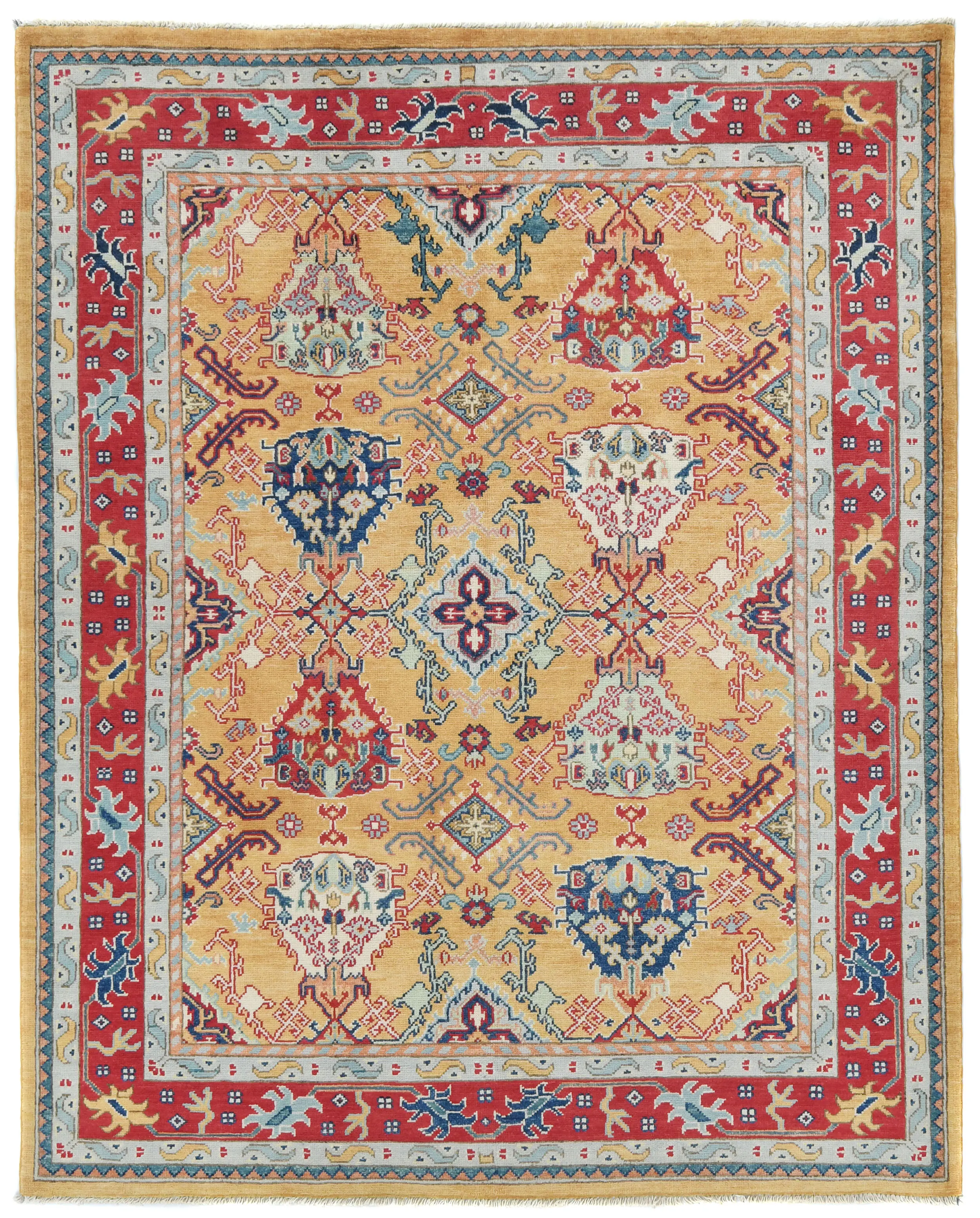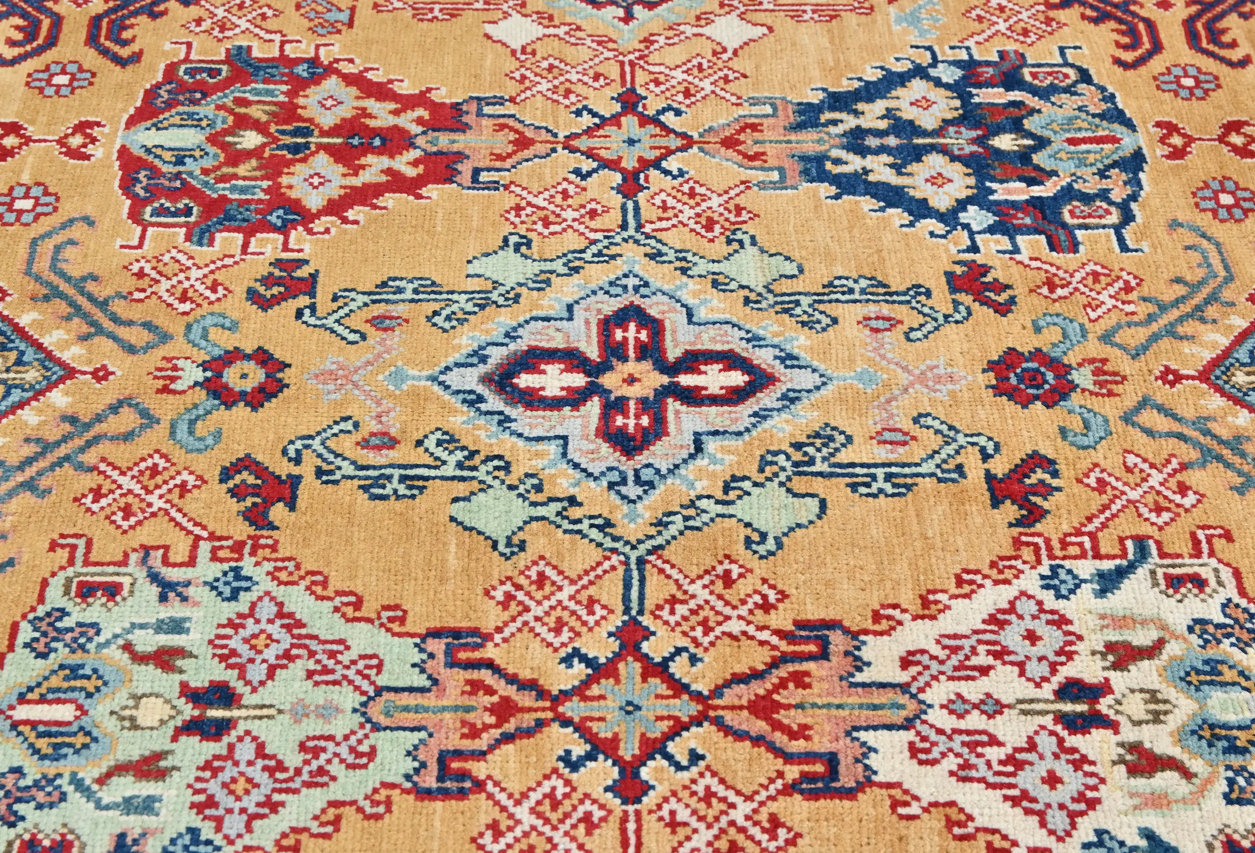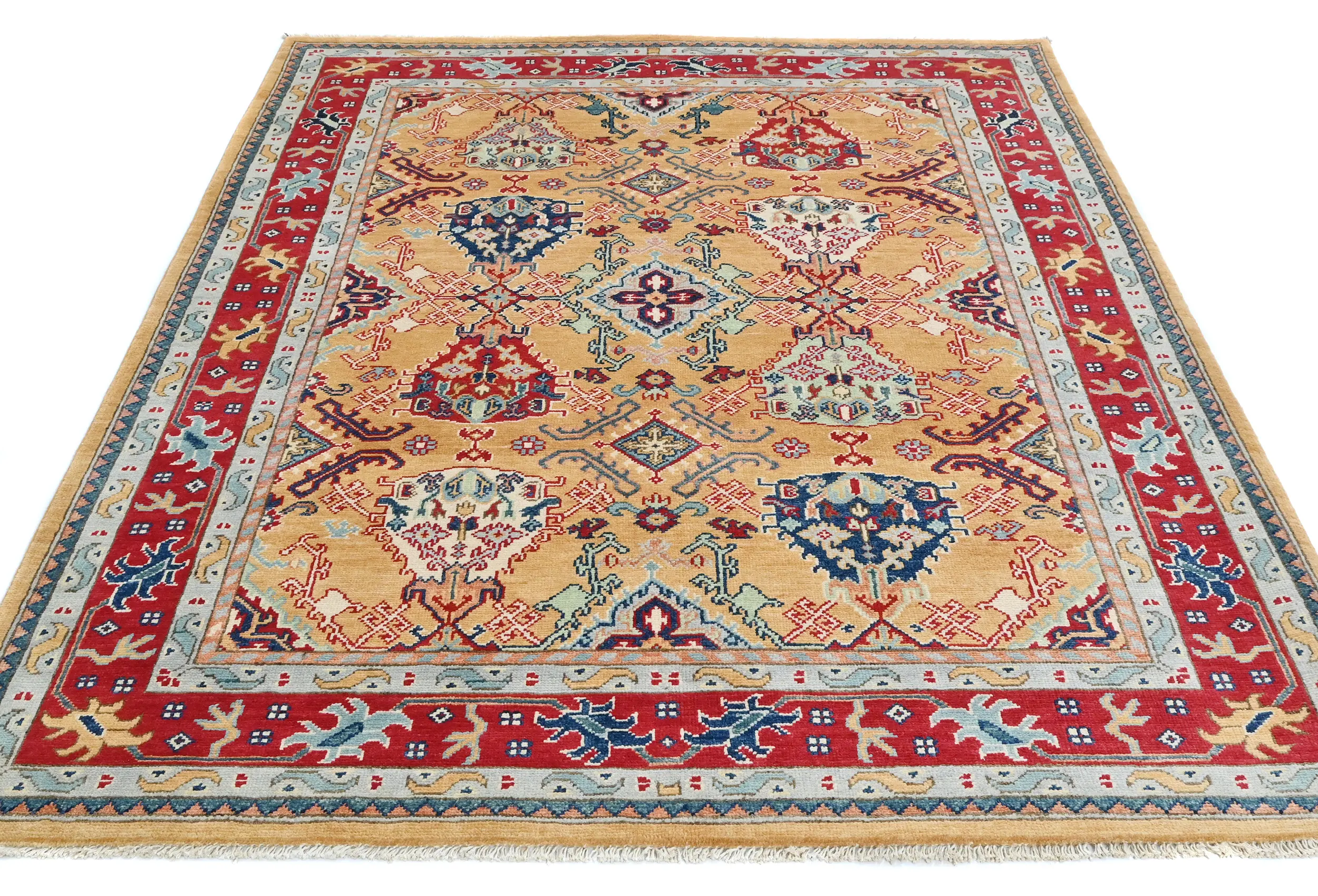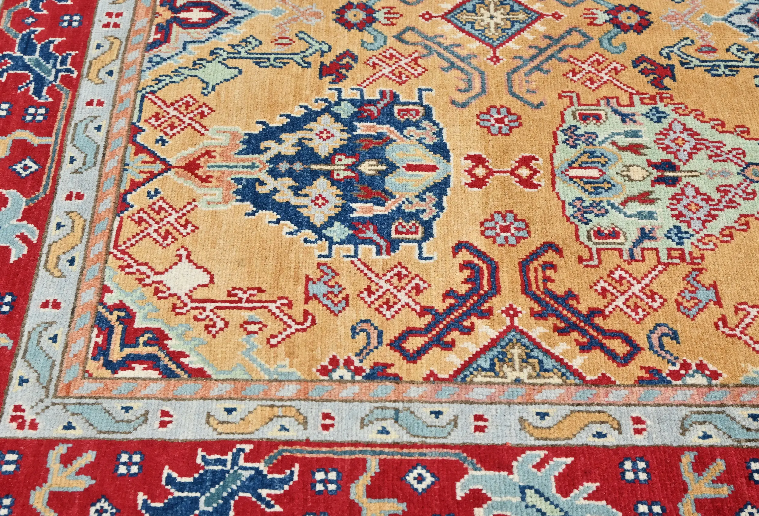 Hand Knotted 4'11X6'4 rusty beige Oriental rug made with vegetable dyes (fine wool pile and cotton foundation), exceptional knot count, and appealing ancient designs. This Oriental rug never will go out of style and would be among your most valuable treasures.