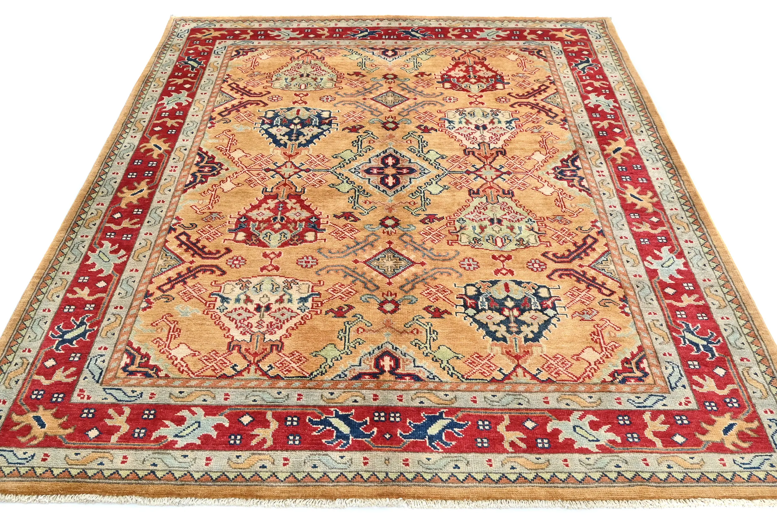 Hand Knotted 5X7 Rusty Beige Oriental rug made with vegetable dyes (fine wool pile and cotton foundation), exceptional knot count, and appealing ancient designs. This Oriental rug never will go out of style and would be among your most valuable treasures.