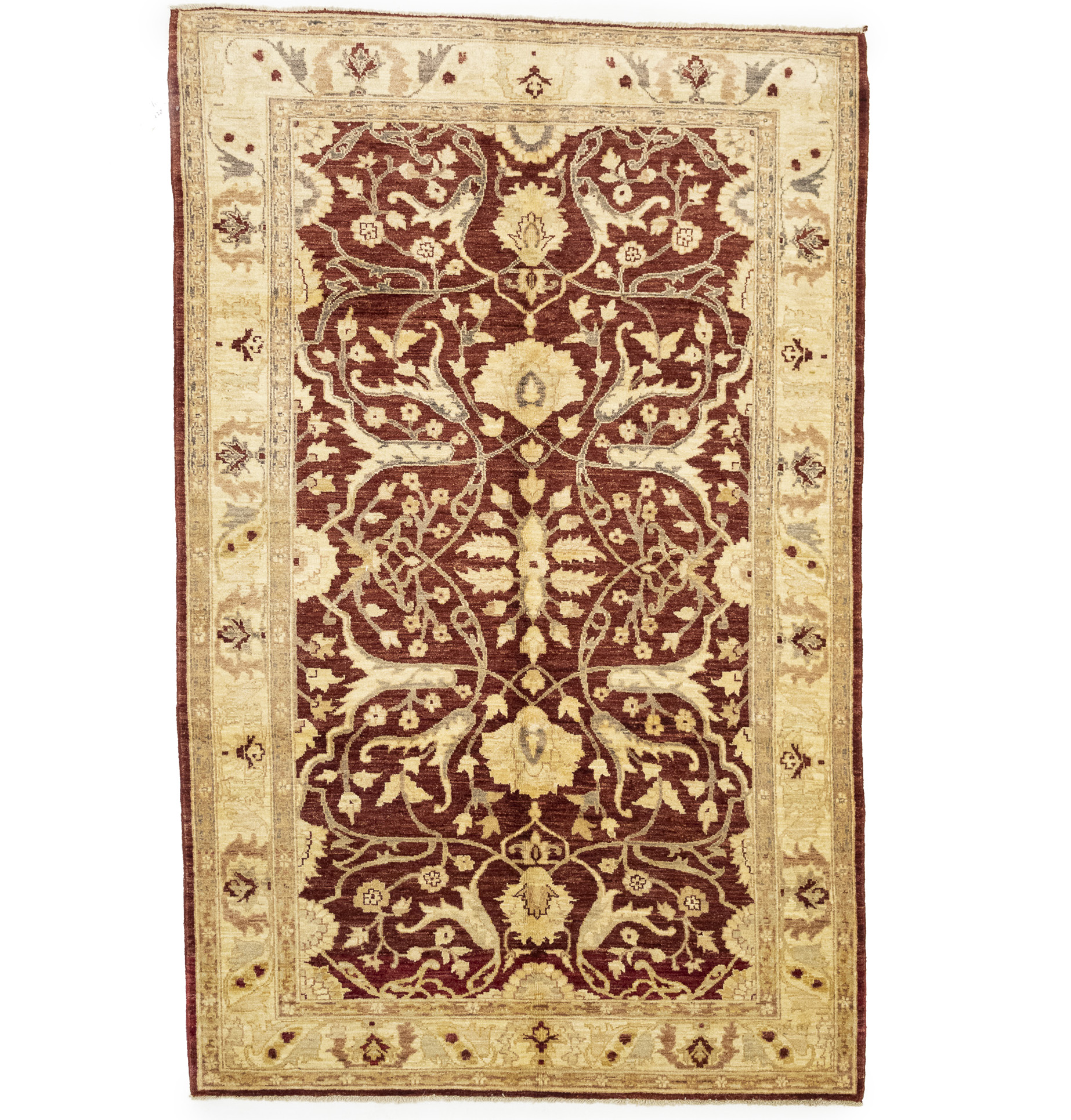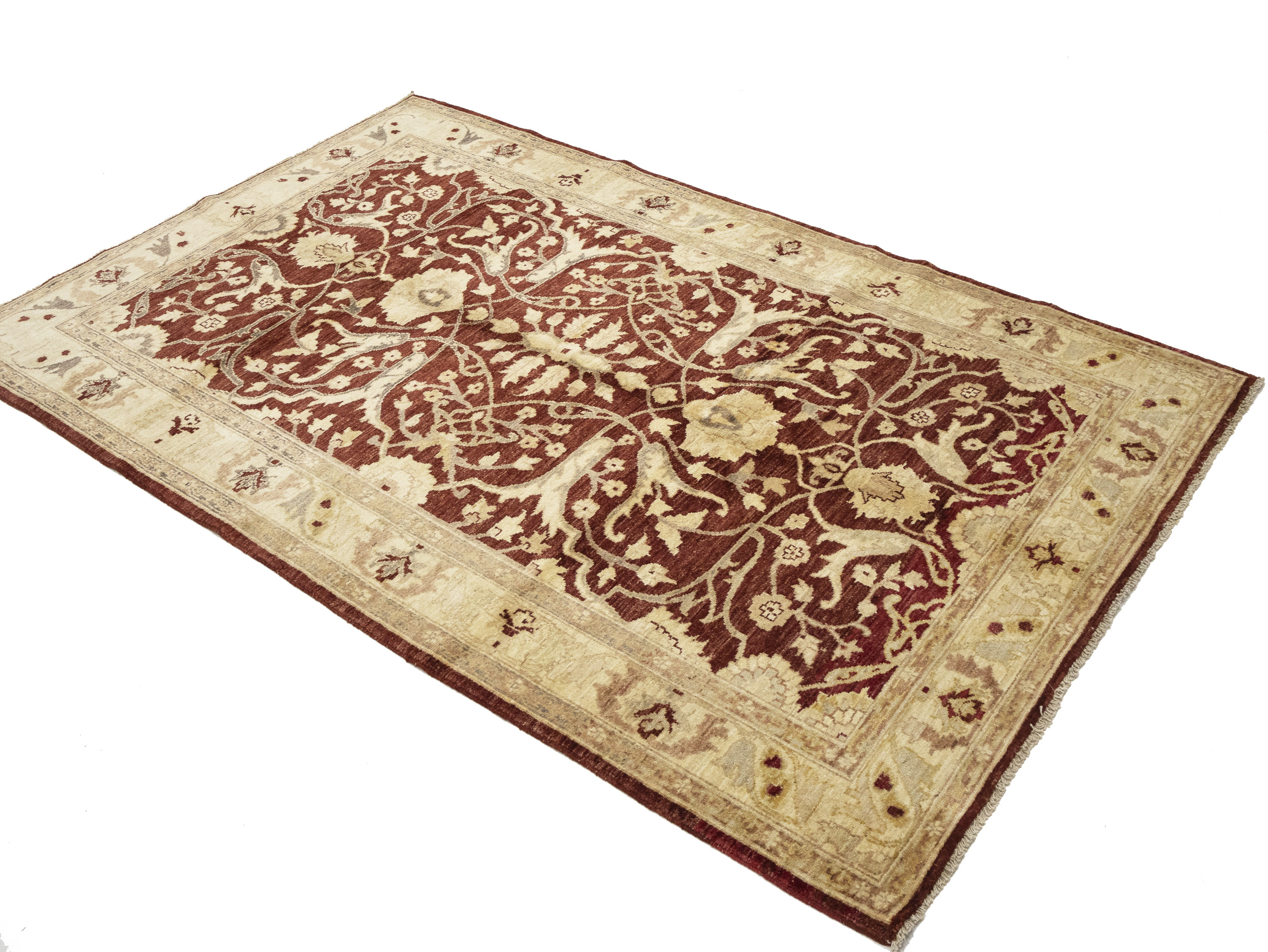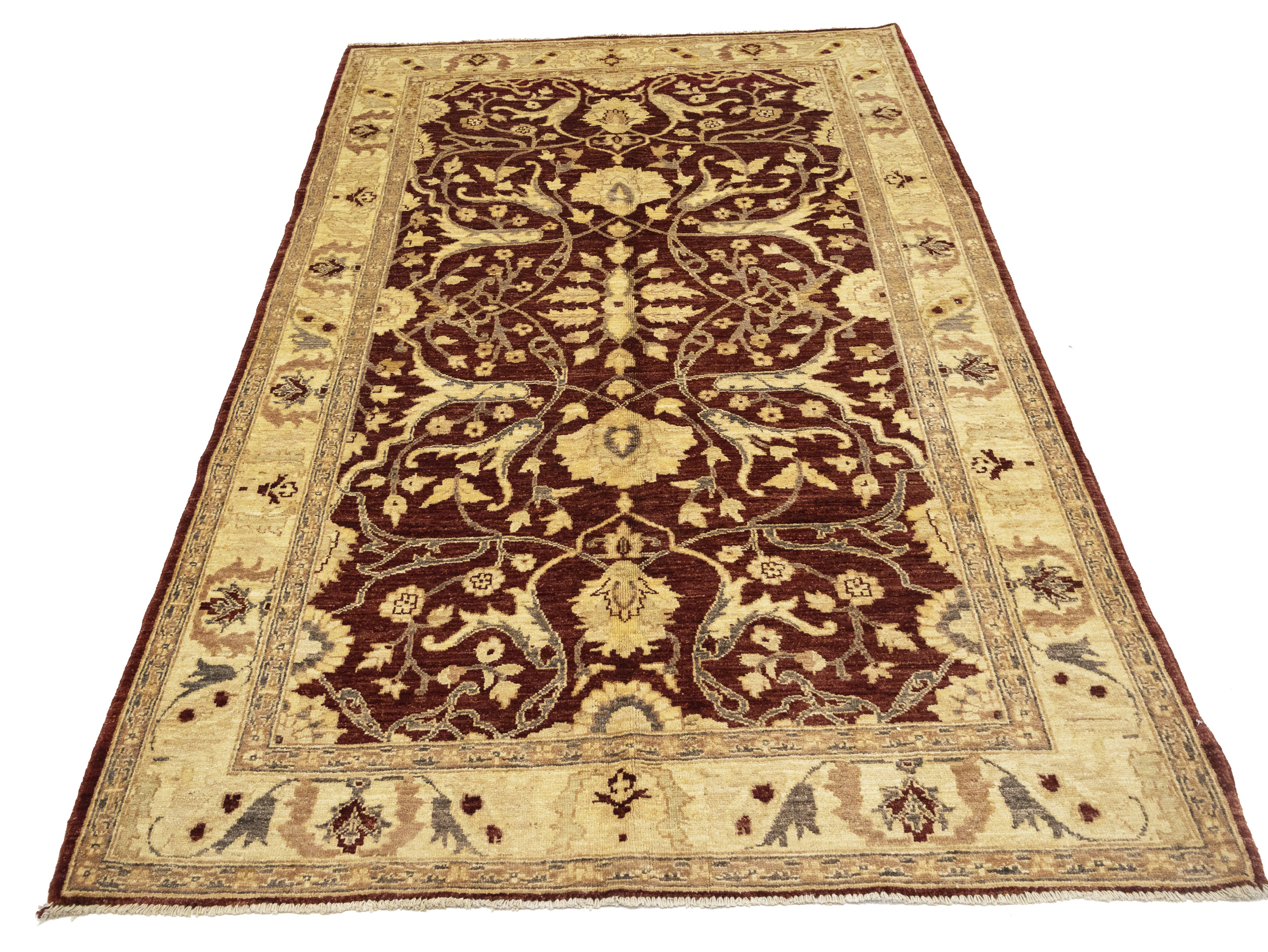 Handmade 5X8 rusty maroon oriental rug made with vegetable dyes (fine wool pile and cotton foundation), superior knot count, and appealing ancient designs. This Oriental rug never will go out of style and would be among your most valuable treasures.