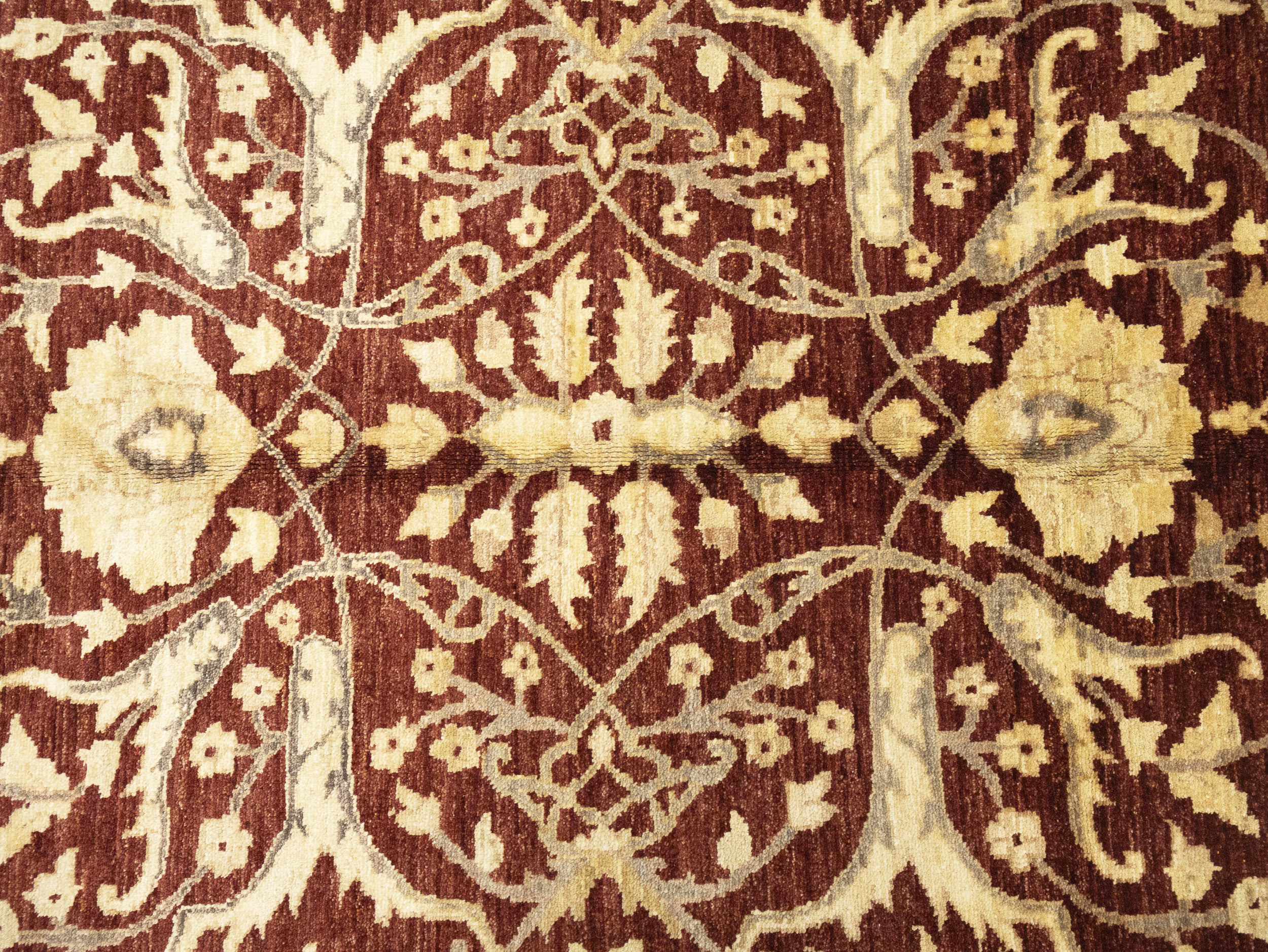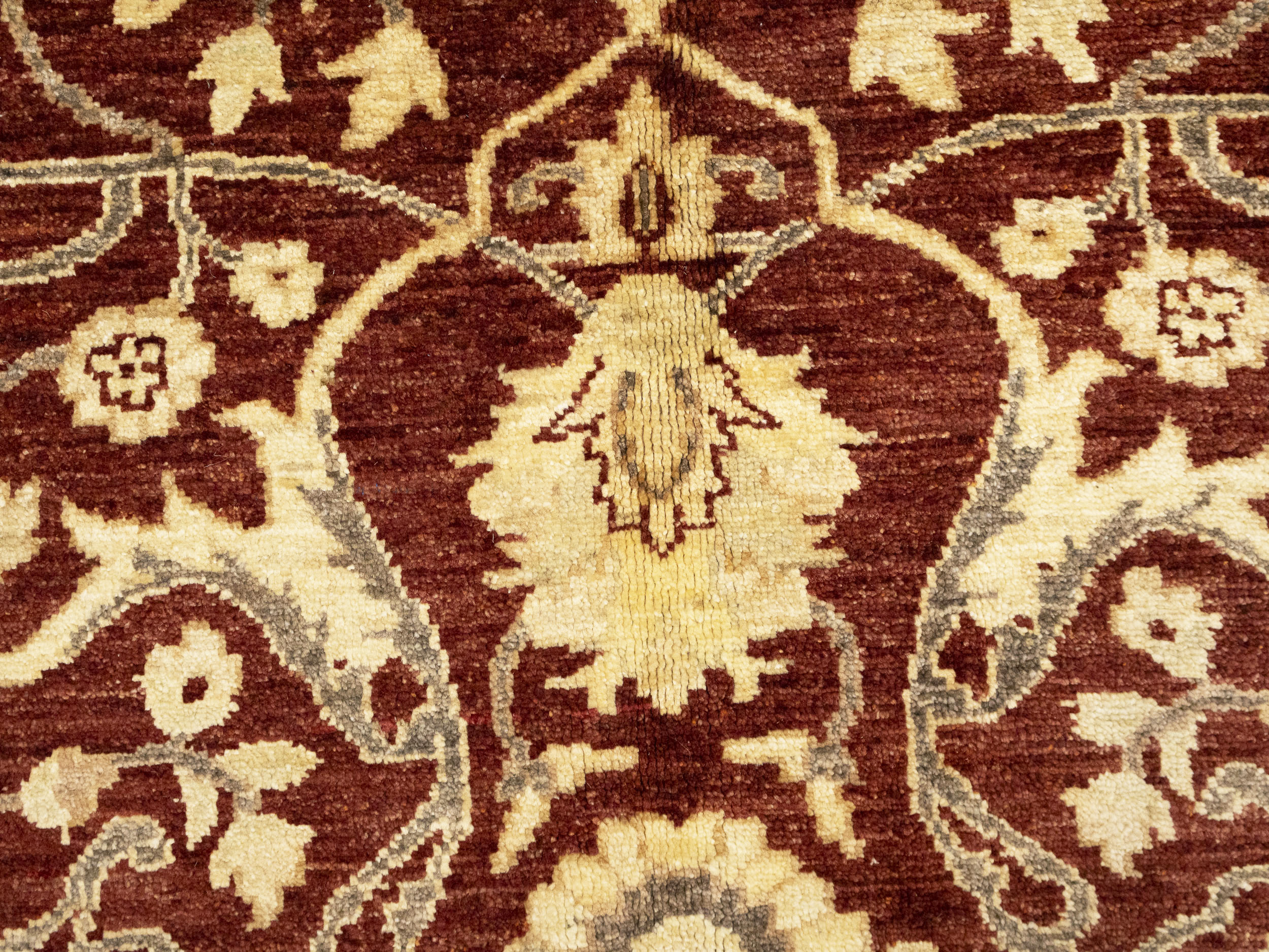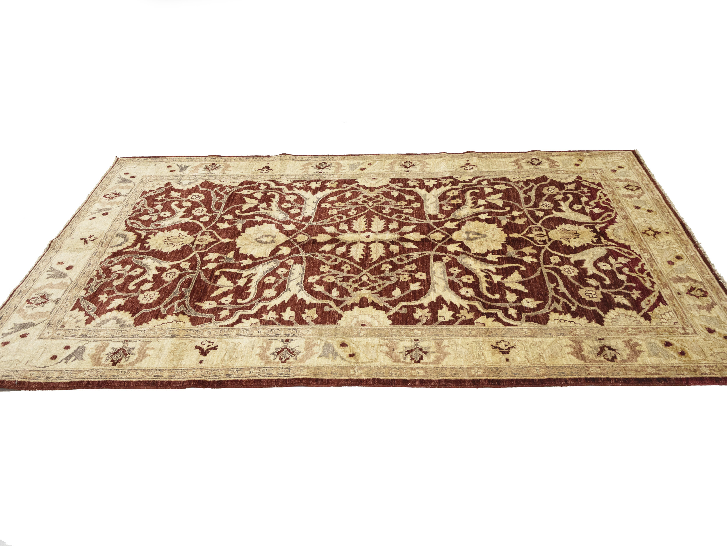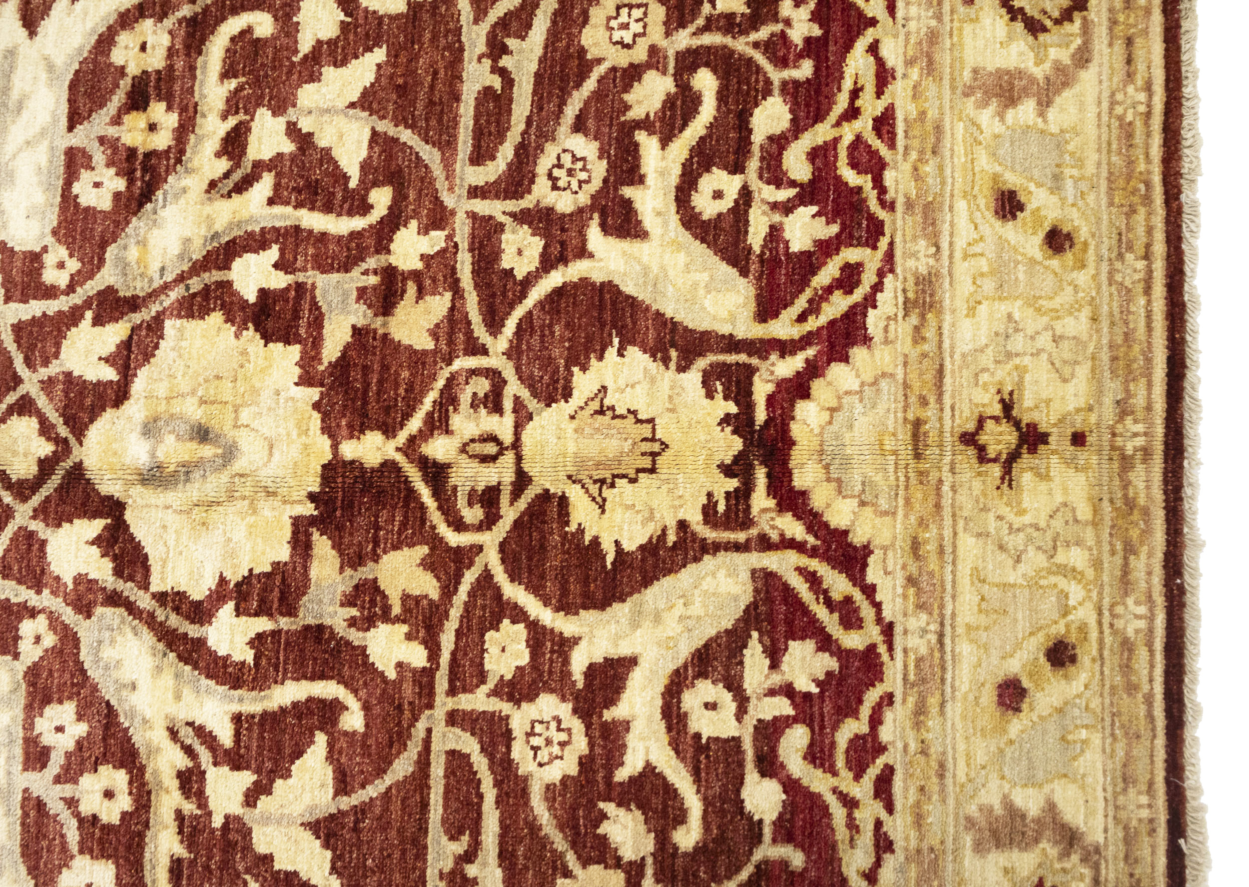 This genuine 5X8 rusty maroon new Oriental rug was made by the hands of gifted weavers inspired by a variety of spectacular artistic designs, to recreate the aged look of the original piece with a richness of color and ornately patterned background field. What set this vintage style Oriental area rug from the others are the material and dye used (wool pile and cotton foundation), knot count, ancient designs, fantastic grades, and its regional historical connection: it has deep roots, from the story of the people who produced it to the meaning of the symbols and colors displayed across its canvas that have been praised for centuries. This Indian home décor carpet will be completely cozy and inviting that never will go out of style! Also, this Oriental rug would be among your most valuable treasures, it is a great investment that accrues value over time, and it will last for generations because was woven with high-quality, all-natural wool. Environmentally friendly, opulent yet affordable; this rug will give you a thorough amount of character to help define your living space with elegance and warmth that will capture the eyes and attention of your audience (homeowners, designers, decorators, family and friends).