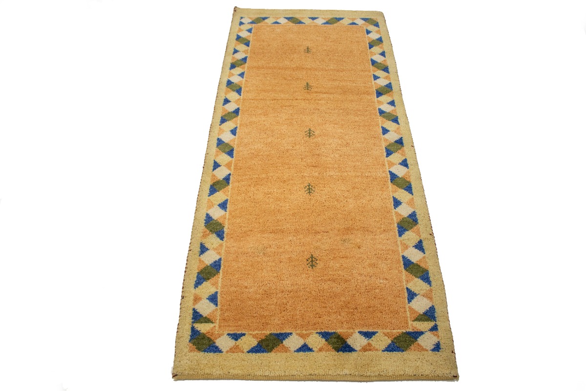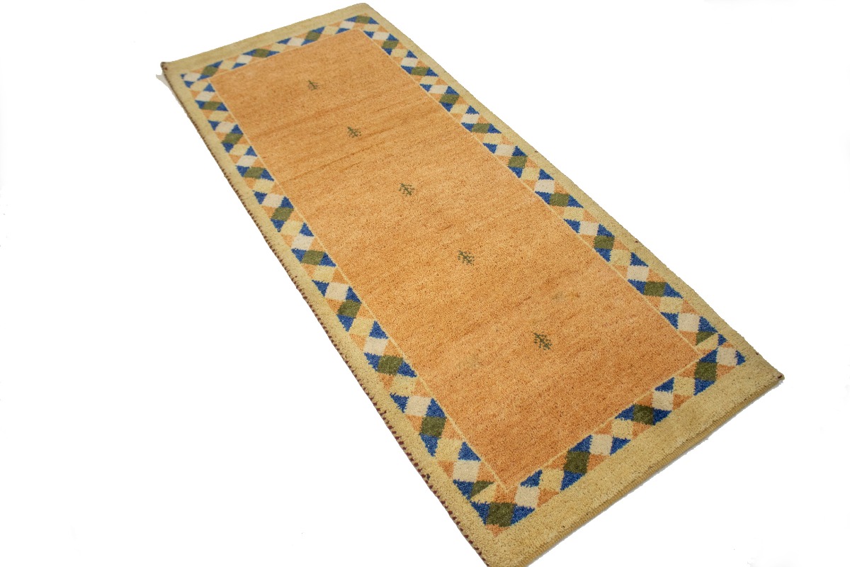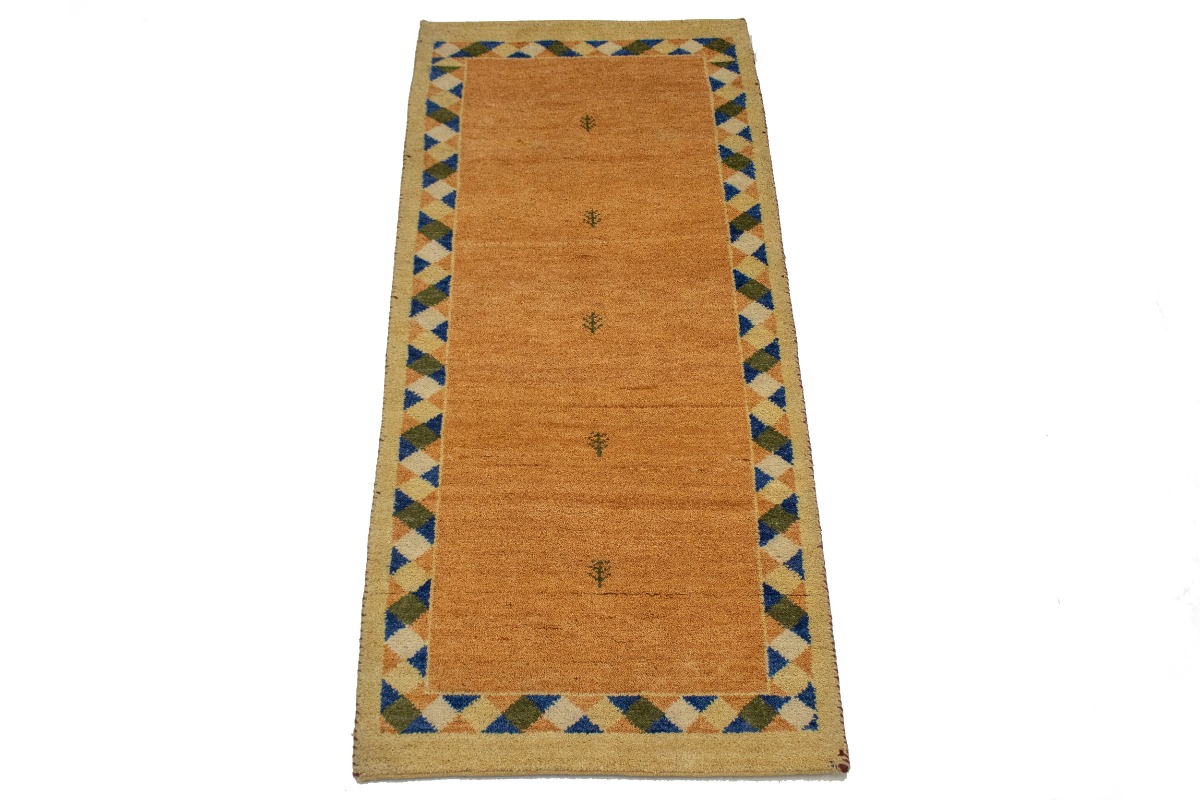 Rusty Peach Bordered Tribal 2'9X6'4 Indo-Gabbeh Oriental Rug