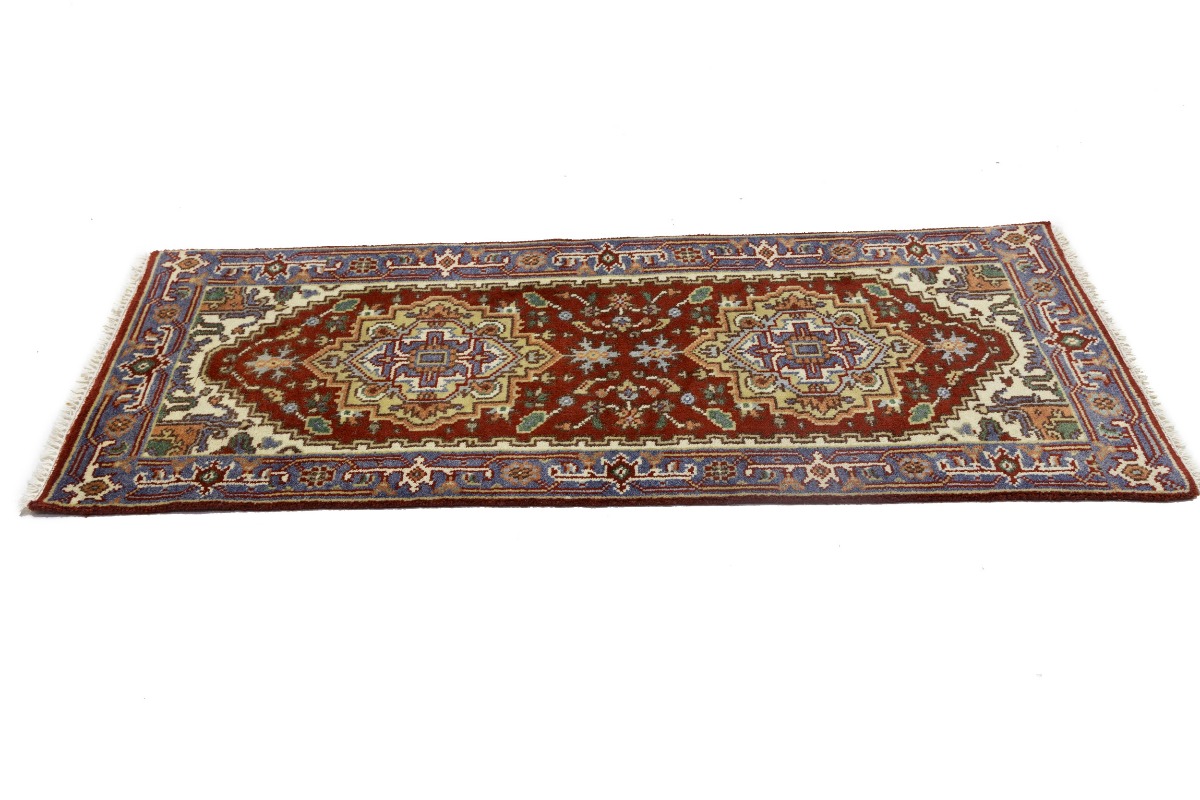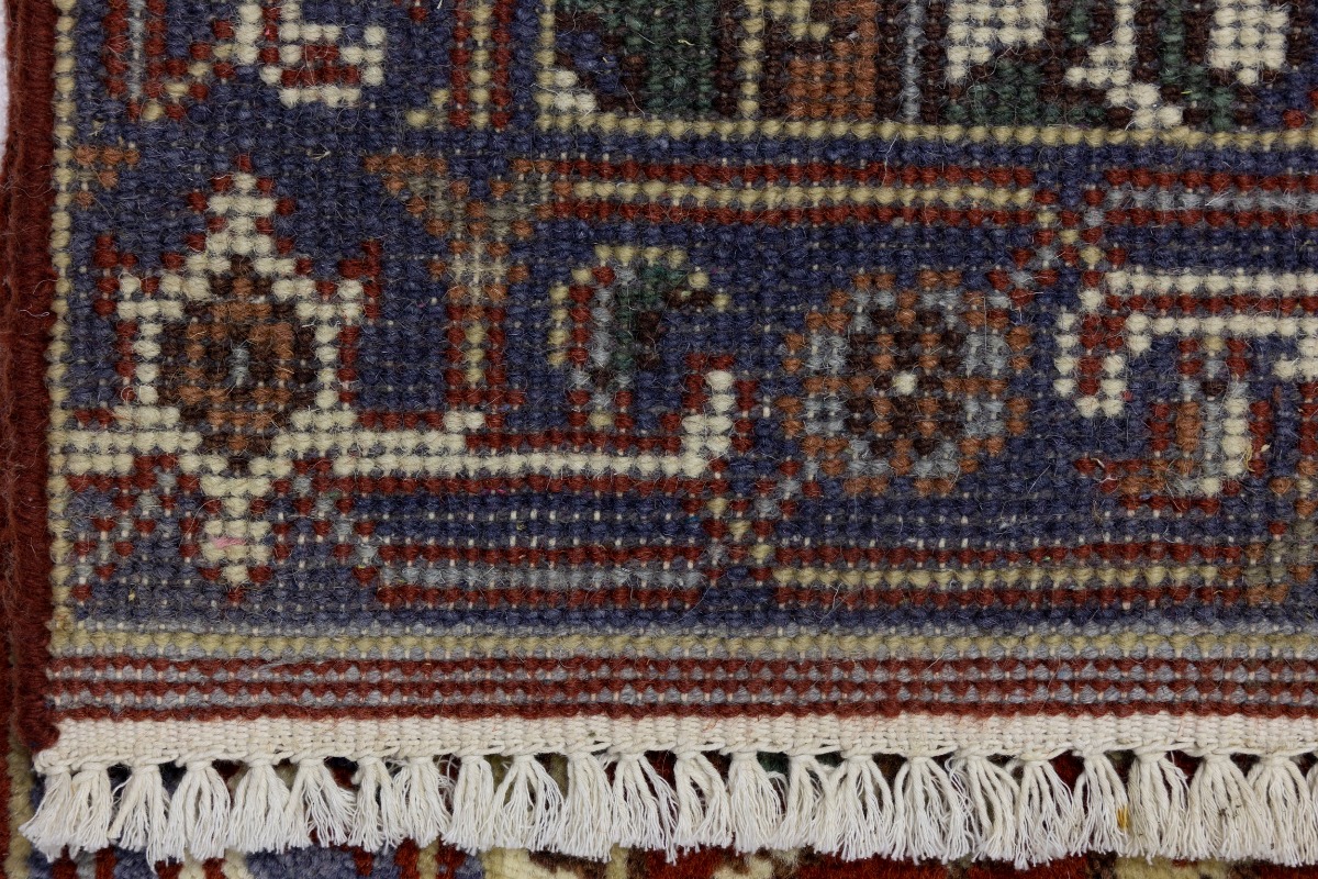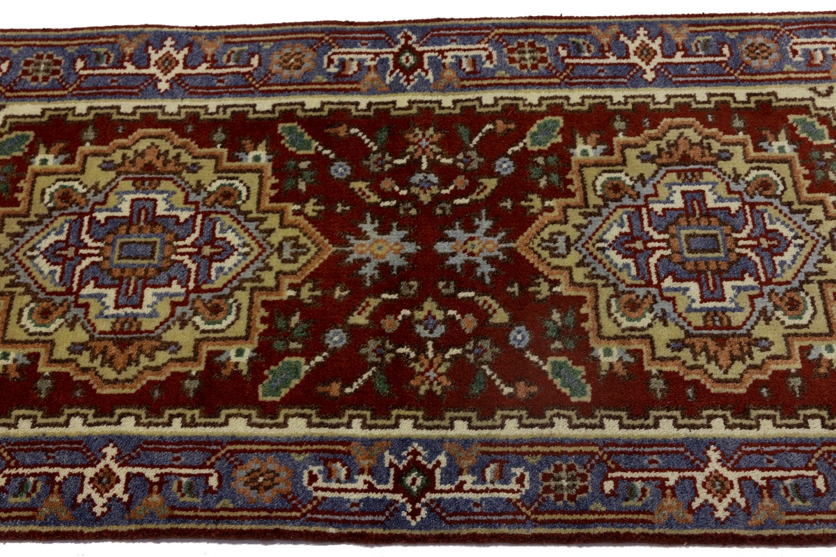 Handmade 2'5X6'0 red oriental rug made with vegetable dyes (fine wool pile and cotton foundation), exceptional knot count, and appealing ancient designs. This Oriental rug never will go out of style and would be among your most valuable treasures.