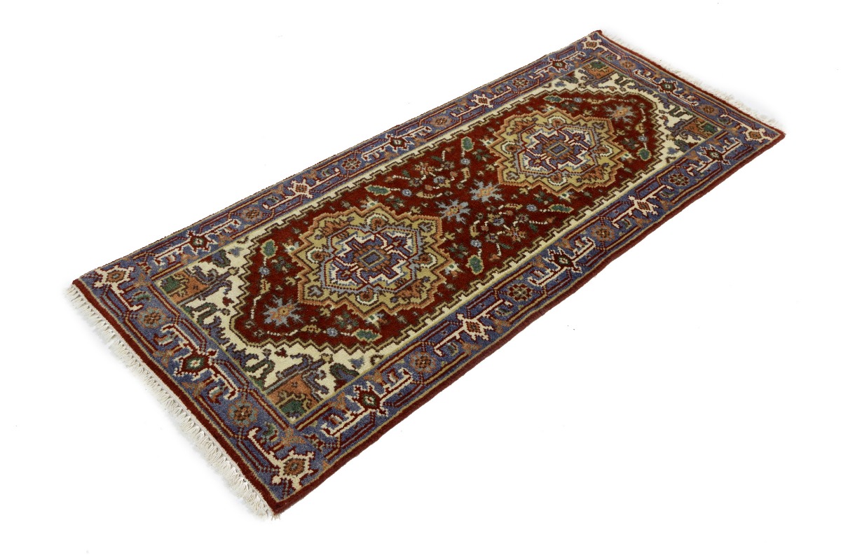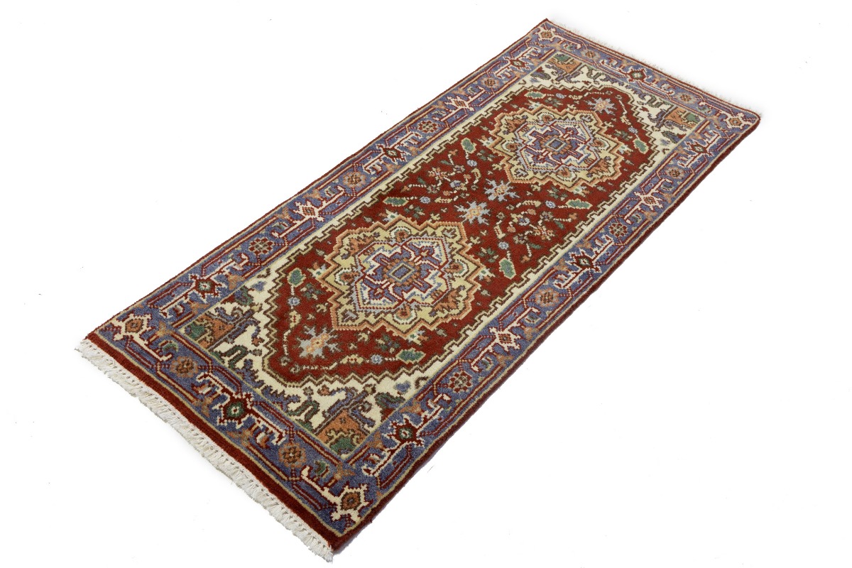 This genuine 2'5X6'0 red new Oriental rug was made by the hands of gifted weavers inspired by a variety of spectacular artistic designs, to recreate the aged look of the original piece with a richness of color and ornately patterned background field. What set this vintage style Oriental area rug from the others are the material and dye used (wool pile and cotton foundation), knot count, ancient designs, fantastic grades, and its regional historical connection: it has deep roots, from the story of the people who produced it to the meaning of the symbols and colors displayed across its canvas that have been praised for centuries. This Indian home décor carpet will be completely cozy and inviting that never will go out of style! Also, this Oriental rug would be among your most valuable treasures, it is a great investment that accrues value over time, and it will last for generations because was woven with high-quality, all-natural wool. Environmentally friendly, opulent yet affordable; this rug will give you a thorough amount of character to help define your living space with elegance and warmth that will capture the eyes and attention of your audience (homeowners, designers, decorators, family and friends). OT-7646