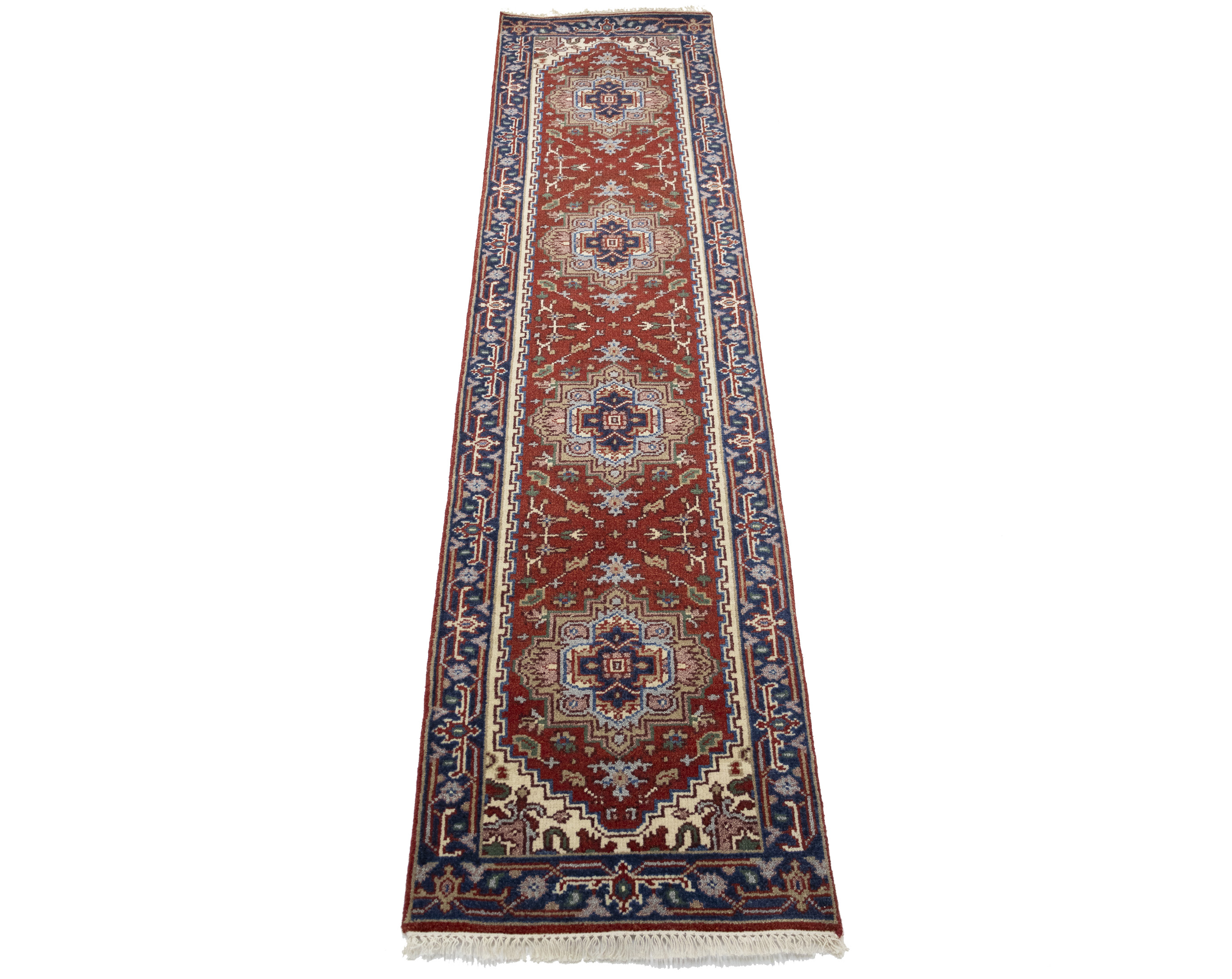 Rusty Red Floral 3X10 Heriz Serapi Oriental Runner Rug