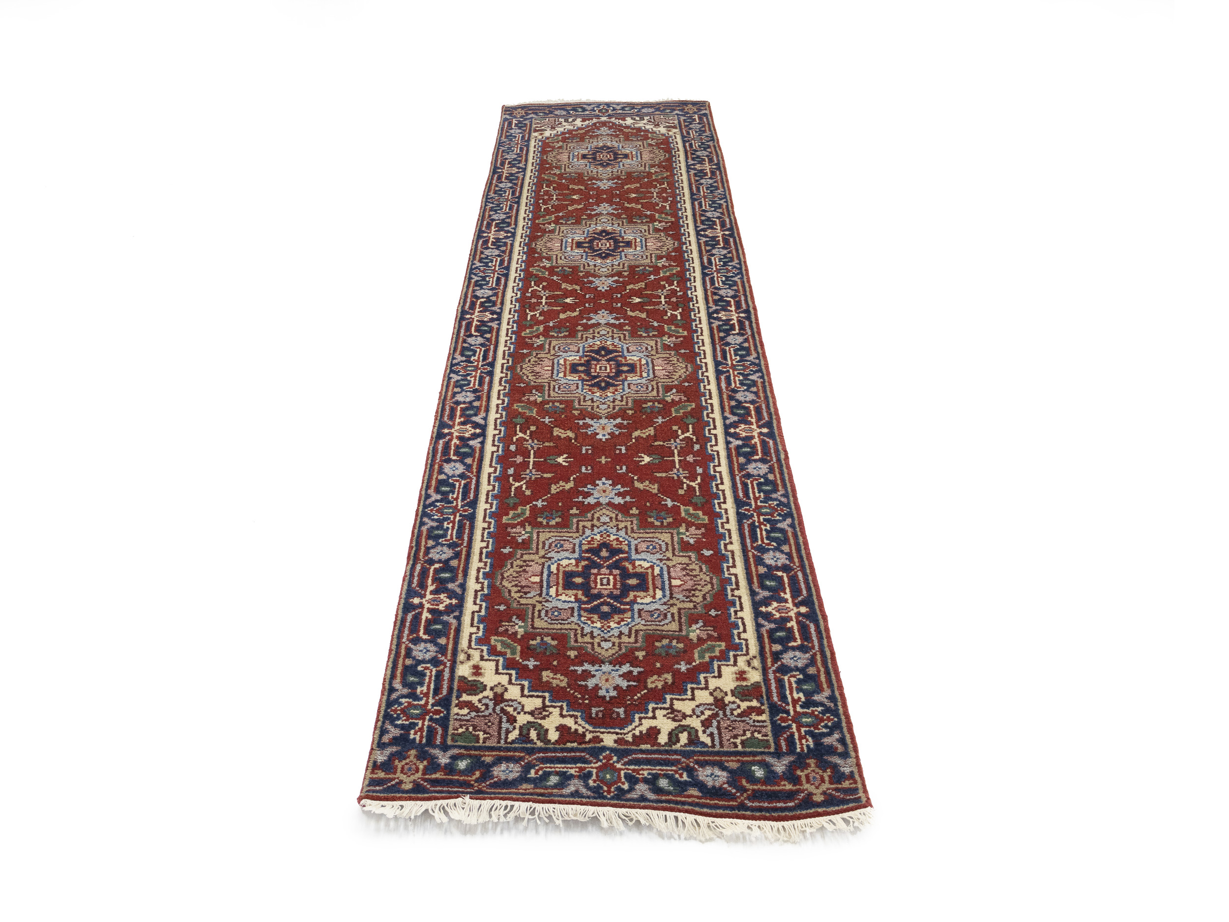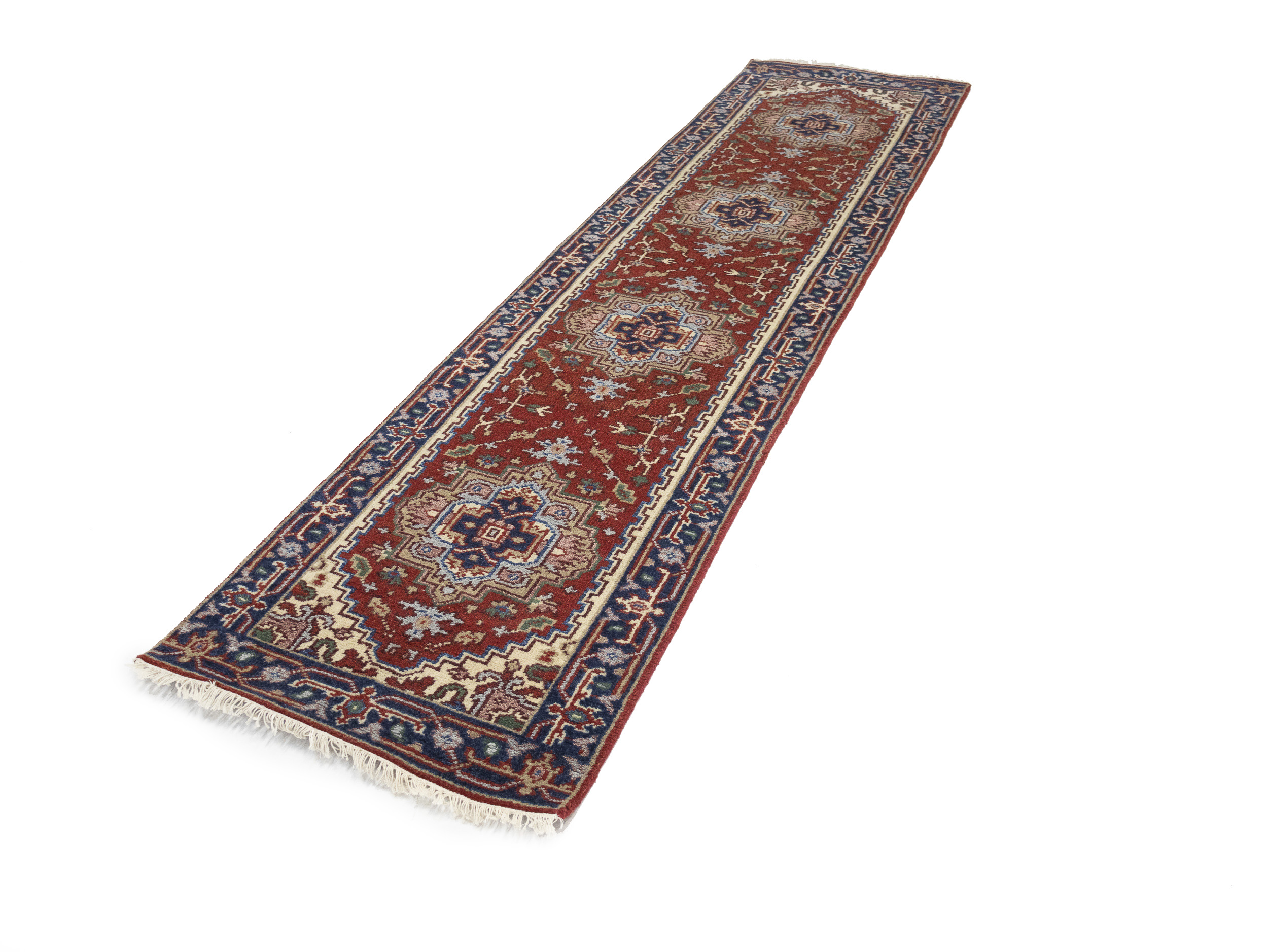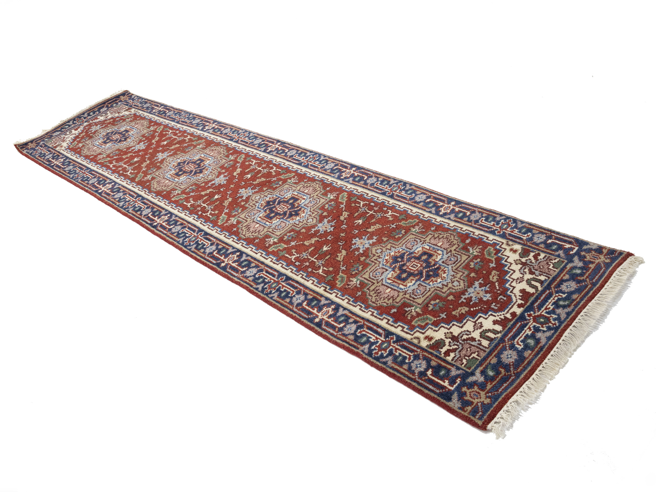 Handmade 3X10 red oriental runner made with vegetable dyes (fine wool pile and cotton foundation), exceptional knot count, and appealing ancient designs. This Oriental runner never will go out of style and would be among your most valuable treasures.