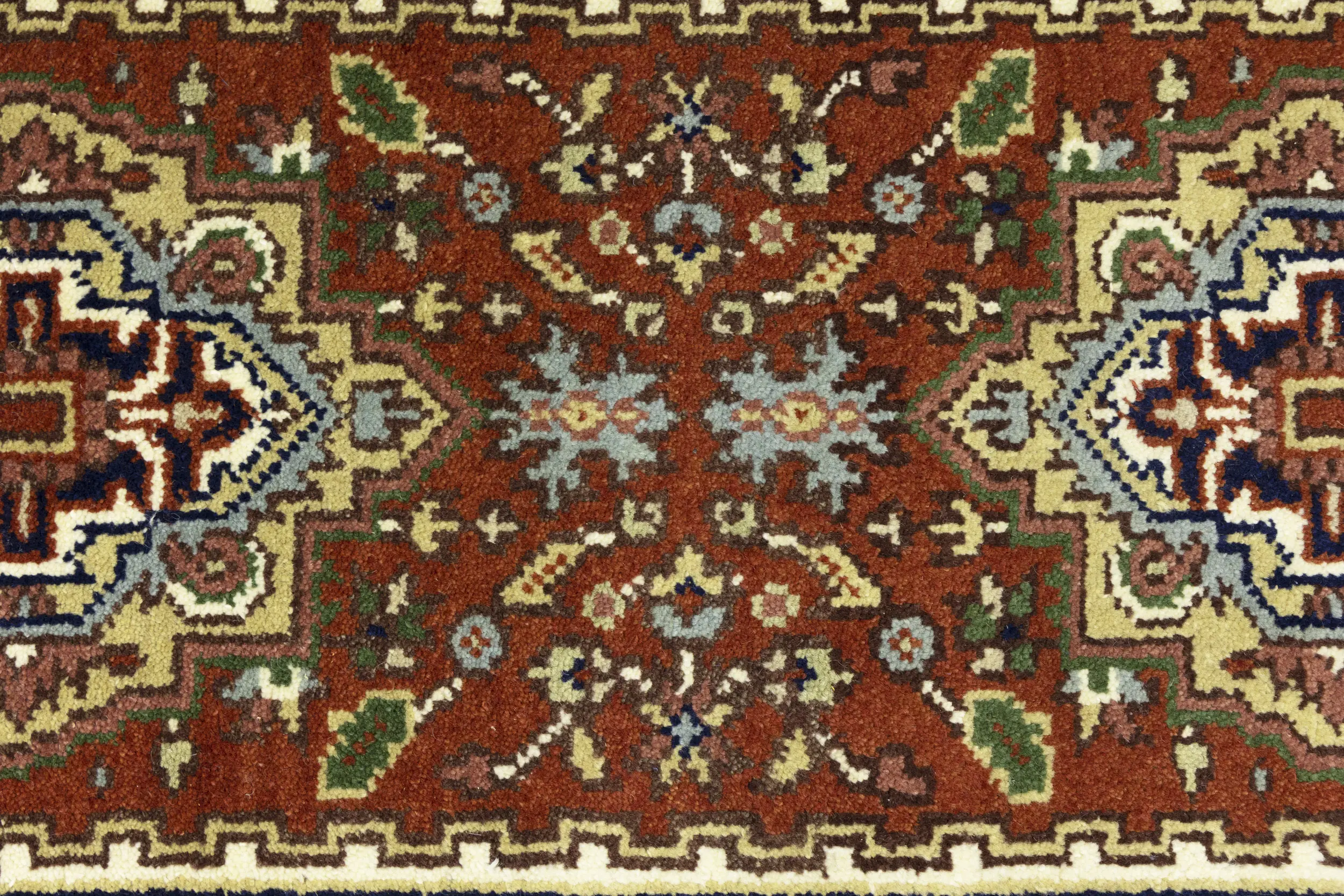 This original 3X12 red new Oriental runner was finely knotted by the hands of weavers influenced by a variety of amazing artistic designs, to recreate the aged look of the exceptional piece with a richness of color and embellished background field. What set this vintage style Oriental area runner from the others are the material and dye used (wool pile and cotton foundation), knot count, antique designs, fantastic grades, and its regional historical connection: it has deep roots, from the story of the people who produced it to the meaning of the symbols and colors displayed across its canvas that have been praised for centuries. This Indian home décor carpet will be completely cozy and inviting that never will go out of style!