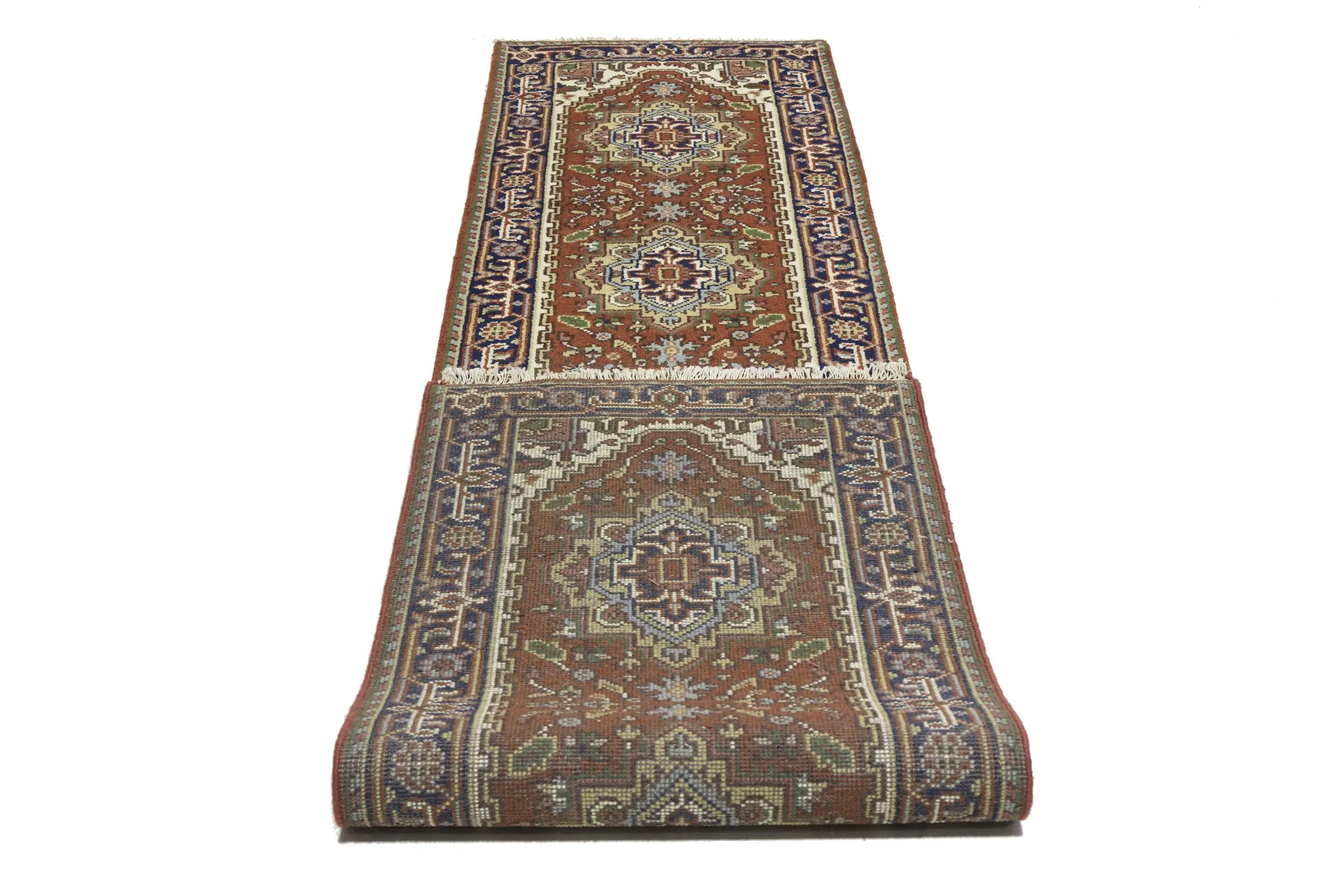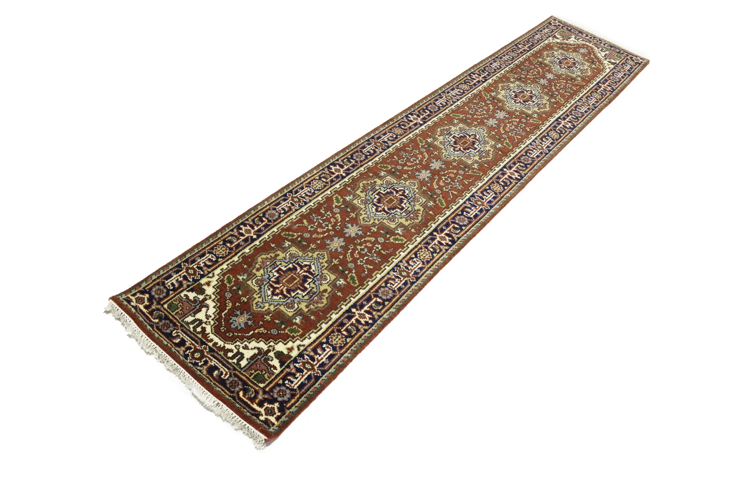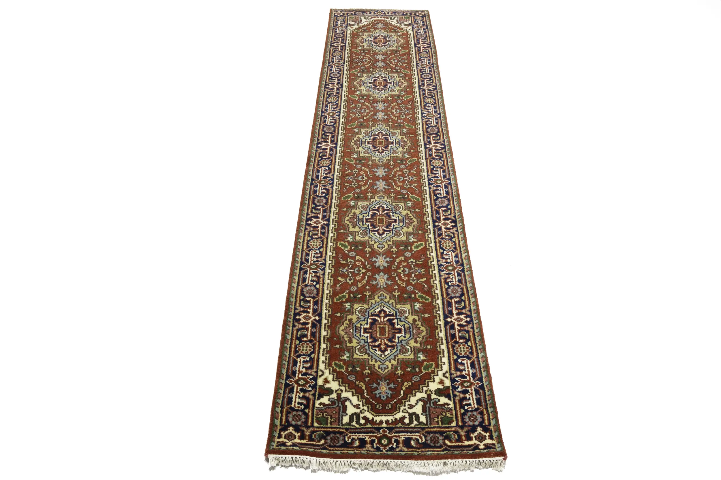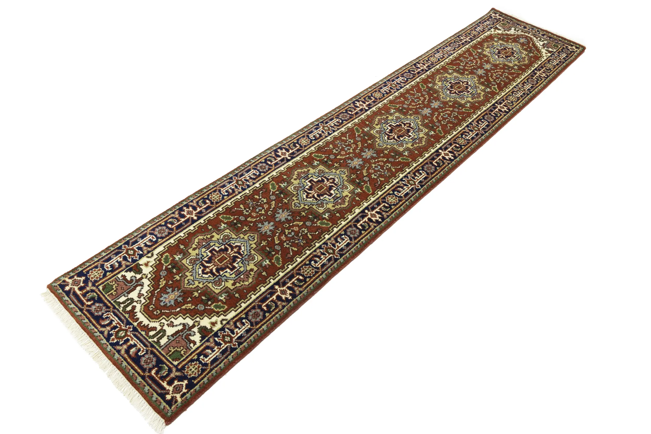 Rusty Red Floral 3X12 Heriz Serapi Oriental Runner Rug