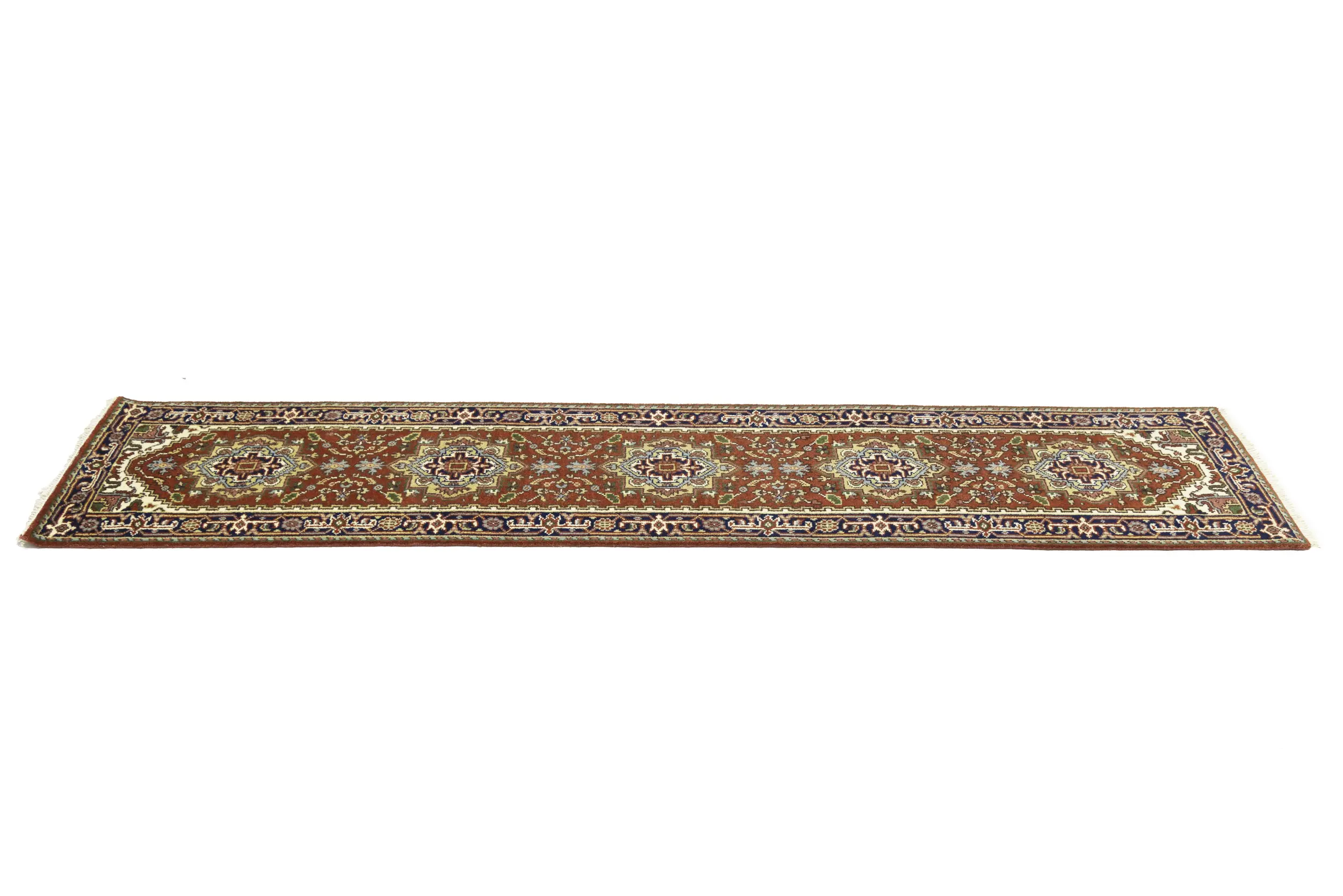 Handmade 3X12 red Oriental runner made with vegetable dyes (fine wool pile and cotton foundation), superior knot count, and appealing ancient designs. This Oriental runner never will go out of style and would be among your most valuable treasures.