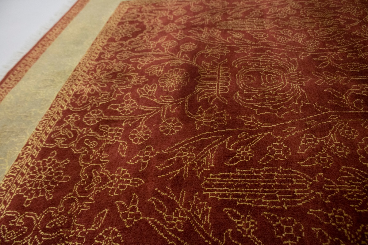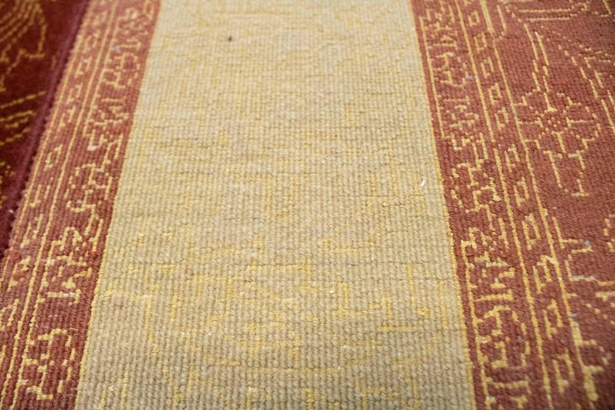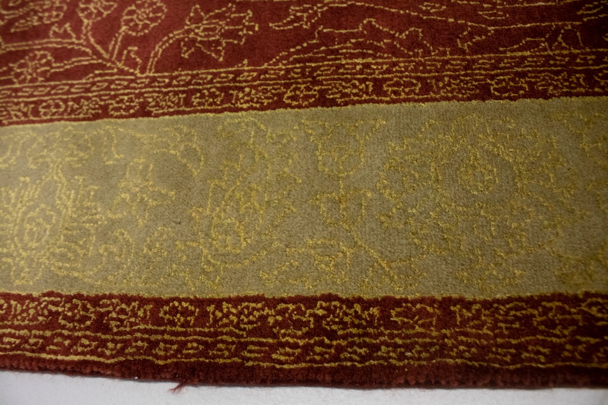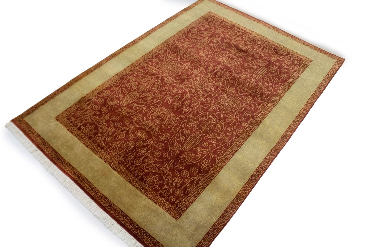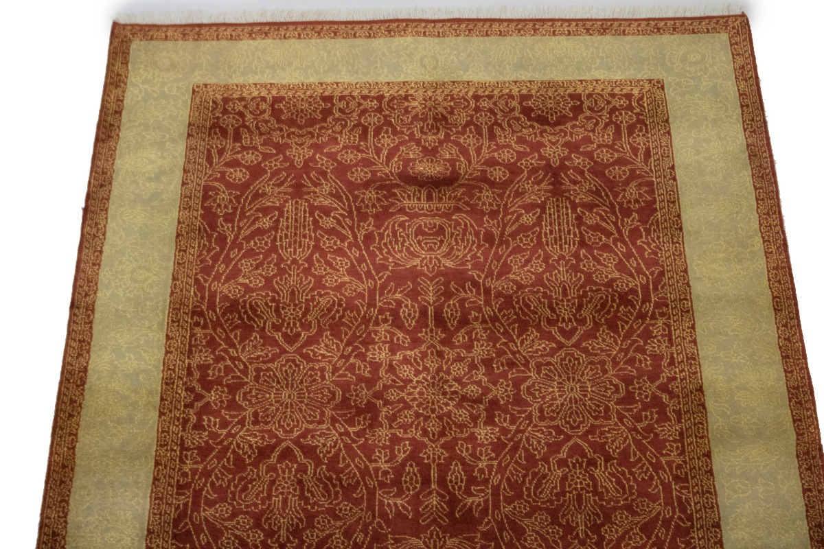 Hand-Knotted Indian rug made with natural dyes and appealing ancient designs. This Oriental rug never will go out of style and would be among your most valuable treasures.