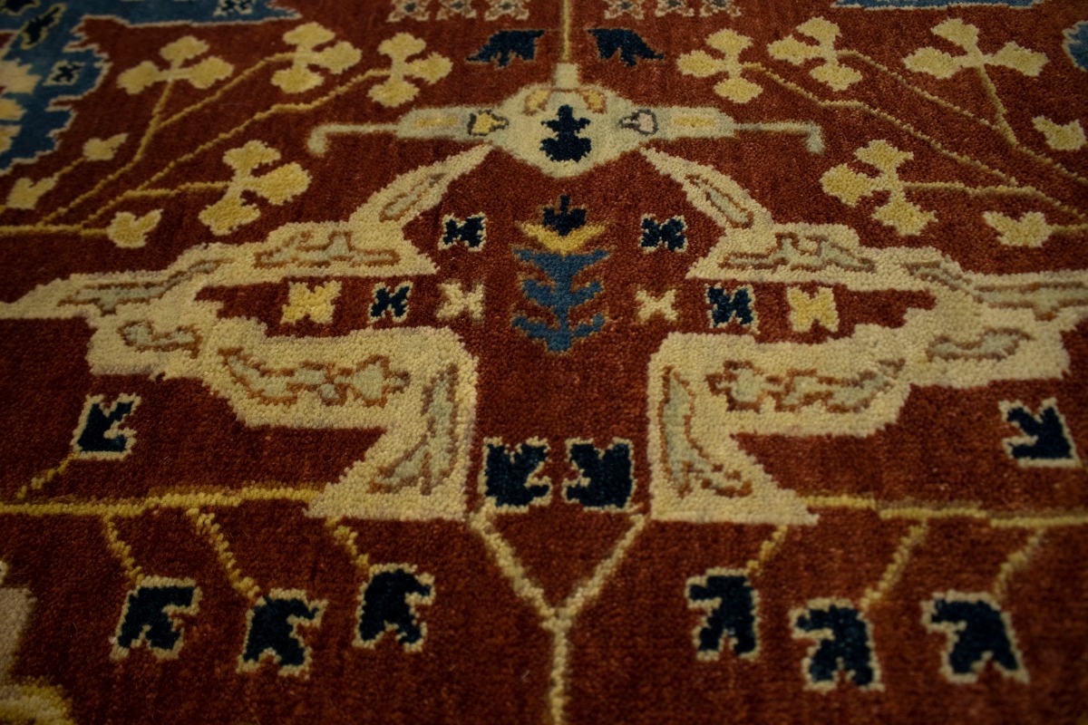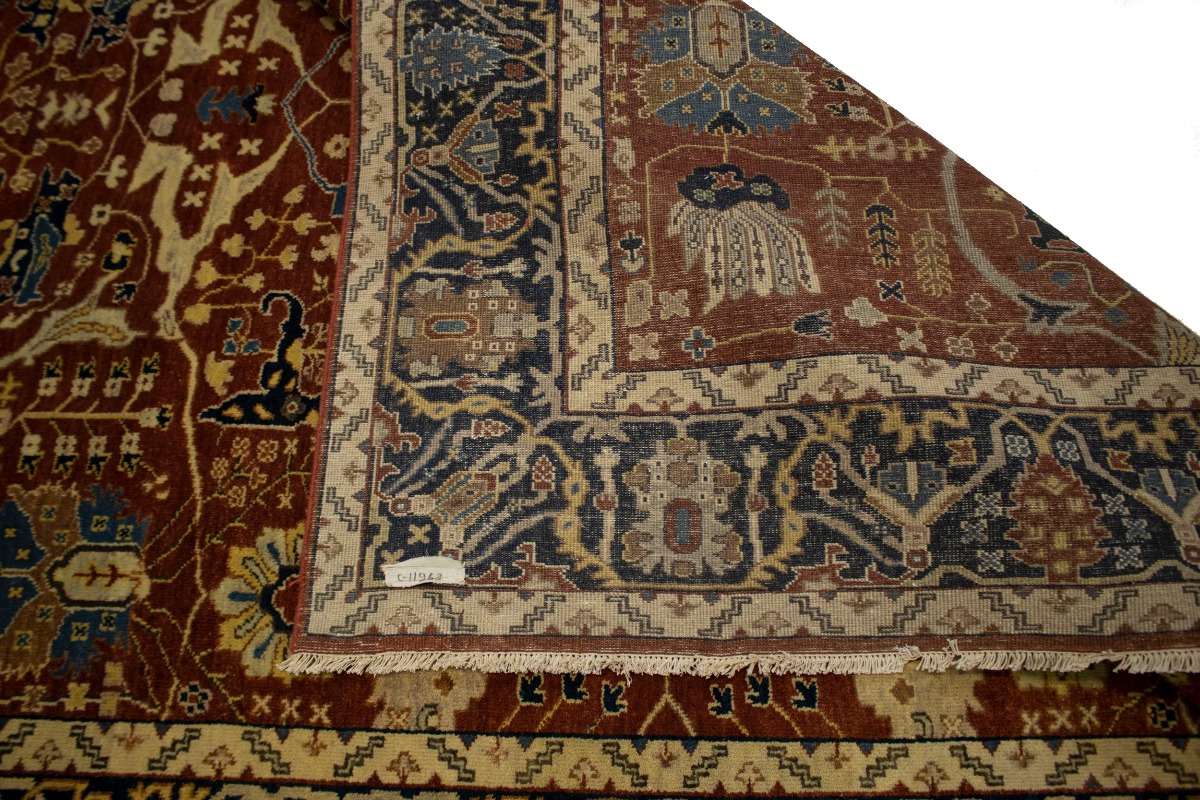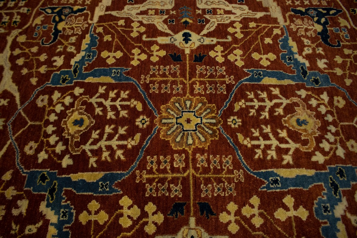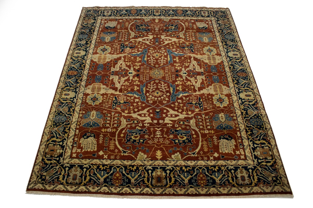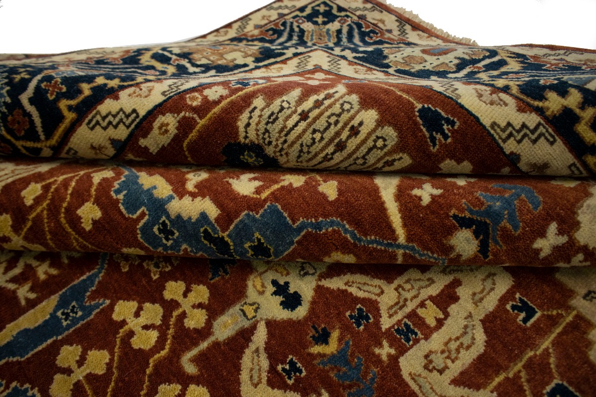 This genuine 8X10 rusty red new Oriental rug was masterly knotted by the hands of weavers inspired by a variety of wonderful artistic designs, to recreate the aged look of the original piece with a richness of color and intricate patterned background field. What set this vintage style Oriental area rug from the others are the material and dye used (wool pile and cotton foundation), knot count, antique designs, fantastic grades, and its regional historical connection: it has deep roots, from the story of the people who produced it to the meaning of the symbols and colors displayed across its canvas that have been praised for centuries. This Indian home décor carpet will be completely cozy and inviting that never will go out of style! Also, this Oriental rug would be among your most valuable treasures, it is a great investment that accrues value over time, and it will last for generations because was woven with high-quality, all-natural wool. Environmentally friendly, opulent yet affordable; this rug/runner will give you a thorough amount of character to help define your living space with luxury and warmth that will capture the eyes and attention of your audience (homeowners, designers, decorators, family and friends). OT-884