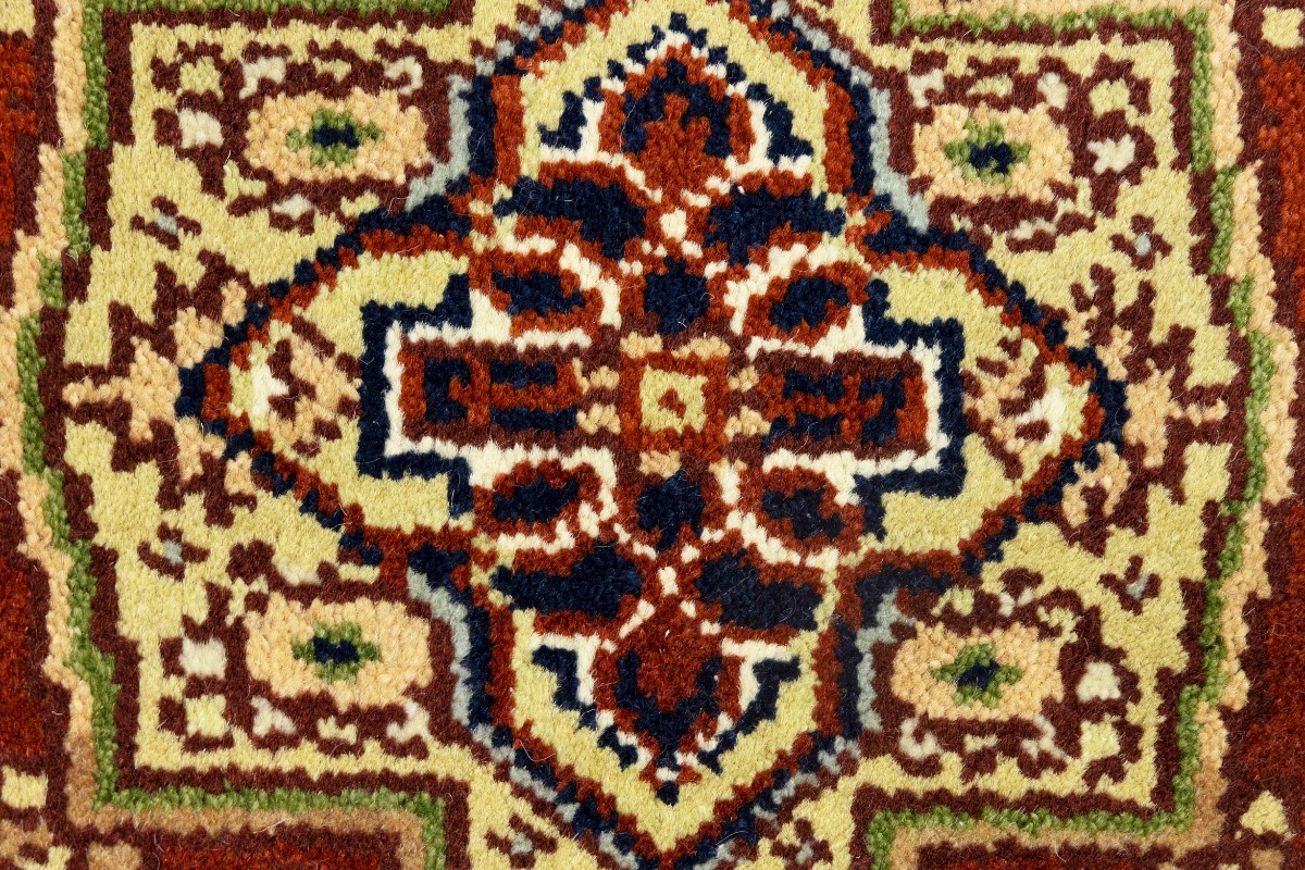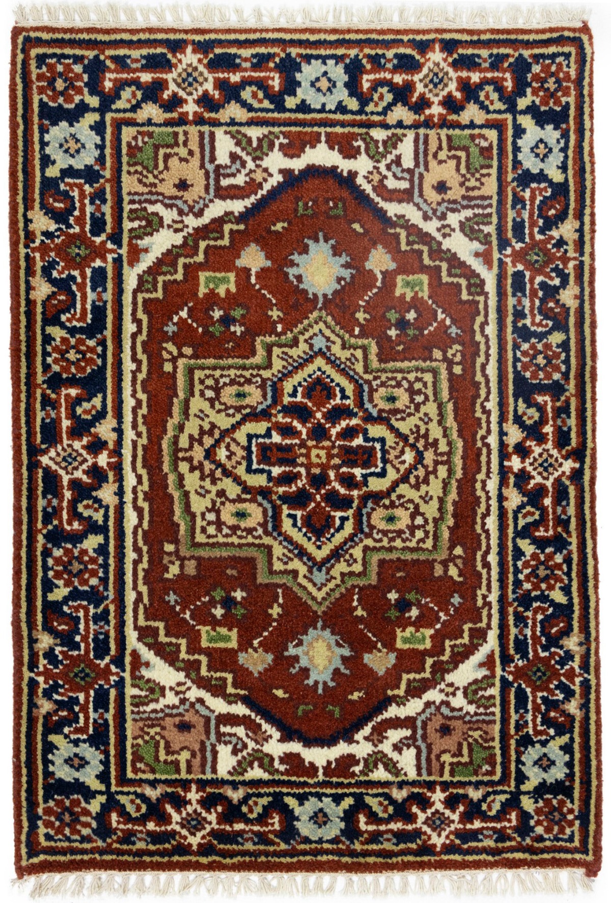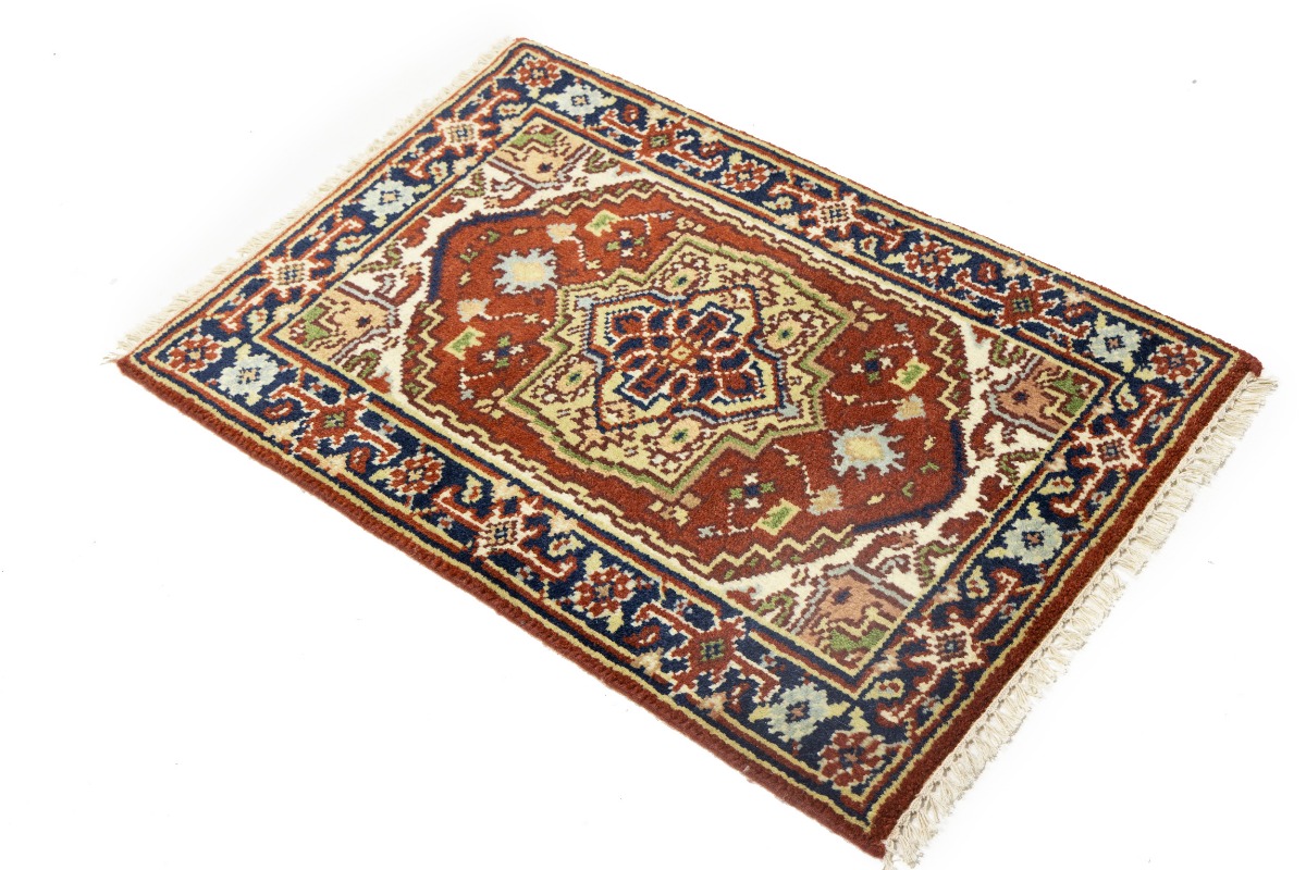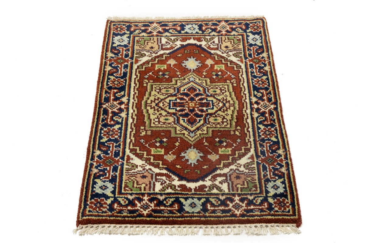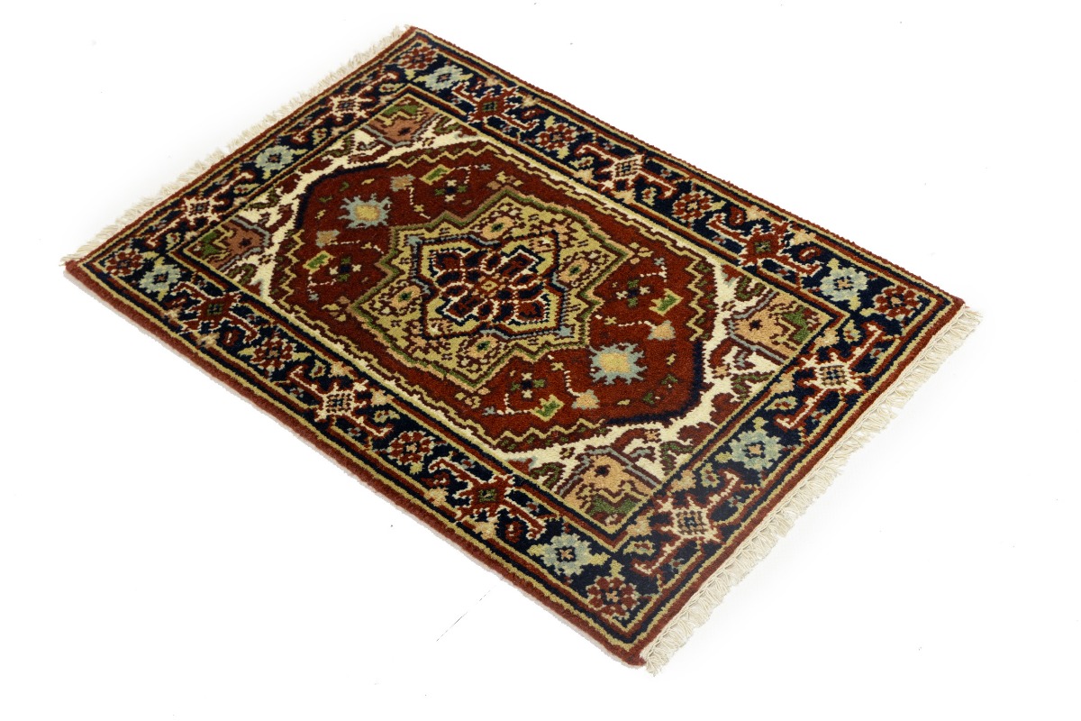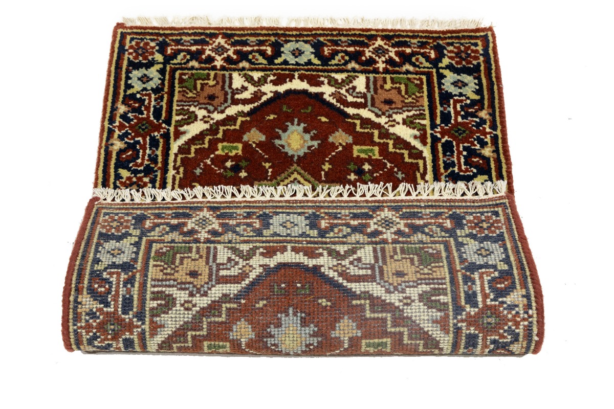 This authentic 2X3 red new Oriental rug was crafted by the hands of skilled weavers enthused by a variety of lovely artistic designs, to recreate the aged look of the unique piece with a richness of color and beautifully elaborated background field. What set this vintage style Oriental area rug from the others are the material and dye used (wool pile and cotton foundation), knot count, ancient designs, fantastic grades, and its regional historical connection: it has deep roots, from the story of the people who produced it to the meaning of the symbols and colors displayed across its canvas that have been praised for centuries. This Indian home décor carpet will be completely cozy and inviting that never will go out of style! Also, this Oriental rug would be among your most valuable treasures, it is a great investment that increase in value over time, and it will last for generations because was woven with high-quality, all-natural wool. Environmentally friendly, opulent yet affordable; this rug will give you a thorough amount of character to help define your living space with sophistication and warmth that will capture the eyes and attention of your audience (homeowners, designers, decorators, family and friends). OT-7740